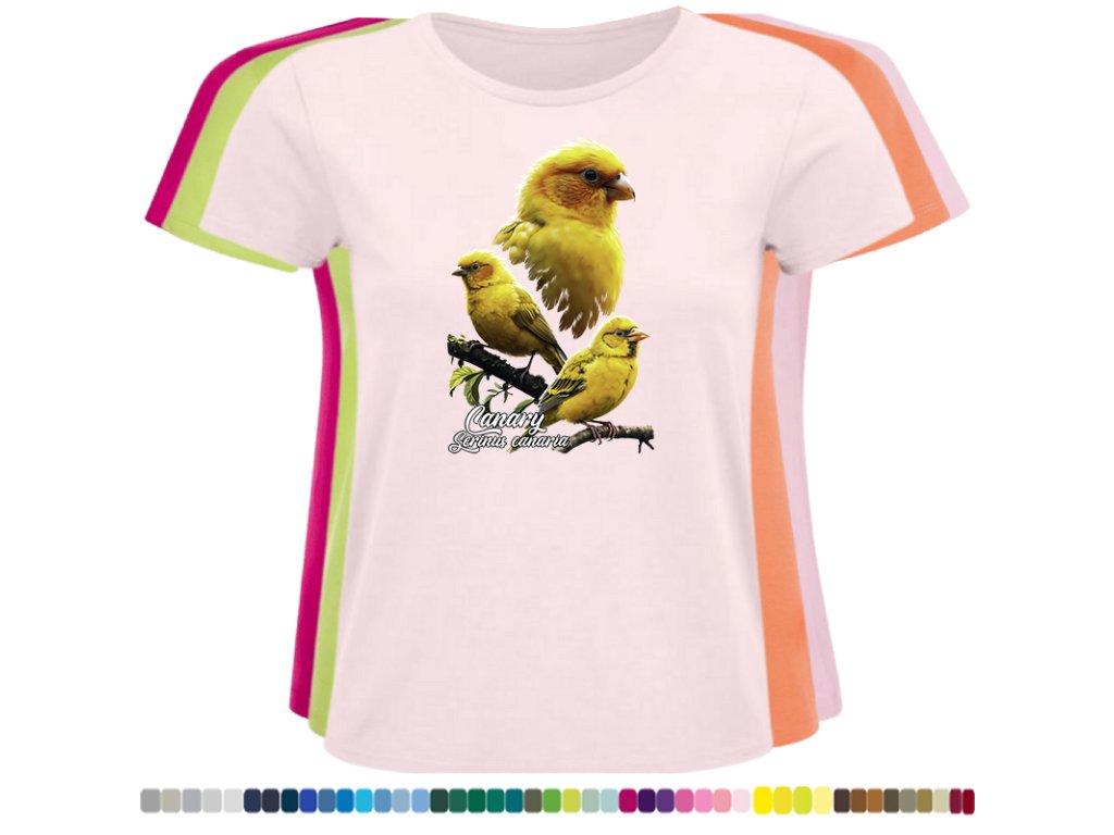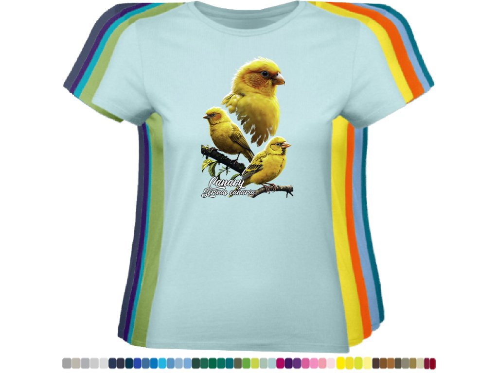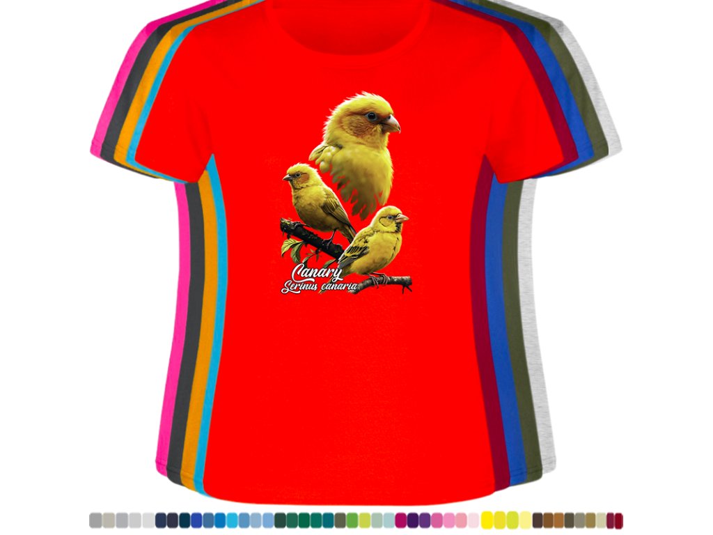 DÁMSKÉ LEVNÉ BAVLNĚNÉ TRIČKO S DIGITÁLNÍM POTISKEM PAPOUŠEK ANDULKA VLNKOVANÁ