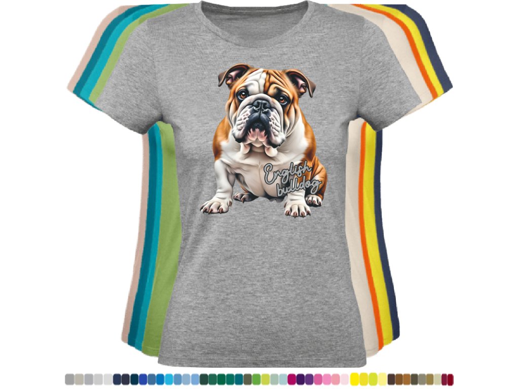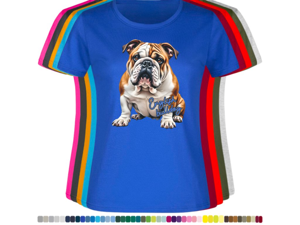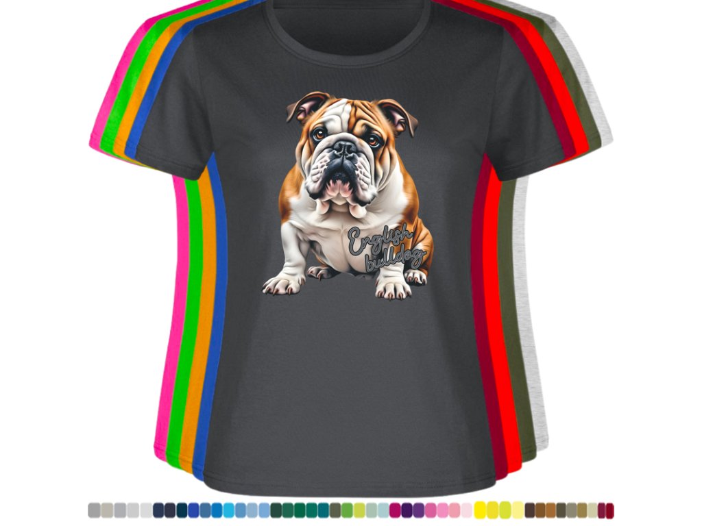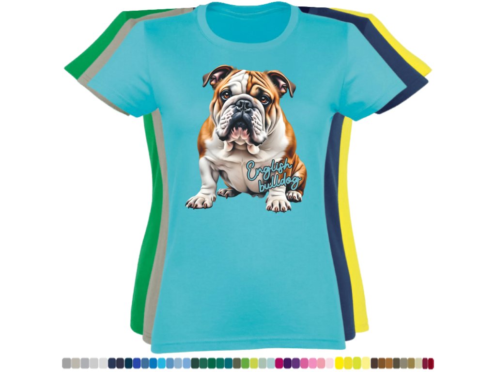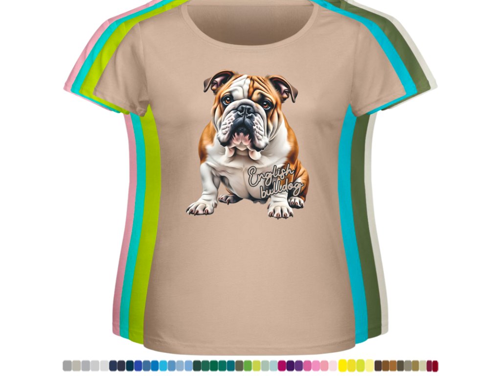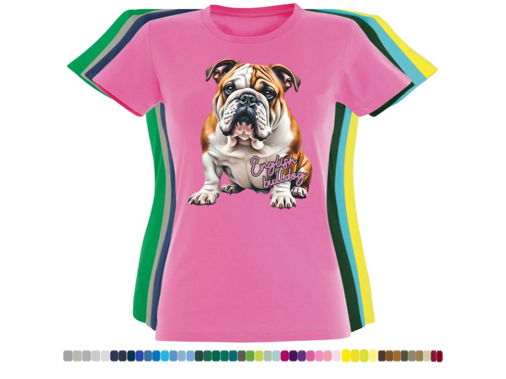Dámské levné bavlněné tričko s digitálním potiskem Anglický bulldog