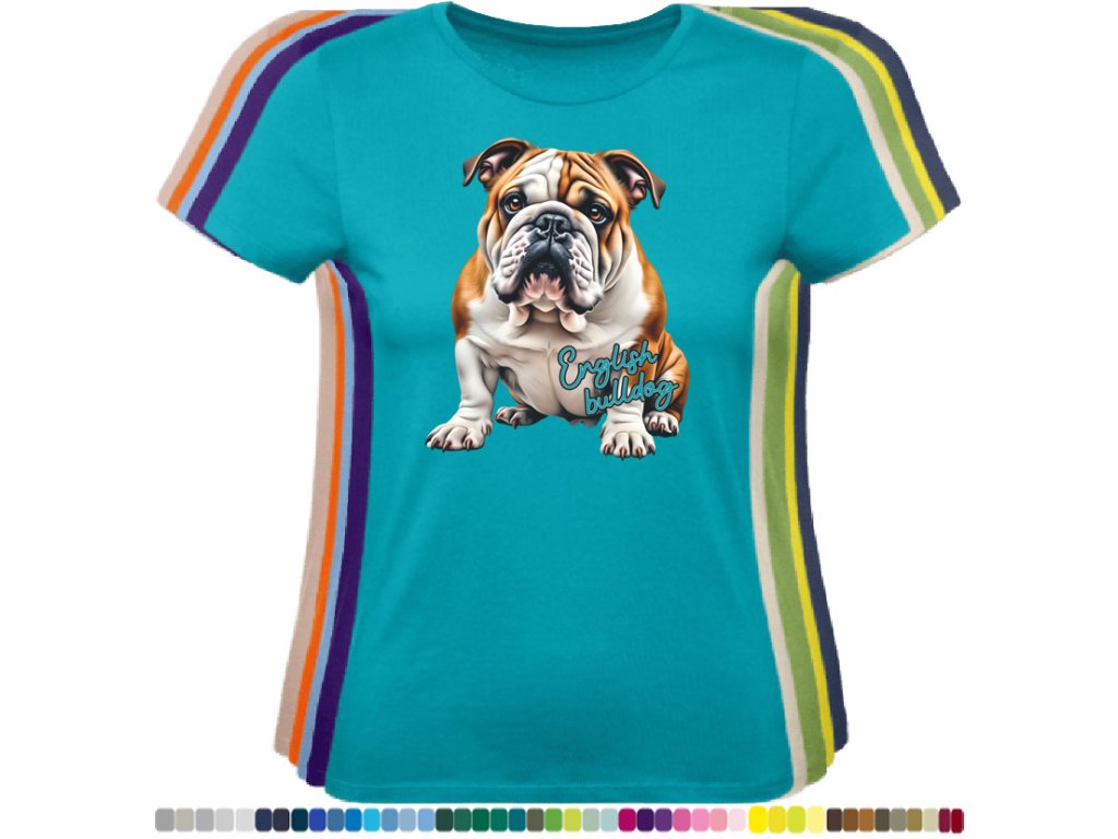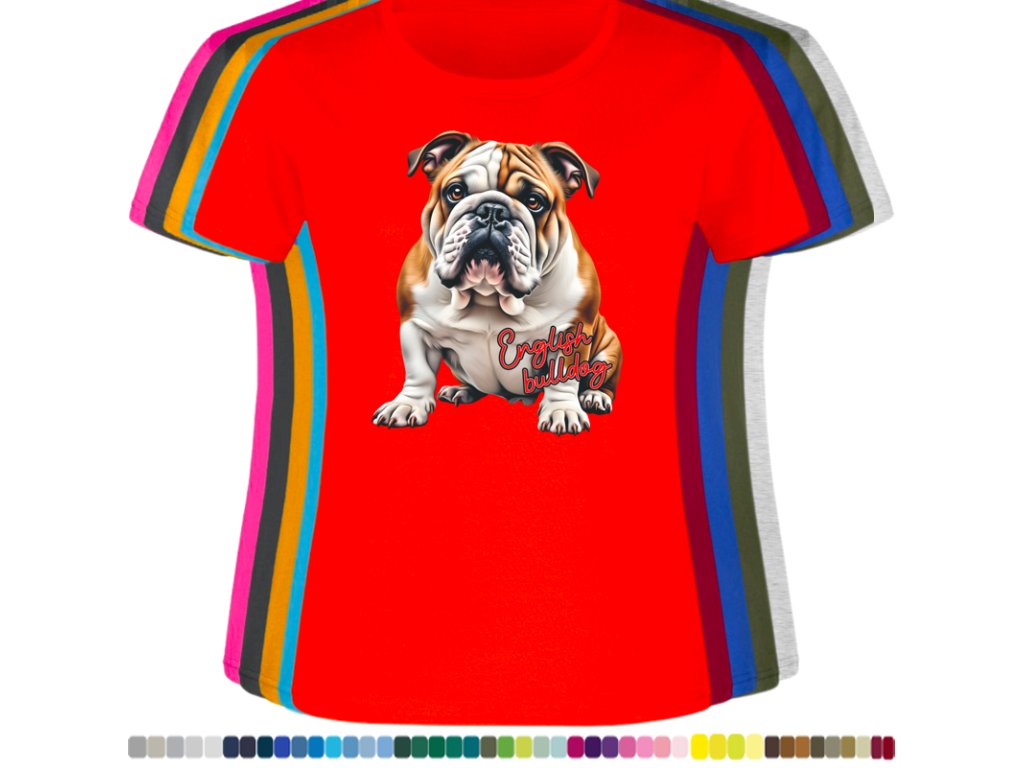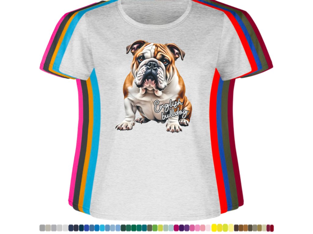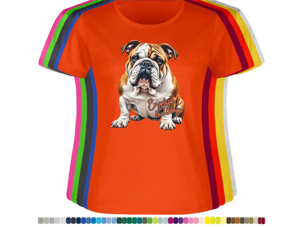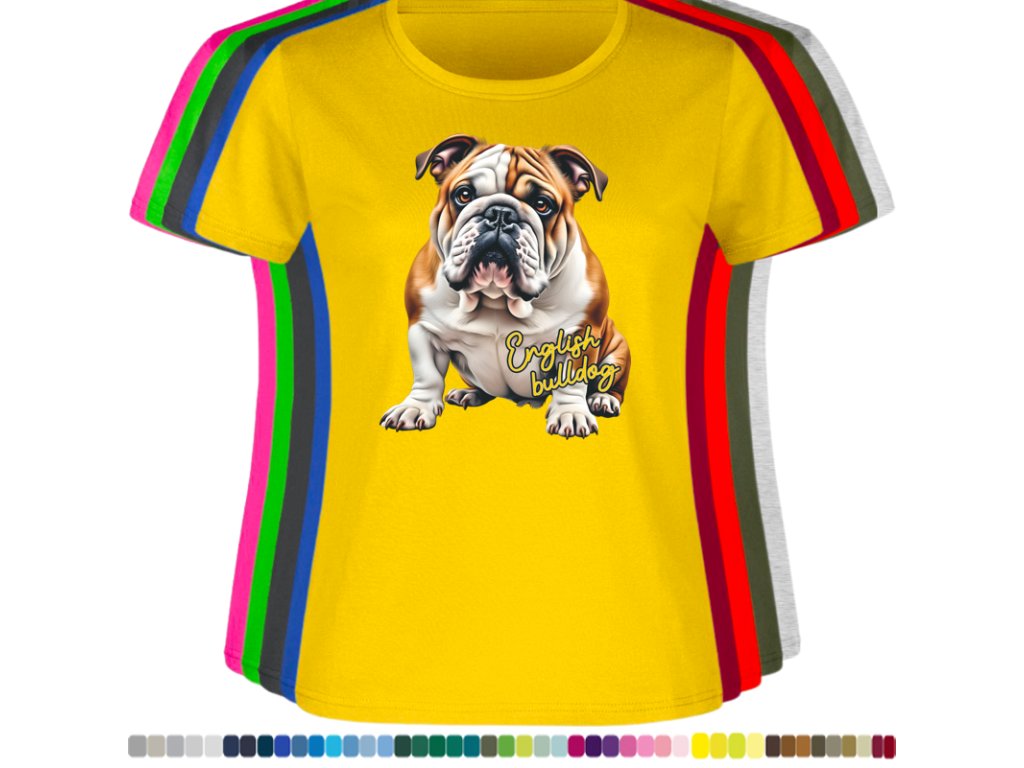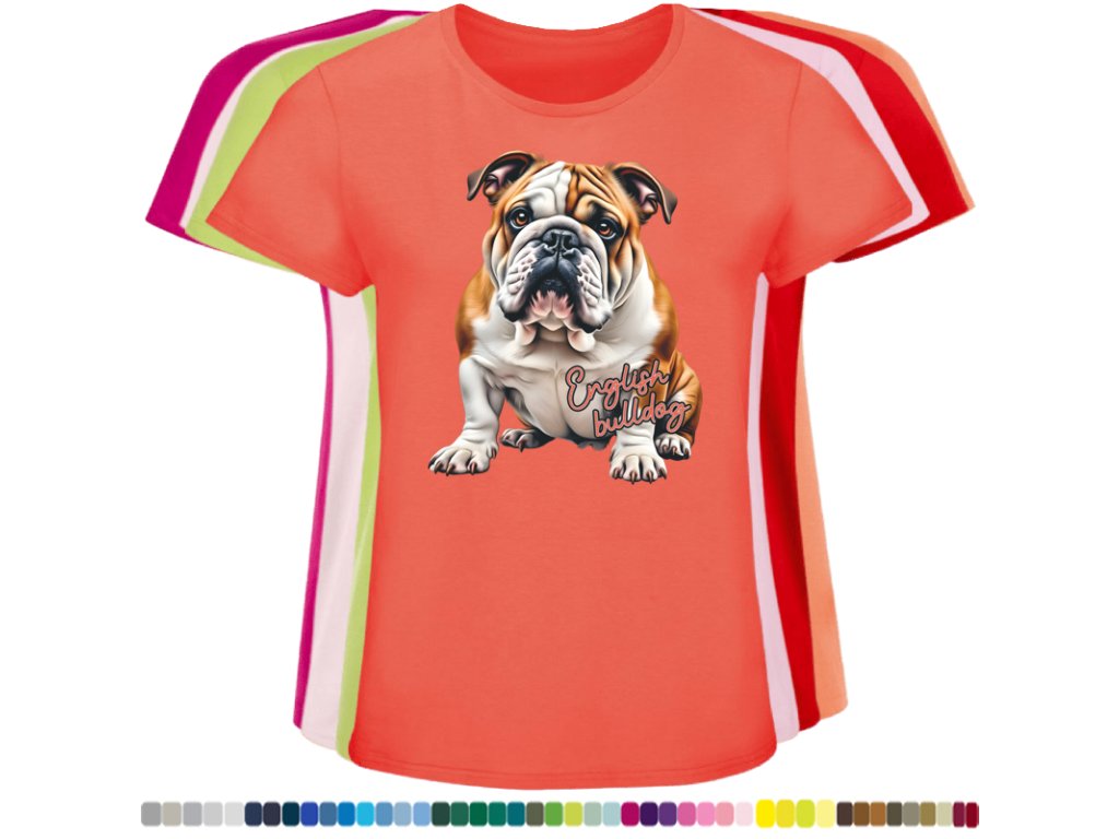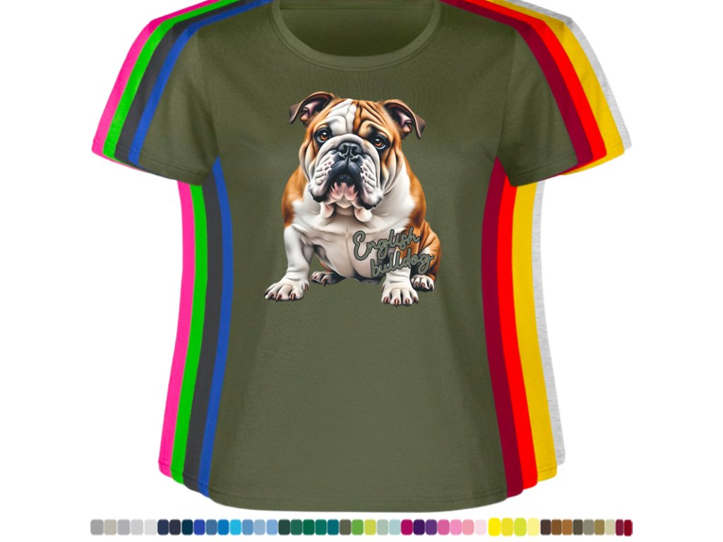 Dámské levné bavlněné tričko s digitálním potiskem Anglický bulldog