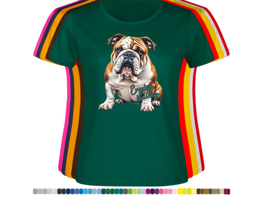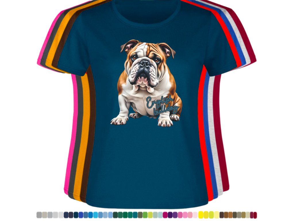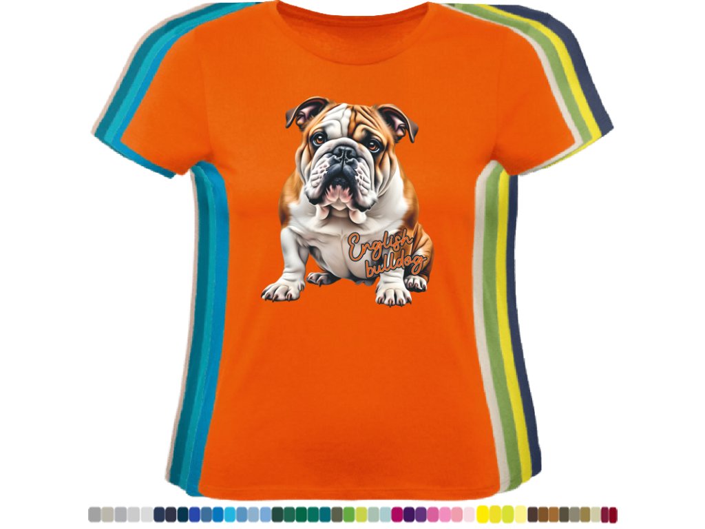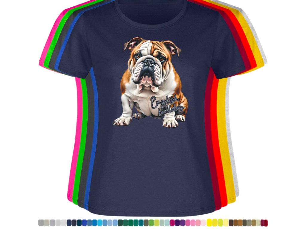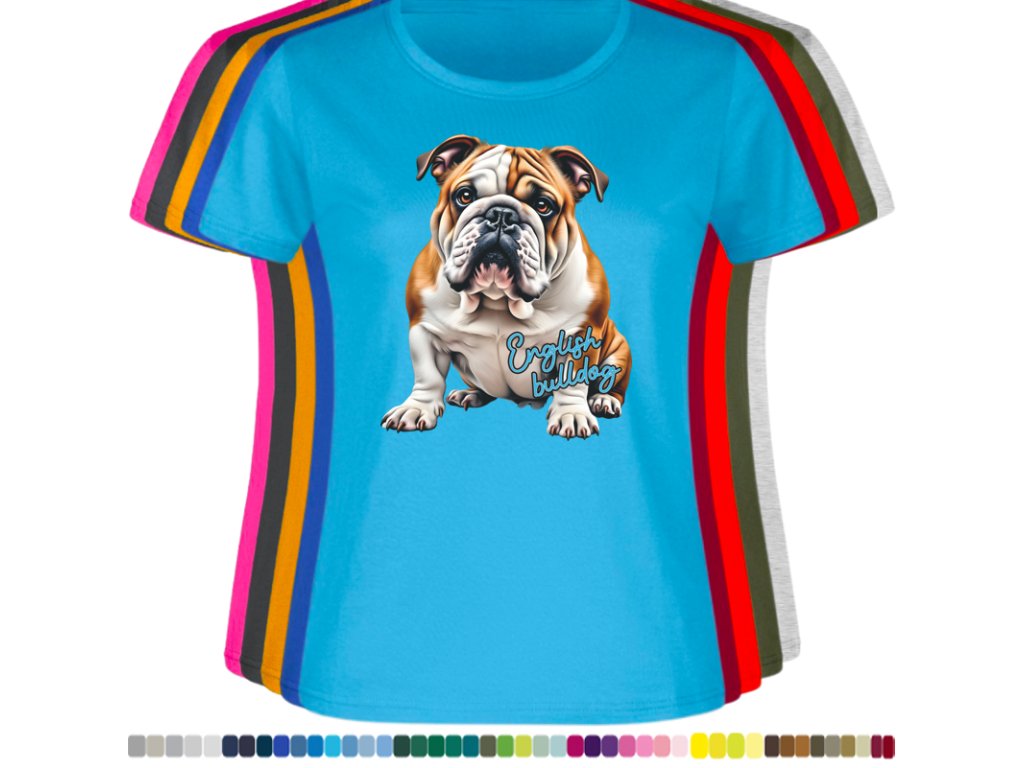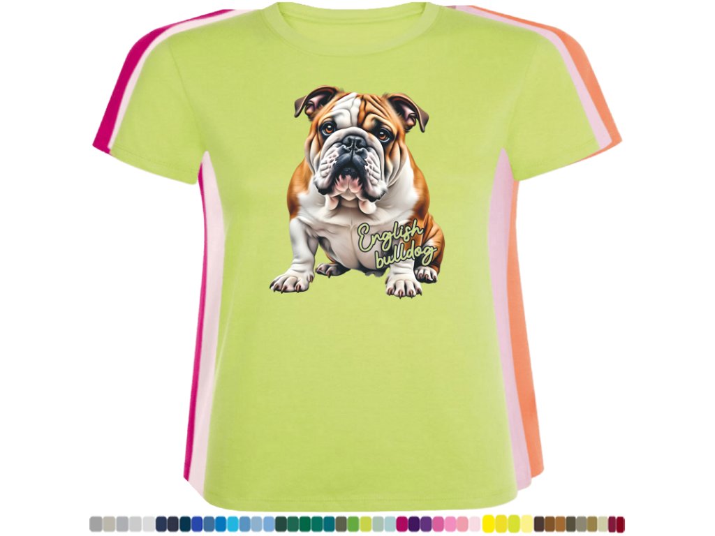 Dámské levné bavlněné tričko s digitálním potiskem Anglický bulldog