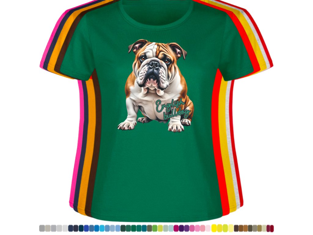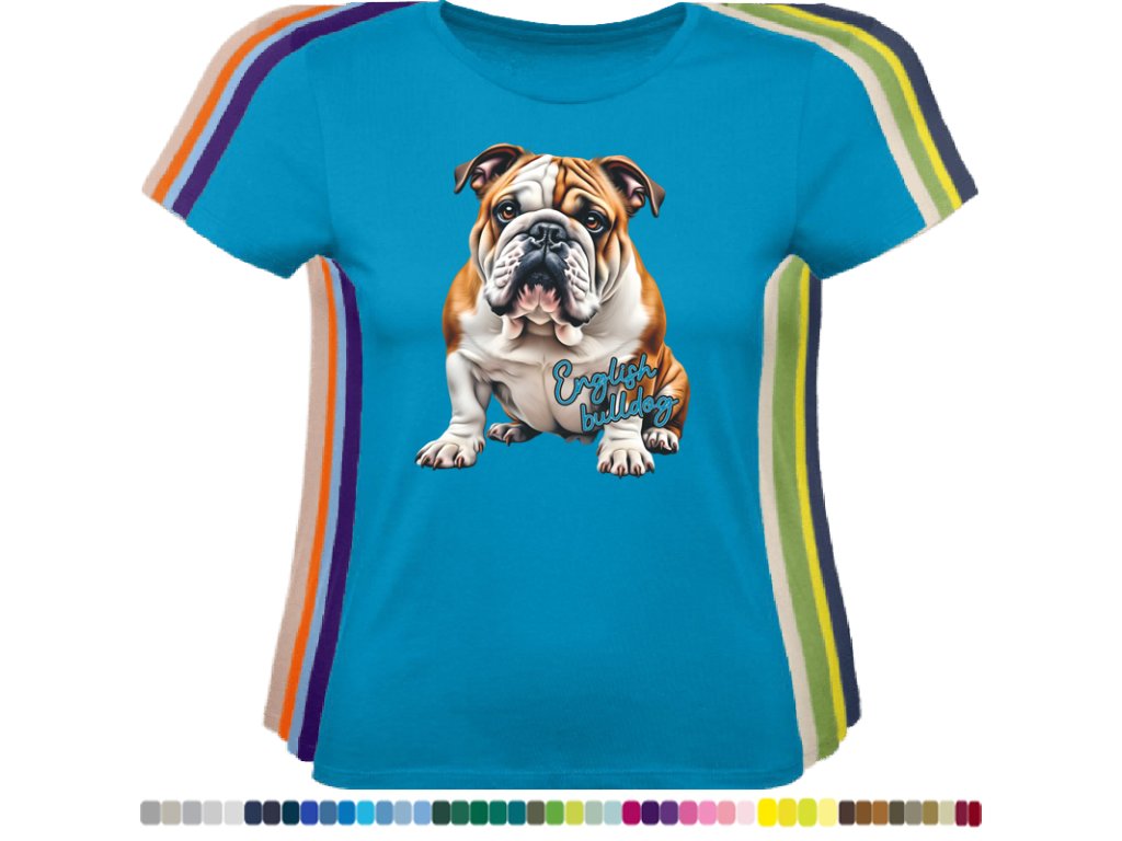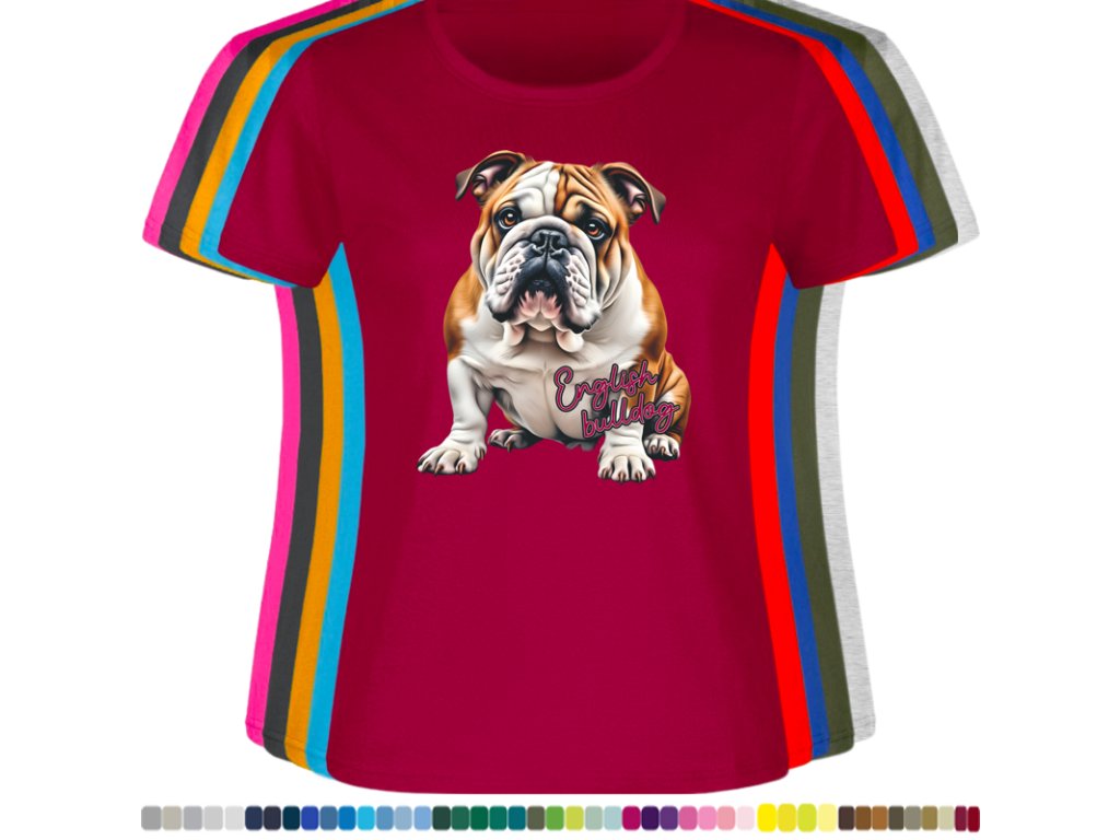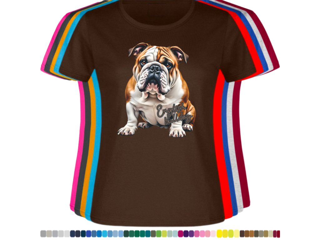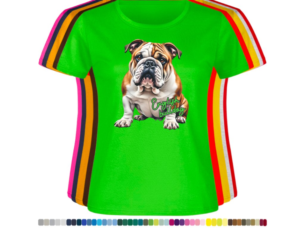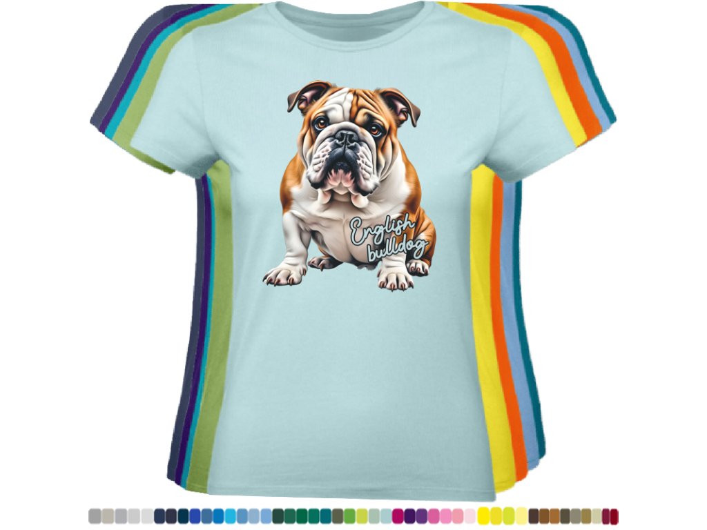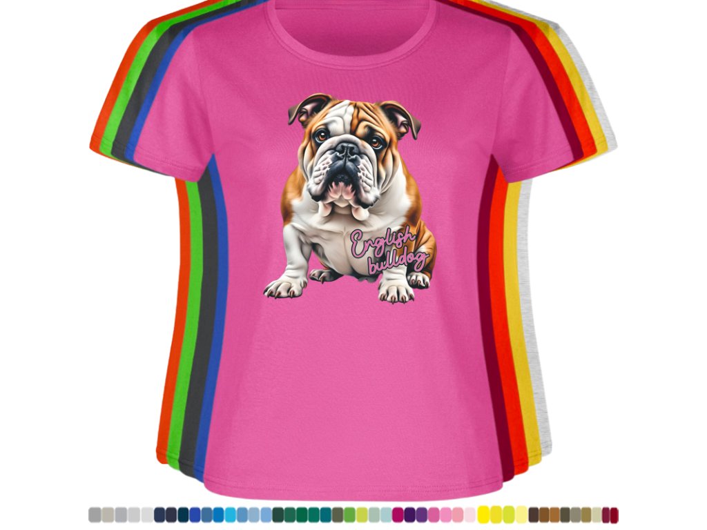 Dámské levné bavlněné tričko s digitálním potiskem Anglický bulldog