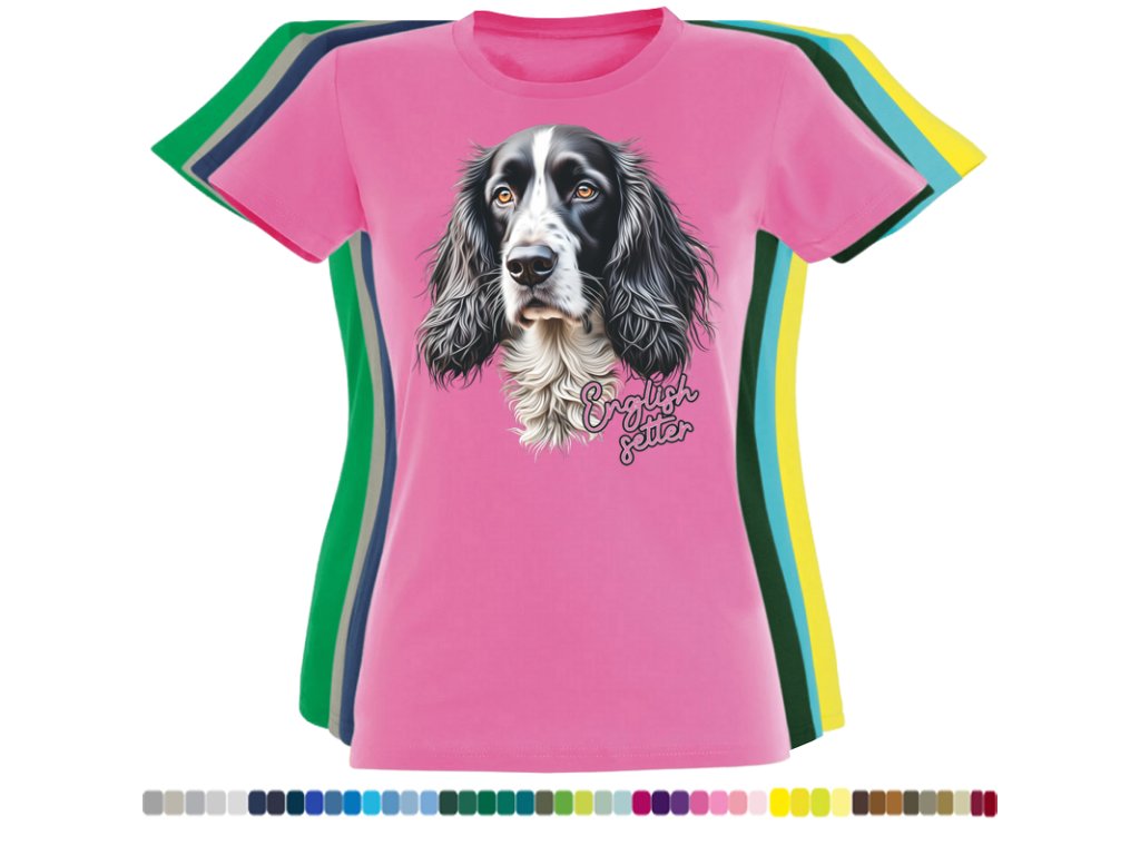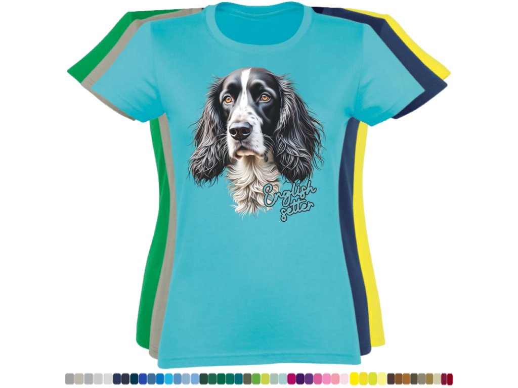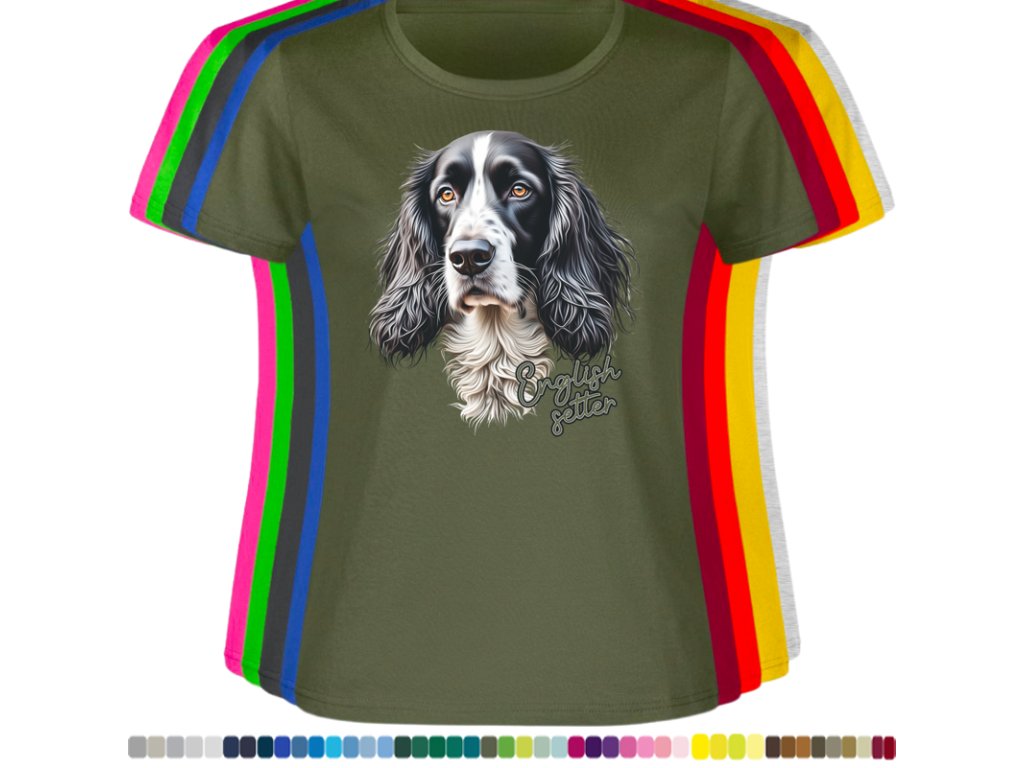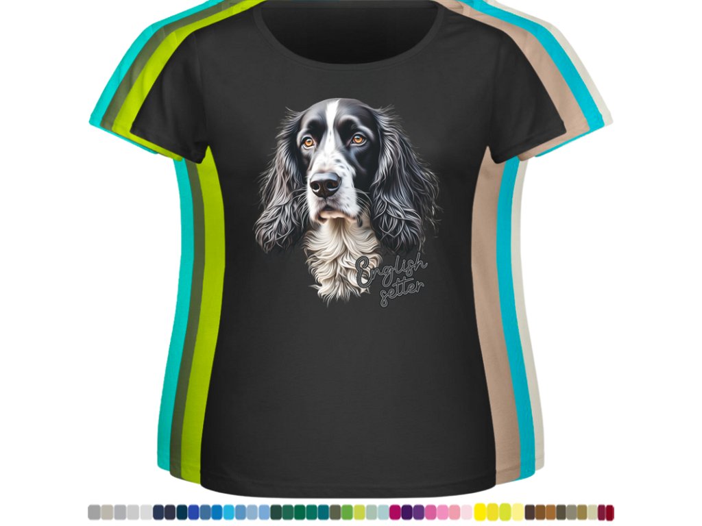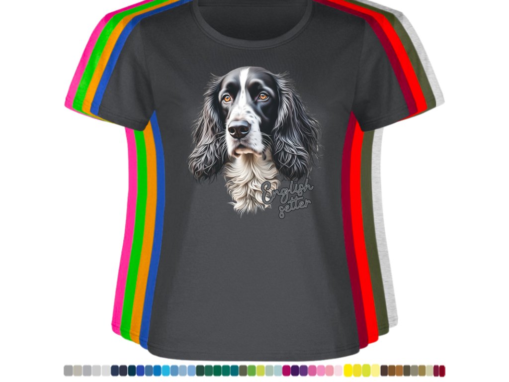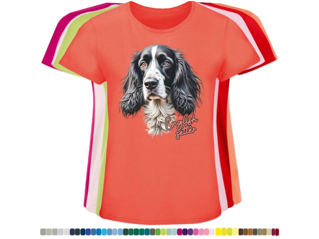 Dámské levné bavlněné tričko s digitálním potiskem Anglický setr
