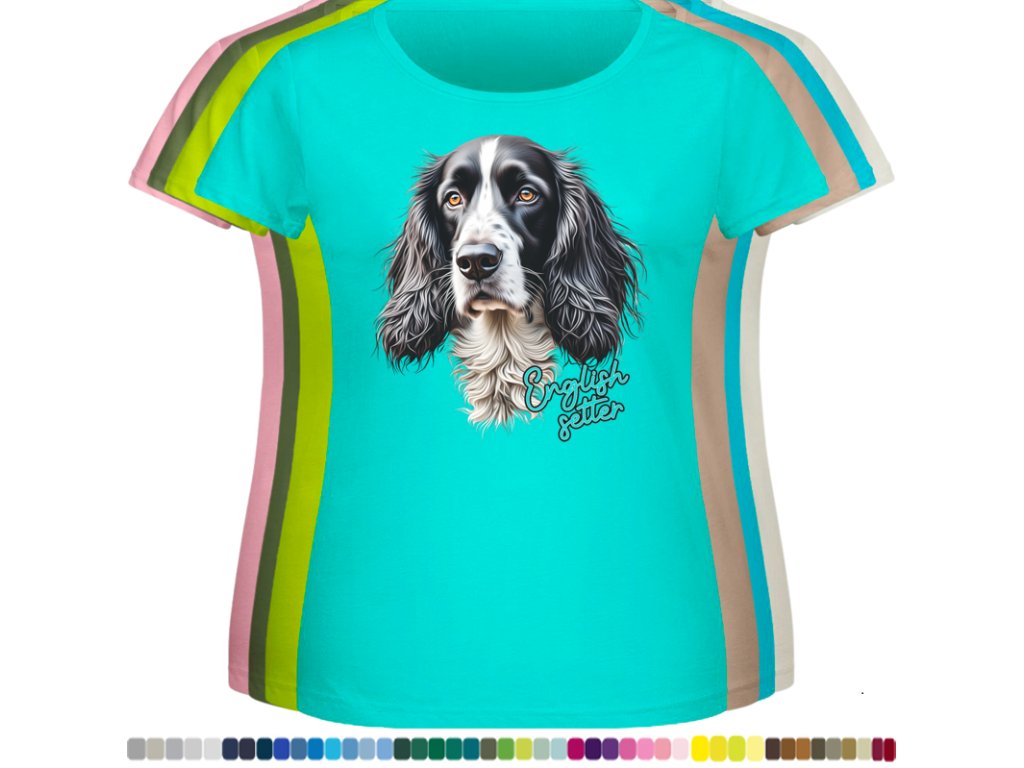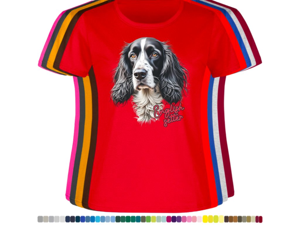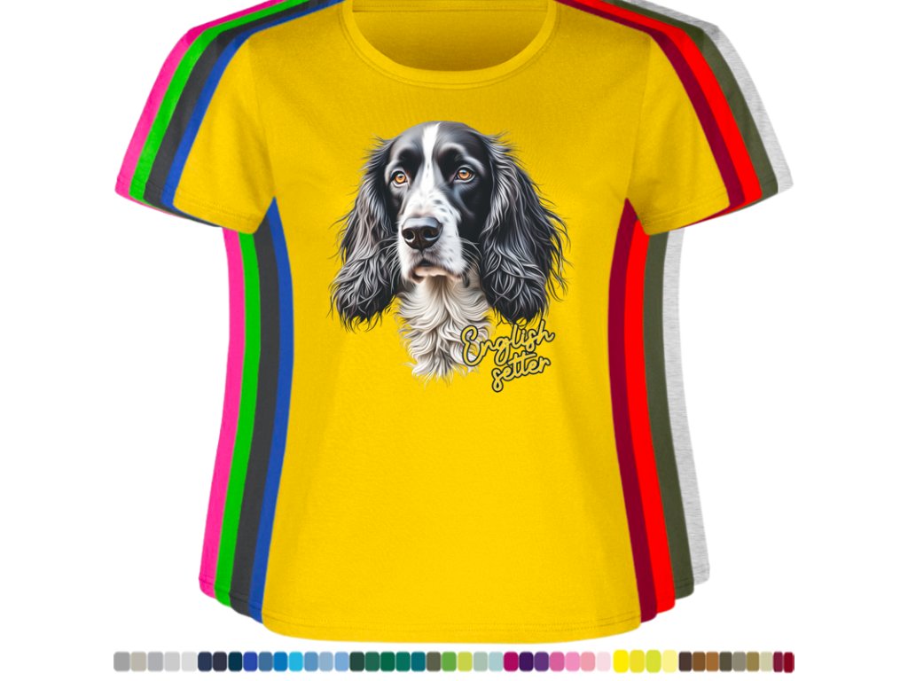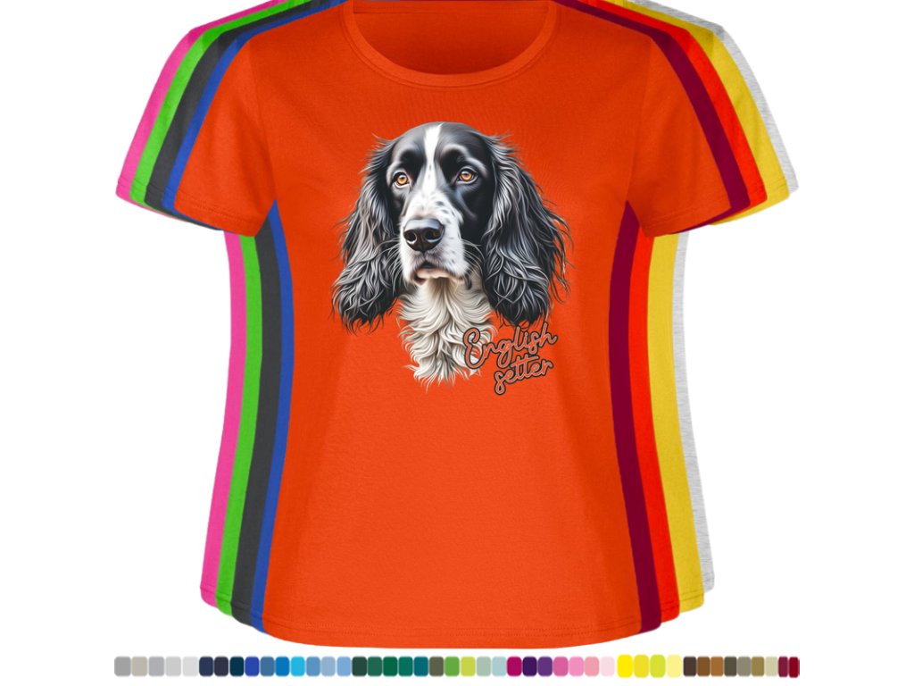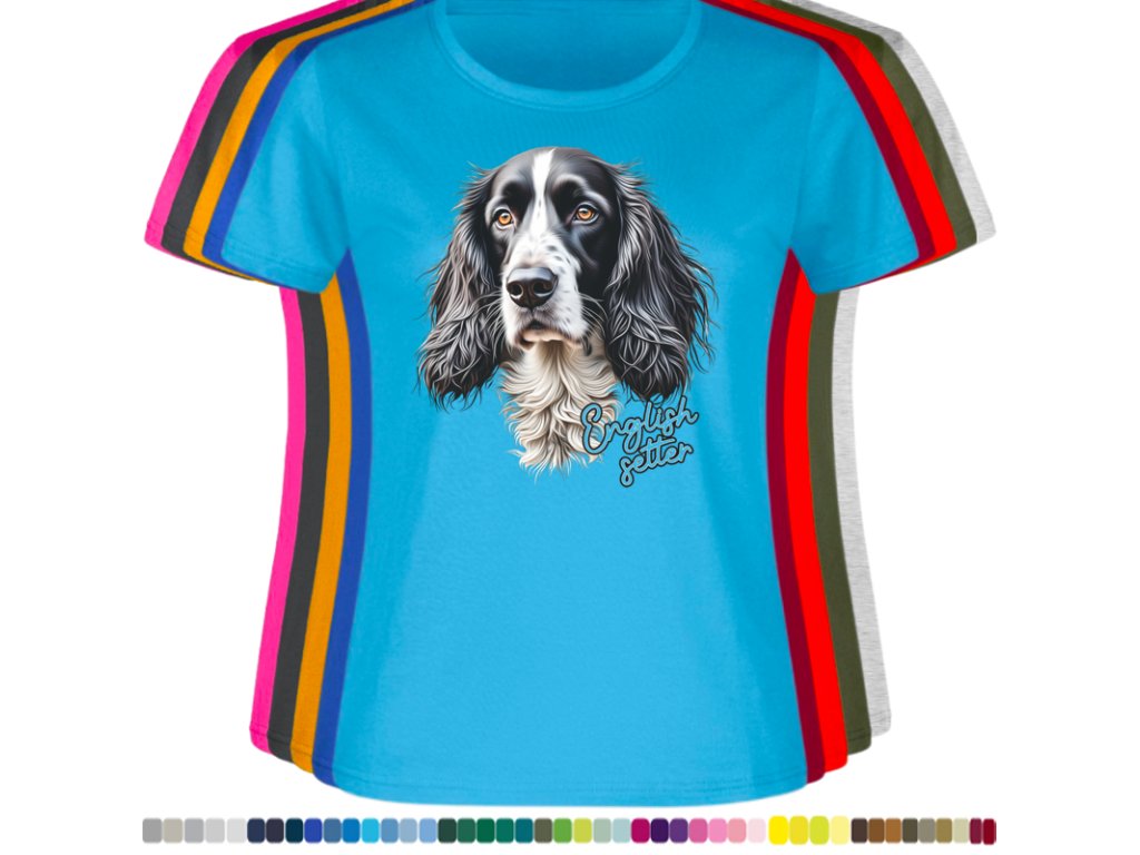 Dámské levné bavlněné tričko s digitálním potiskem Anglický setr