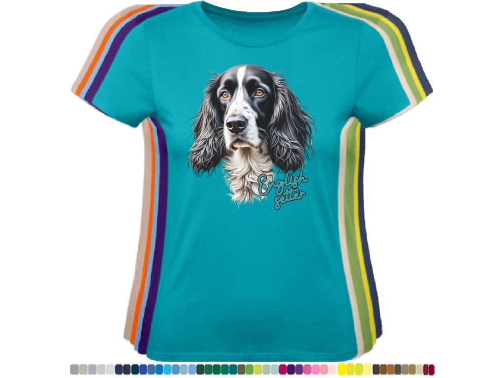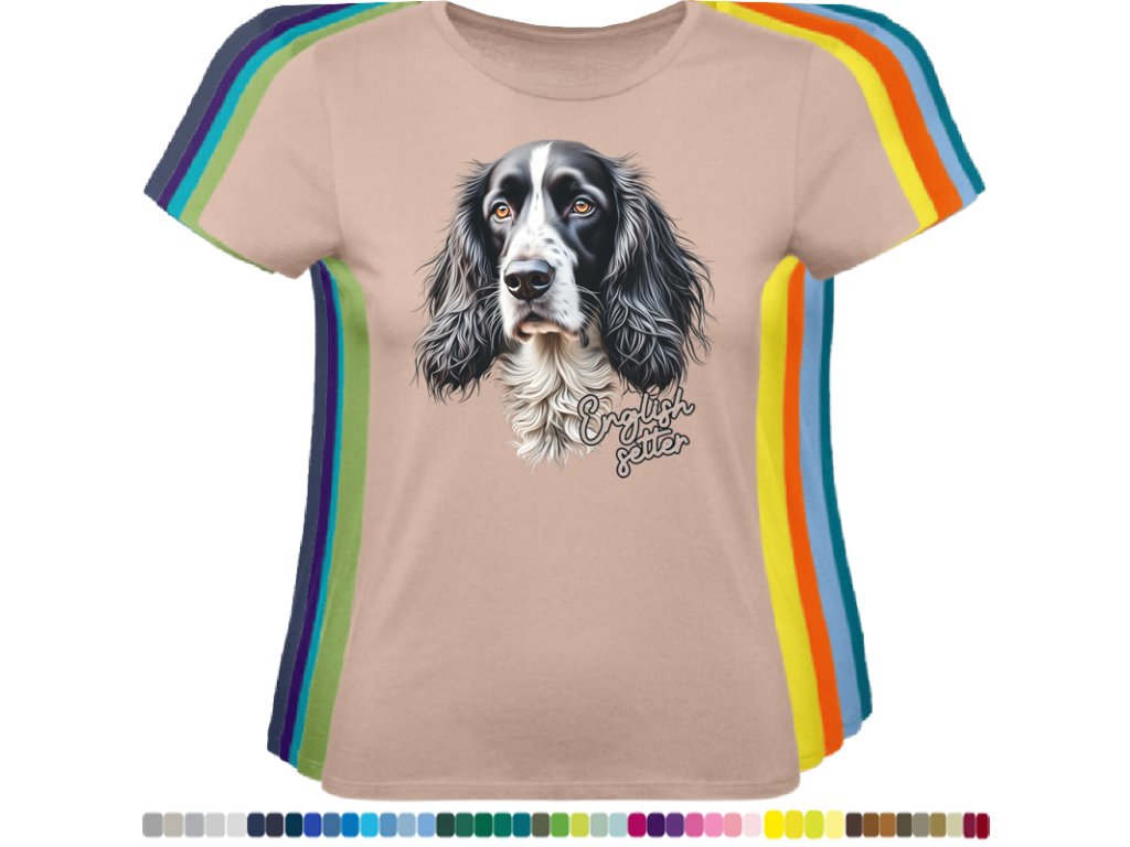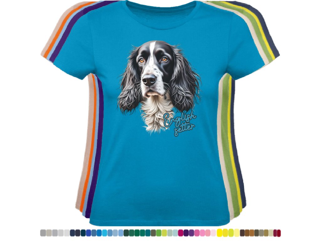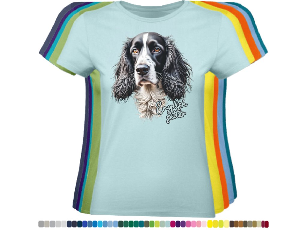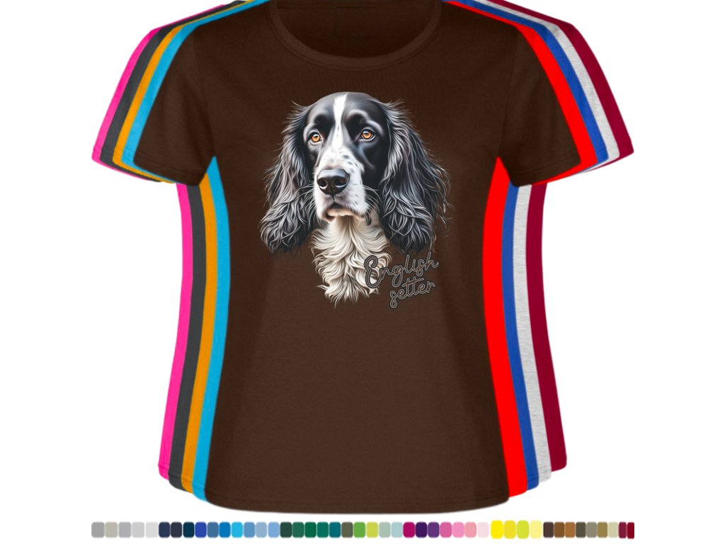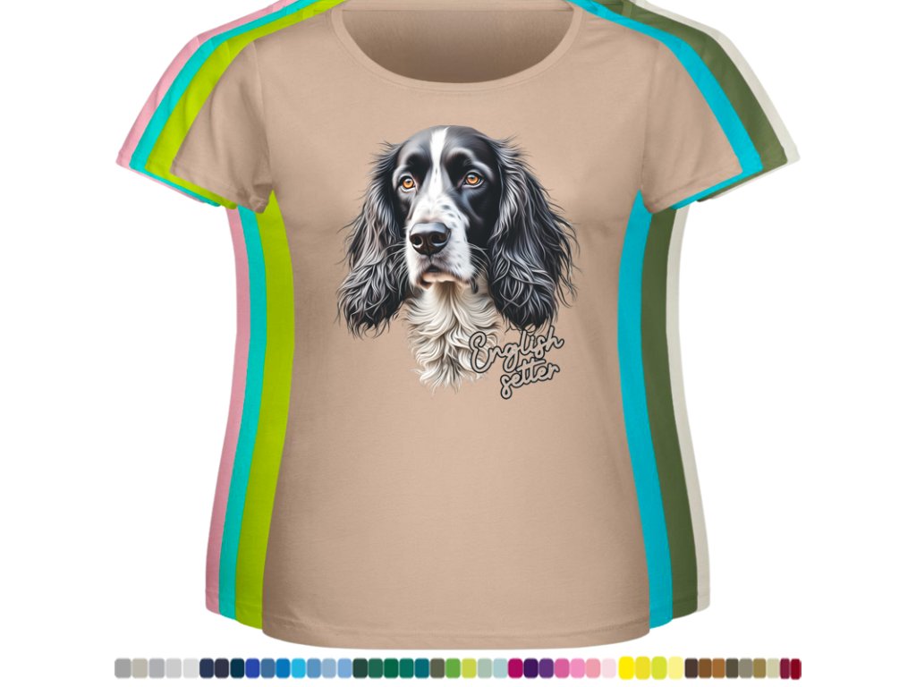 Dámské levné bavlněné tričko s digitálním potiskem Anglický setr