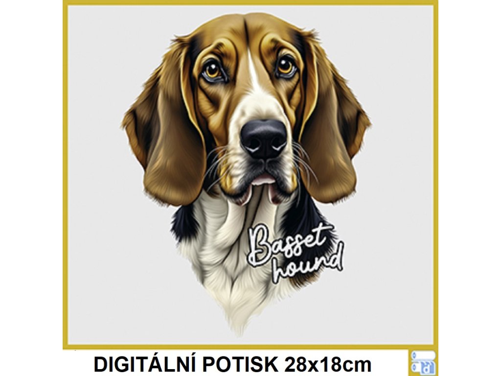 DÁMSKÉ LEVNÉ BAVLNĚNÉ TRIČKO S DIGITÁLNÍM POTISKEM PSA BASET