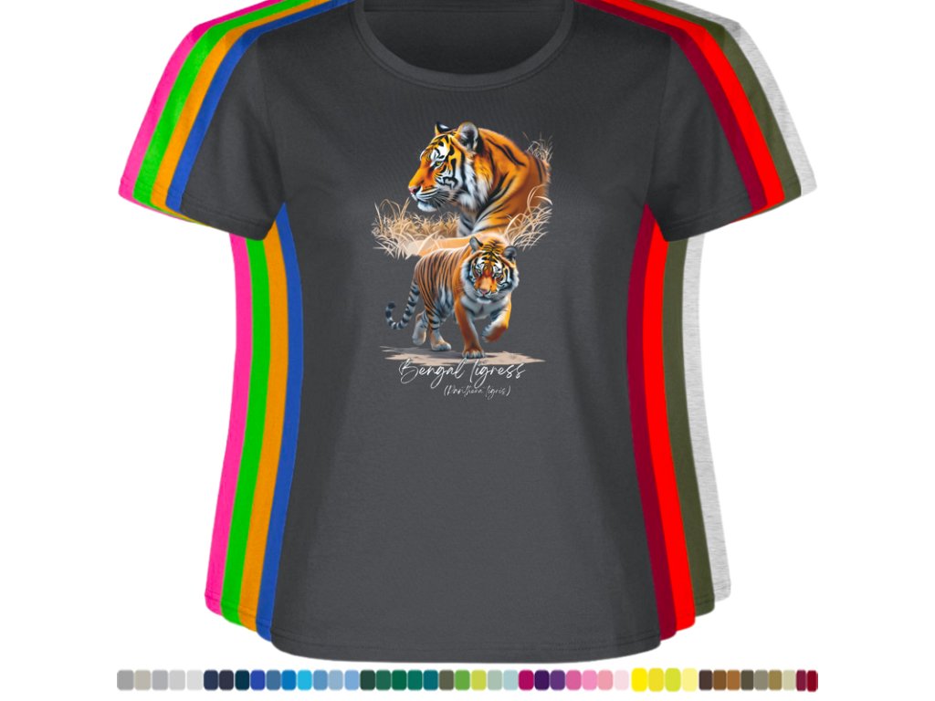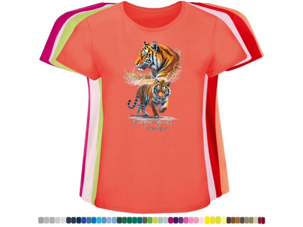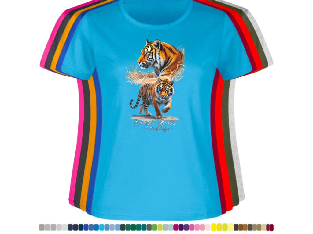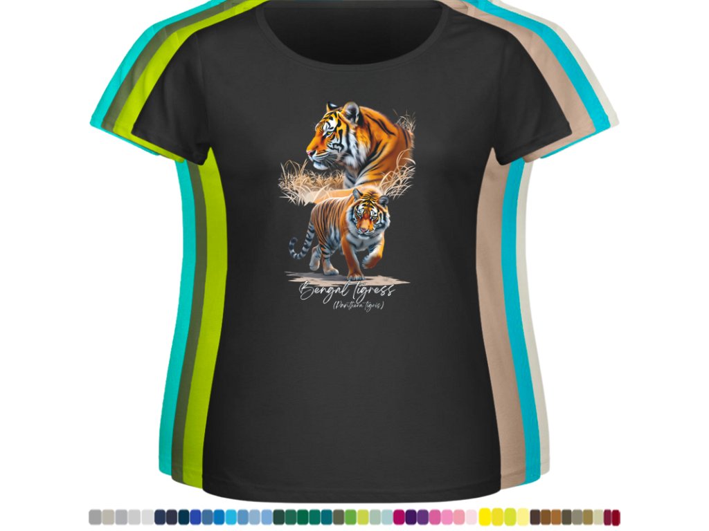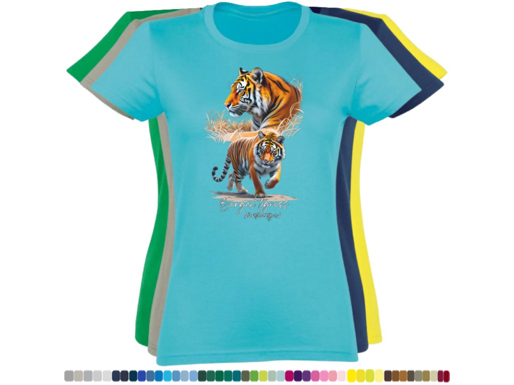 Dámské levné bavlněné tričko s digitálním potiskem Bengálští tygři