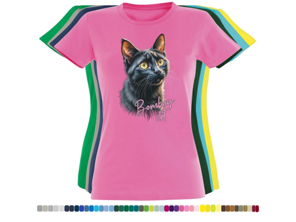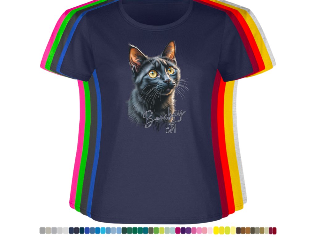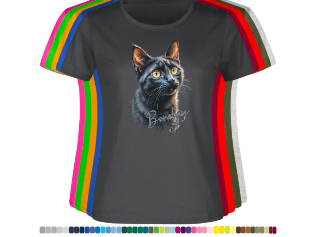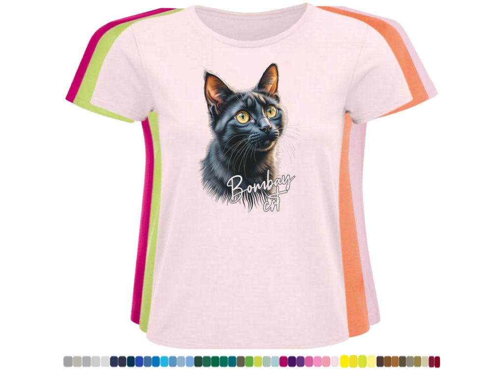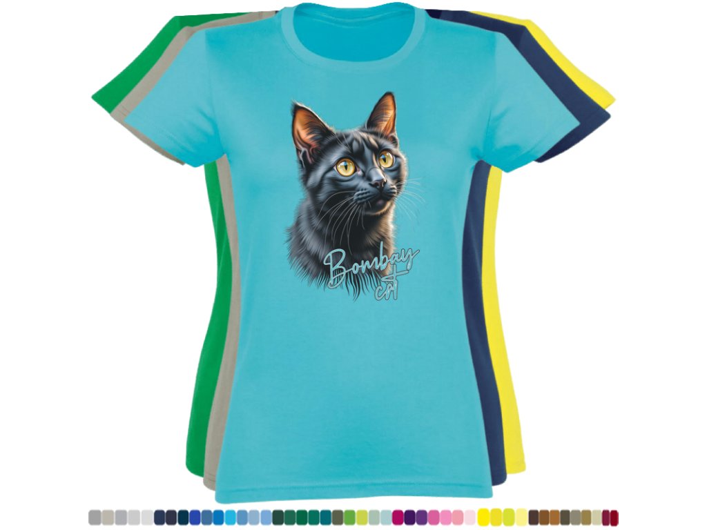 DÁMSKÉ LEVNÉ BAVLNĚNÉ TRIČKO S DIGITÁLNÍM POTISKEM BOMBAJSKÉ KOČKY