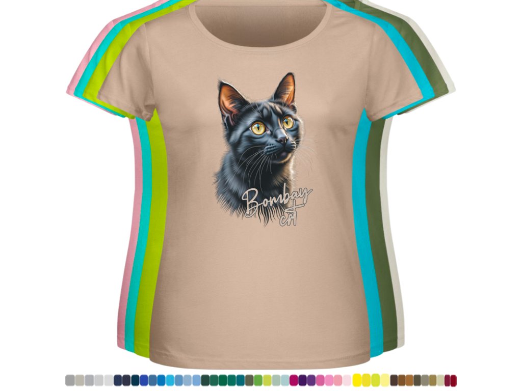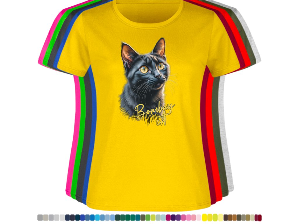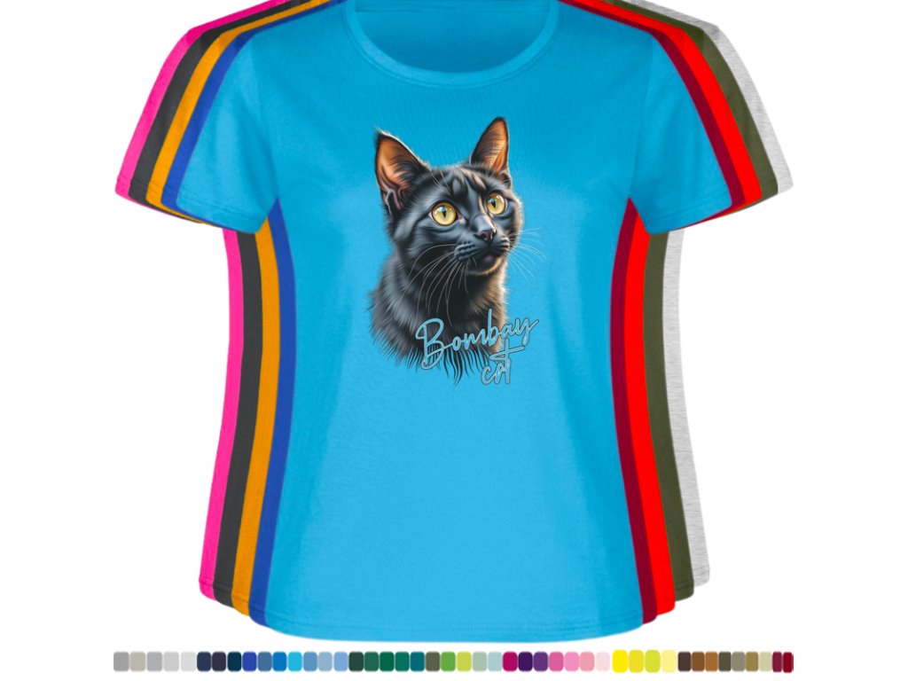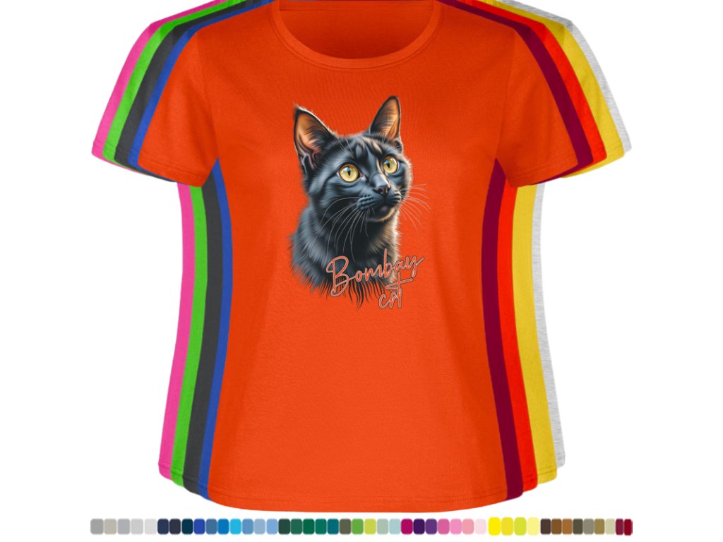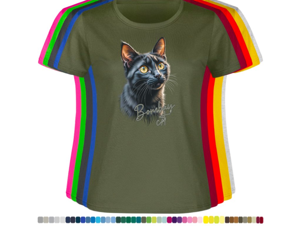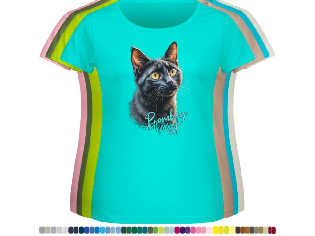 DÁMSKÉ LEVNÉ BAVLNĚNÉ TRIČKO S DIGITÁLNÍM POTISKEM BOMBAJSKÉ KOČKY
