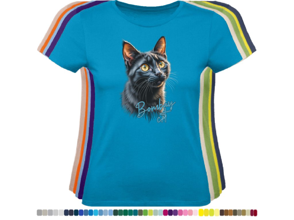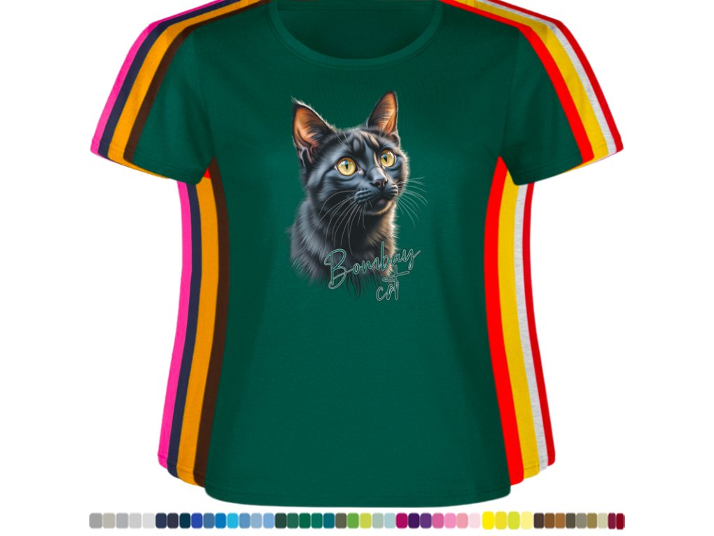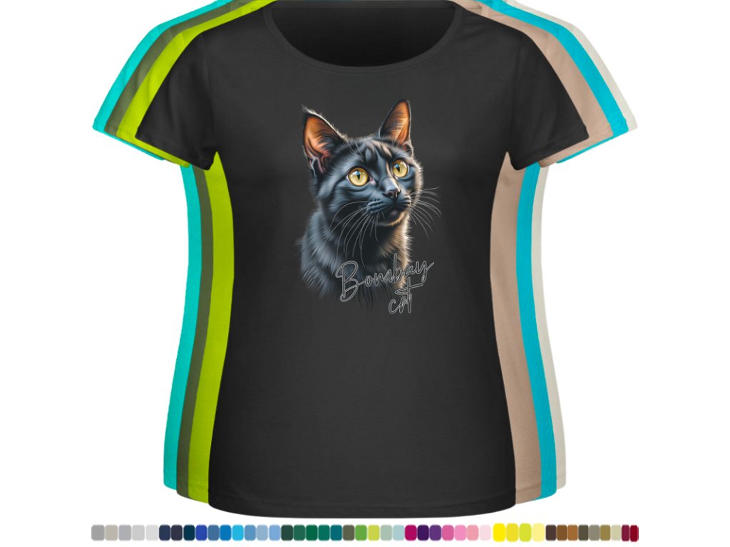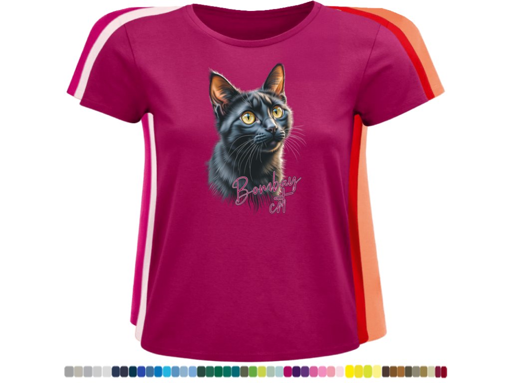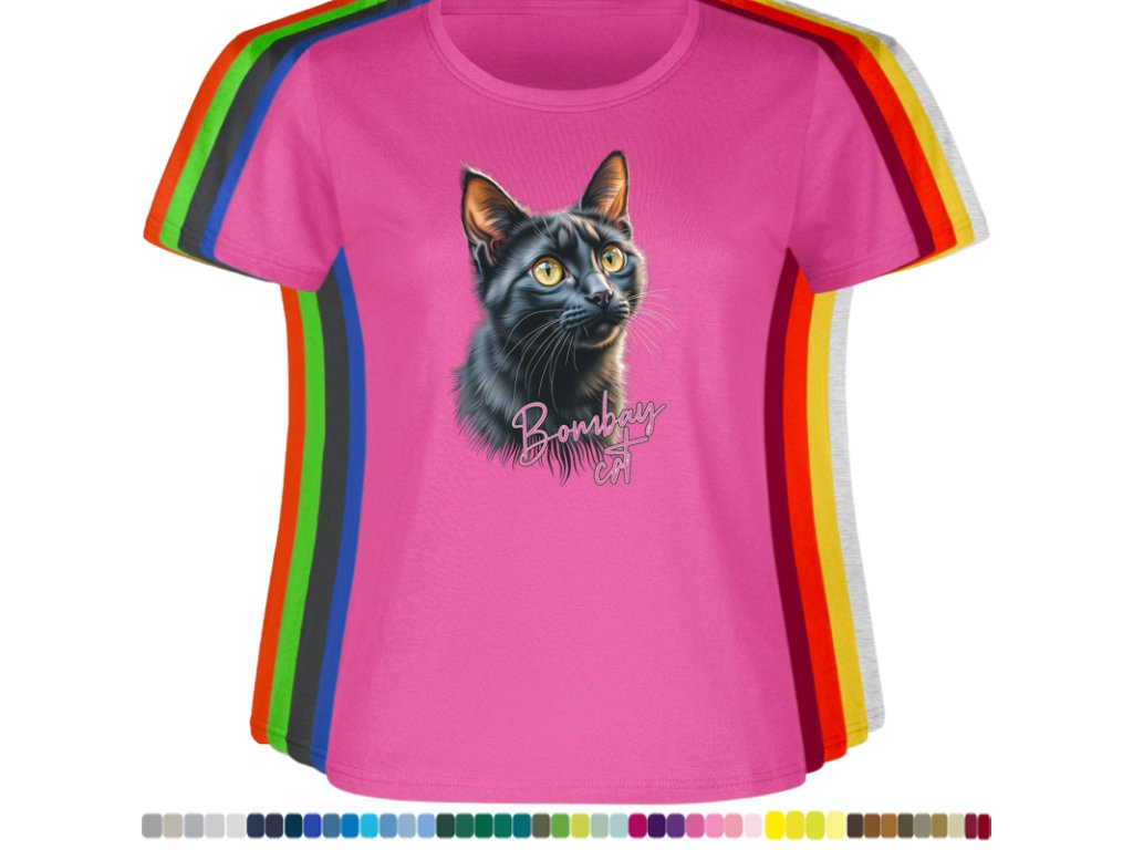 DÁMSKÉ LEVNÉ BAVLNĚNÉ TRIČKO S DIGITÁLNÍM POTISKEM BOMBAJSKÉ KOČKY