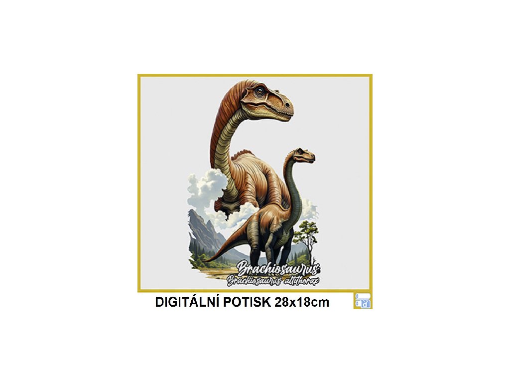 Dámské levné bavlněné tričko s digitálním potiskem Brachiosaurus - dino atlas