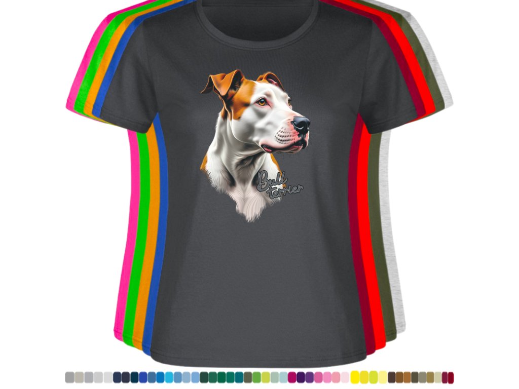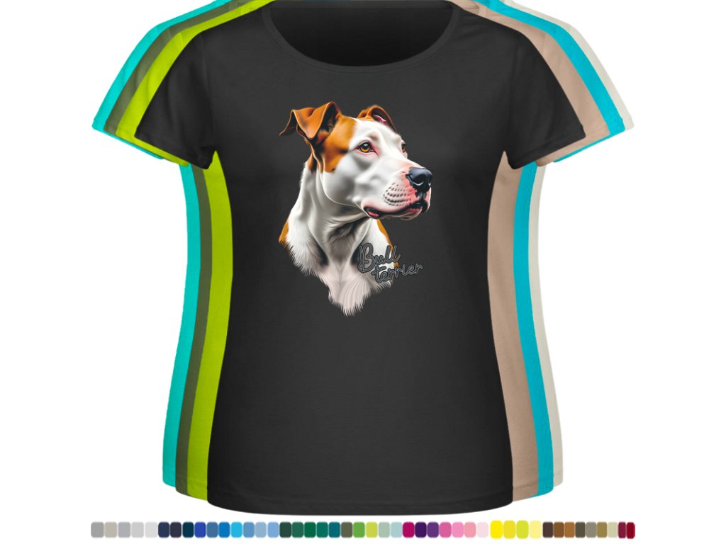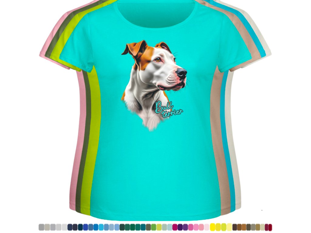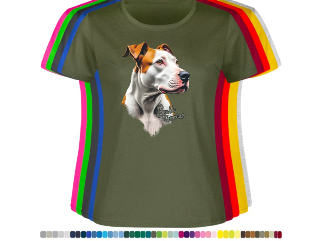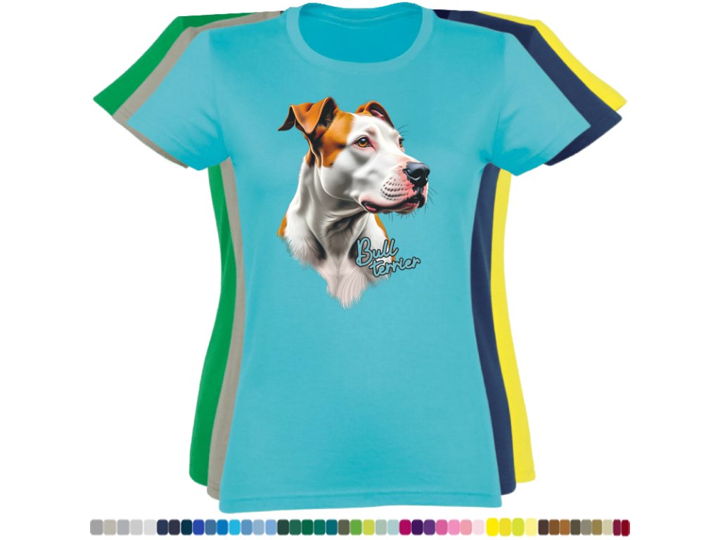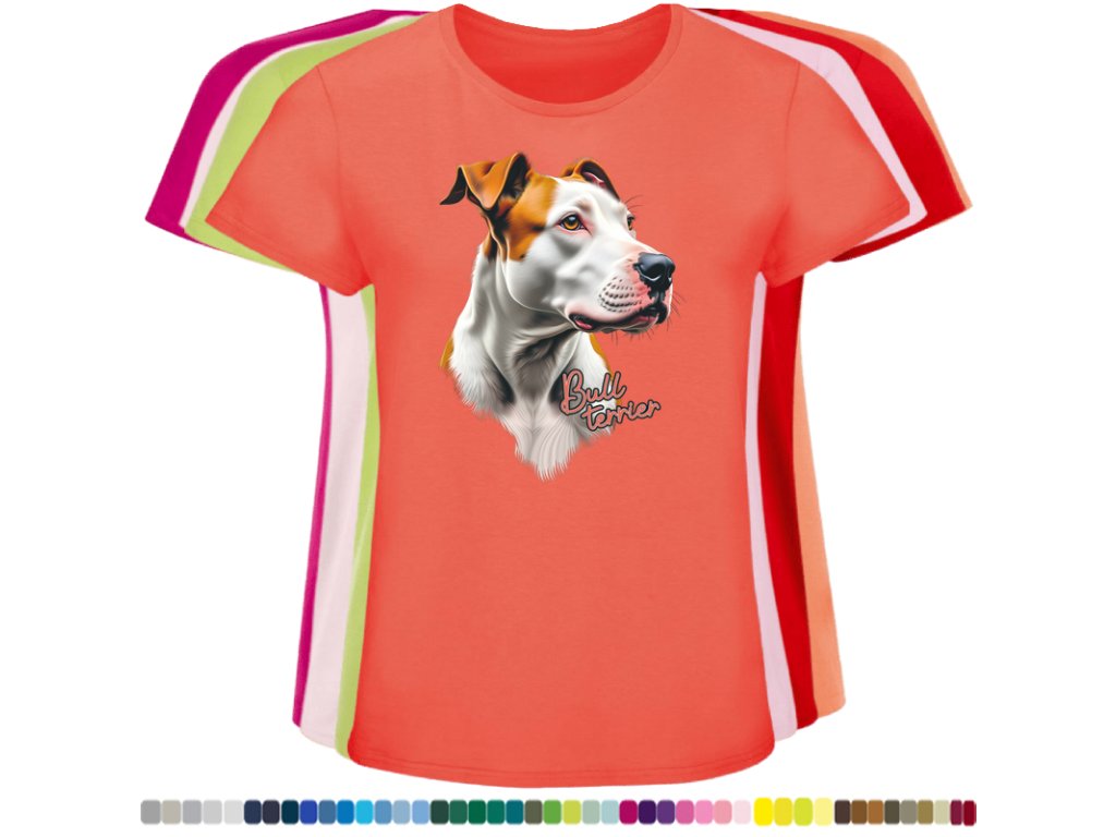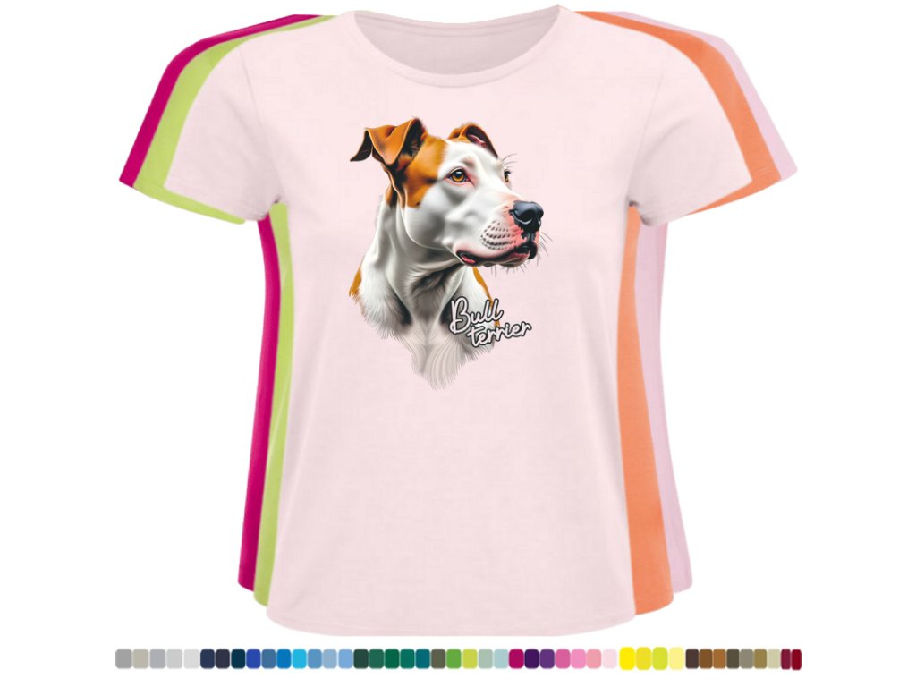 Dámské levné bavlněné tričko s digitálním potiskem Bullterrier