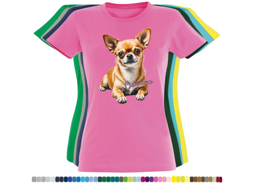 Dámské levné bavlněné tričko s digitálním potiskem Čivava