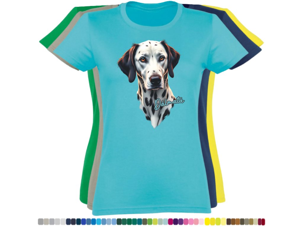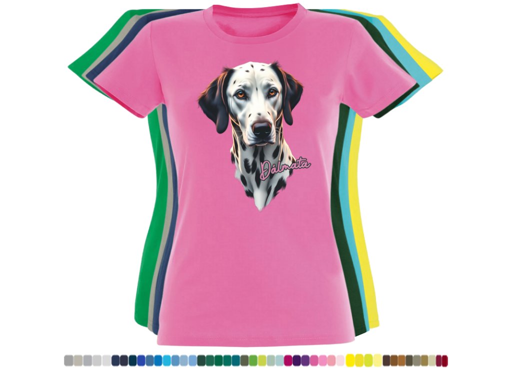 DÁMSKÉ LEVNÉ BAVLNĚNÉ TRIČKO S DIGITÁLNÍM POTISKEM PSA DALMATIN