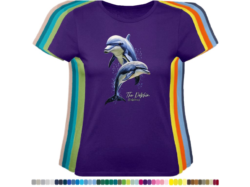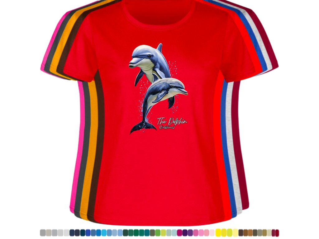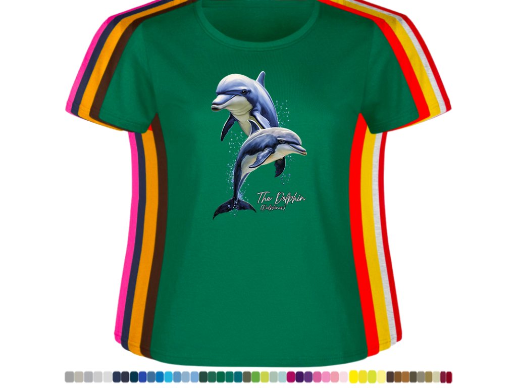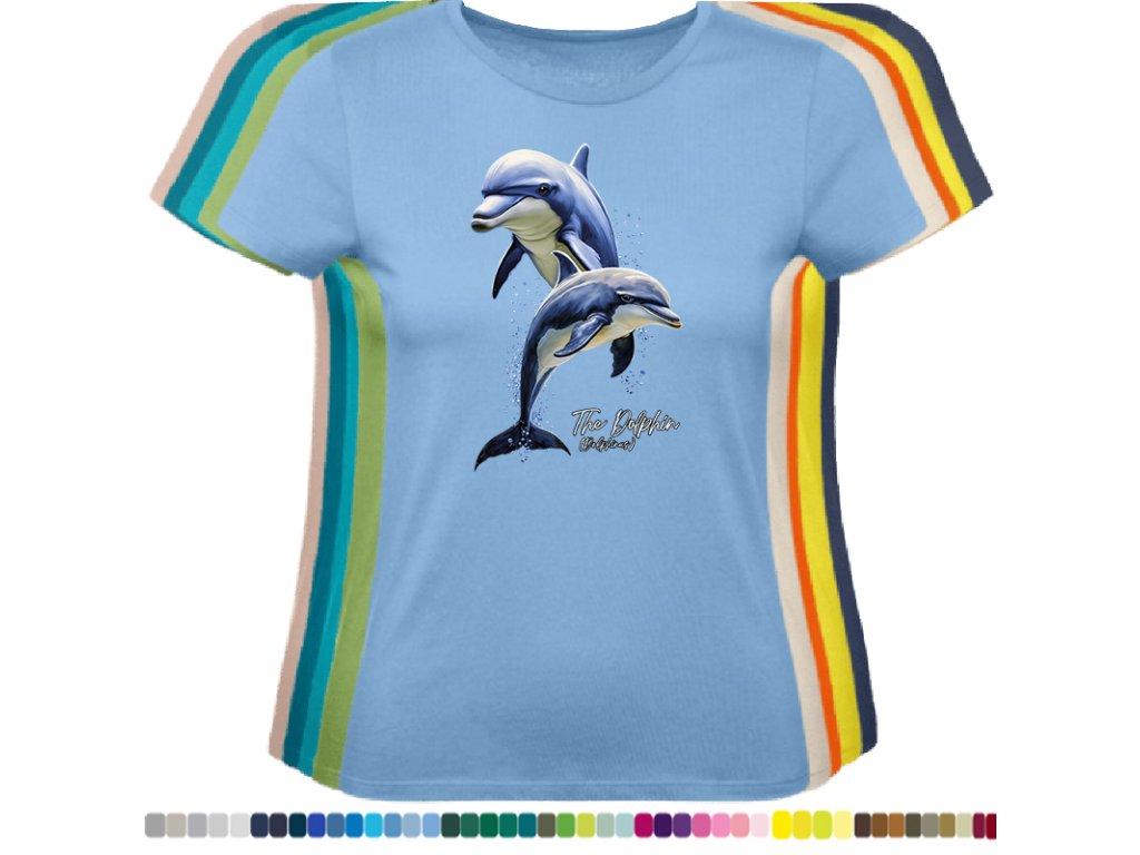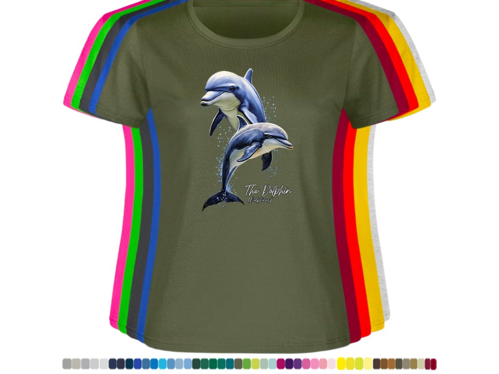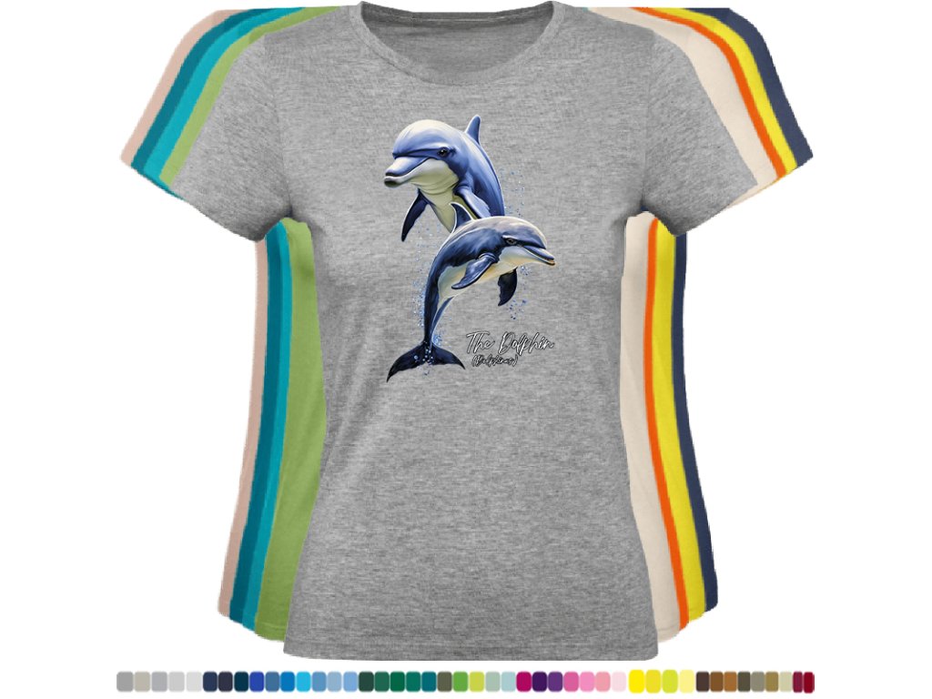 DÁMSKÉ LEVNÉ BAVLNĚNÉ TRIČKO S DIGITÁLNÍM POTISKEM DELFÍNI