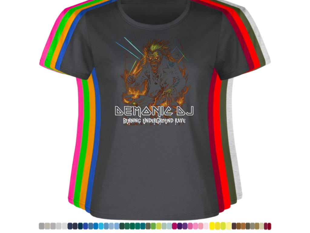Dámské levné bavlněné tričko s digitálním potiskem Démonický DJ