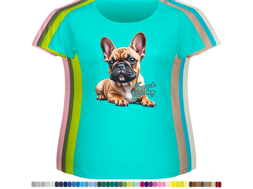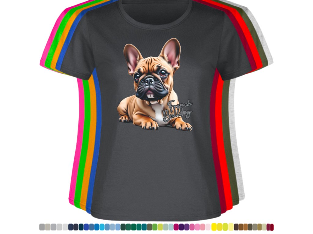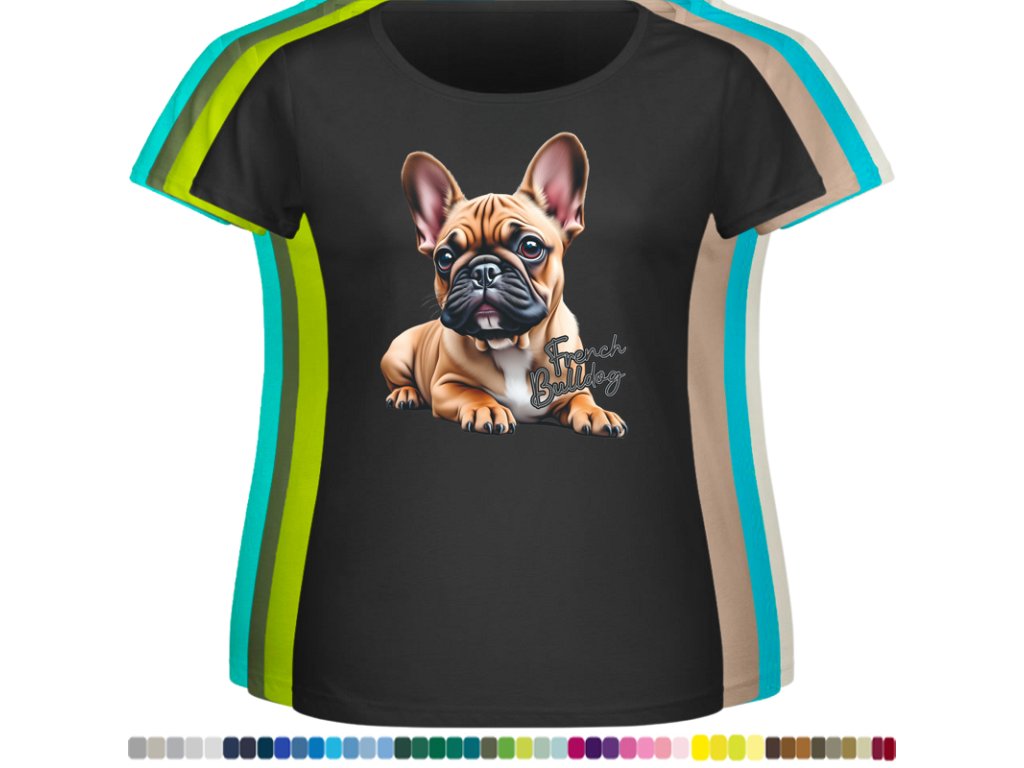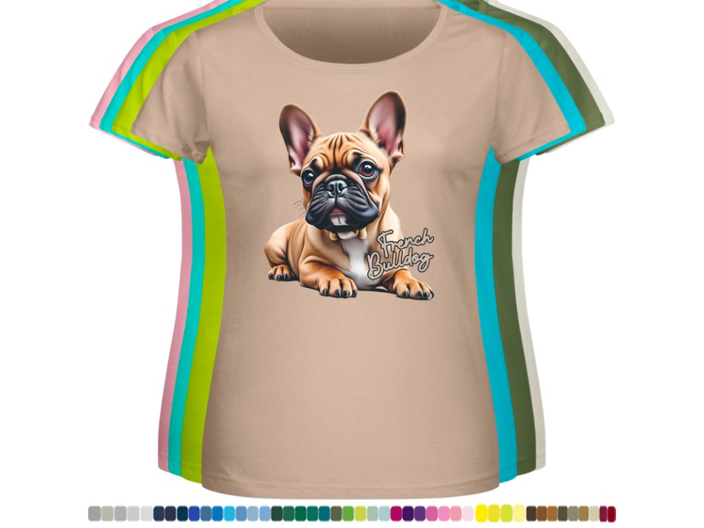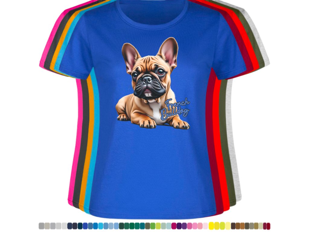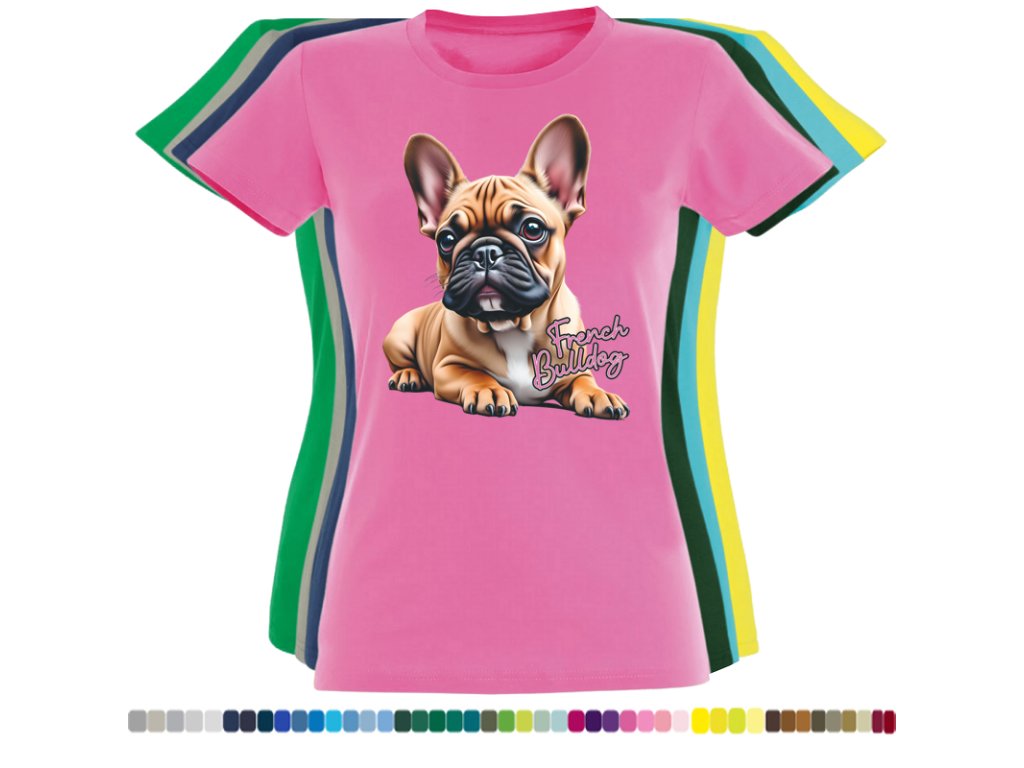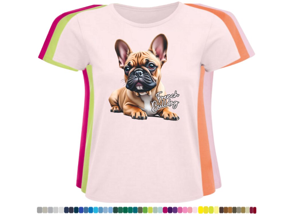 DÁMSKÉ LEVNÉ BAVLNĚNÉ TRIČKO S DIGITÁLNÍM POTISKEM PSA FRANCOUZSKÝ BULDOČEK