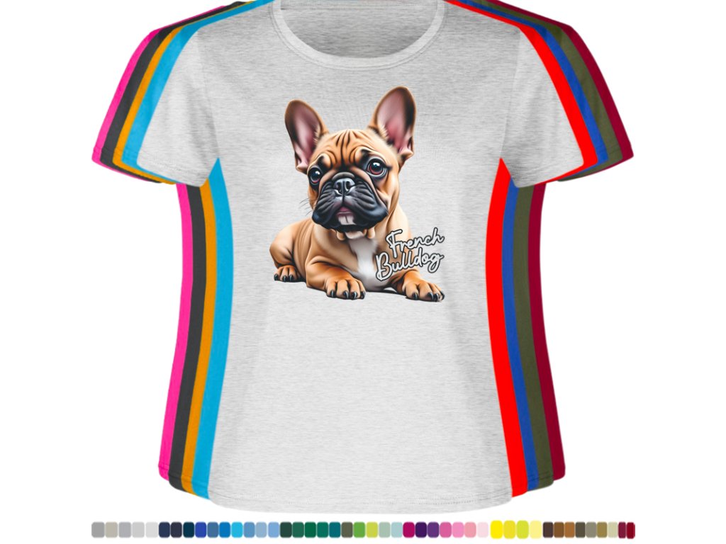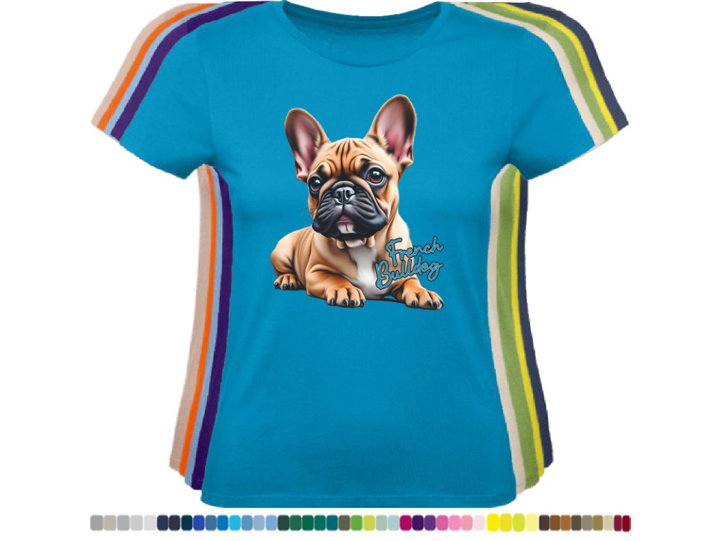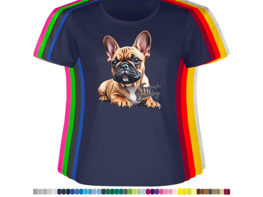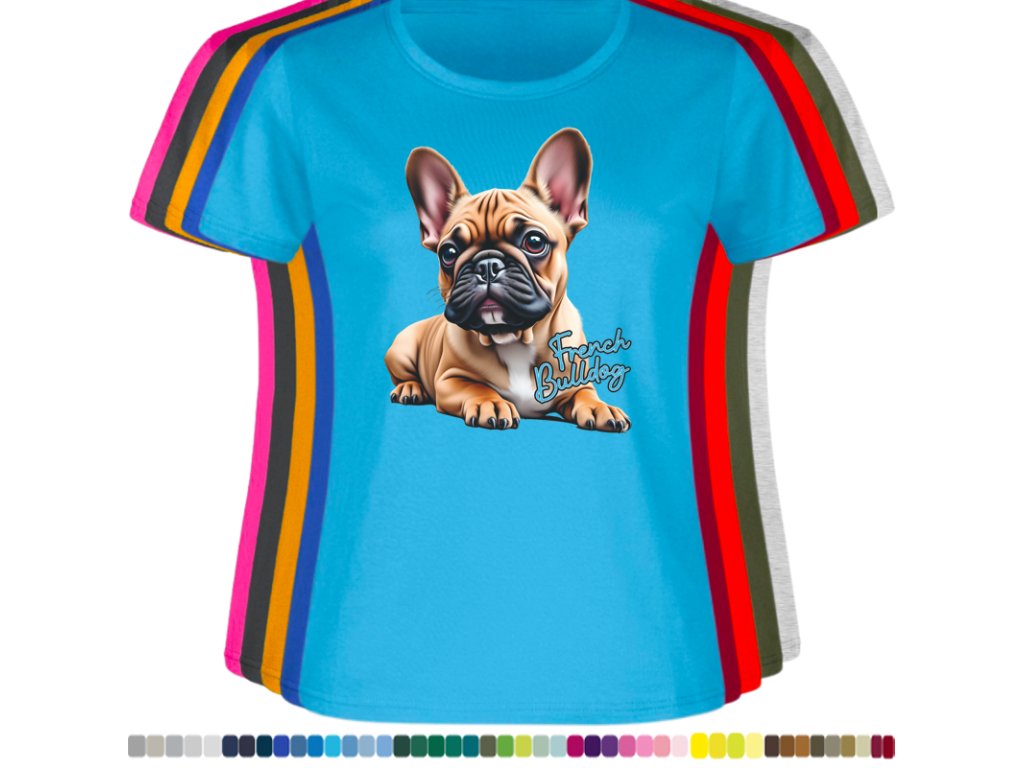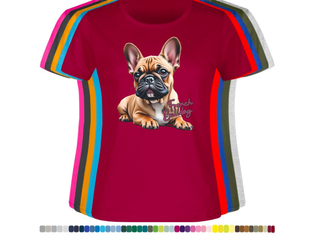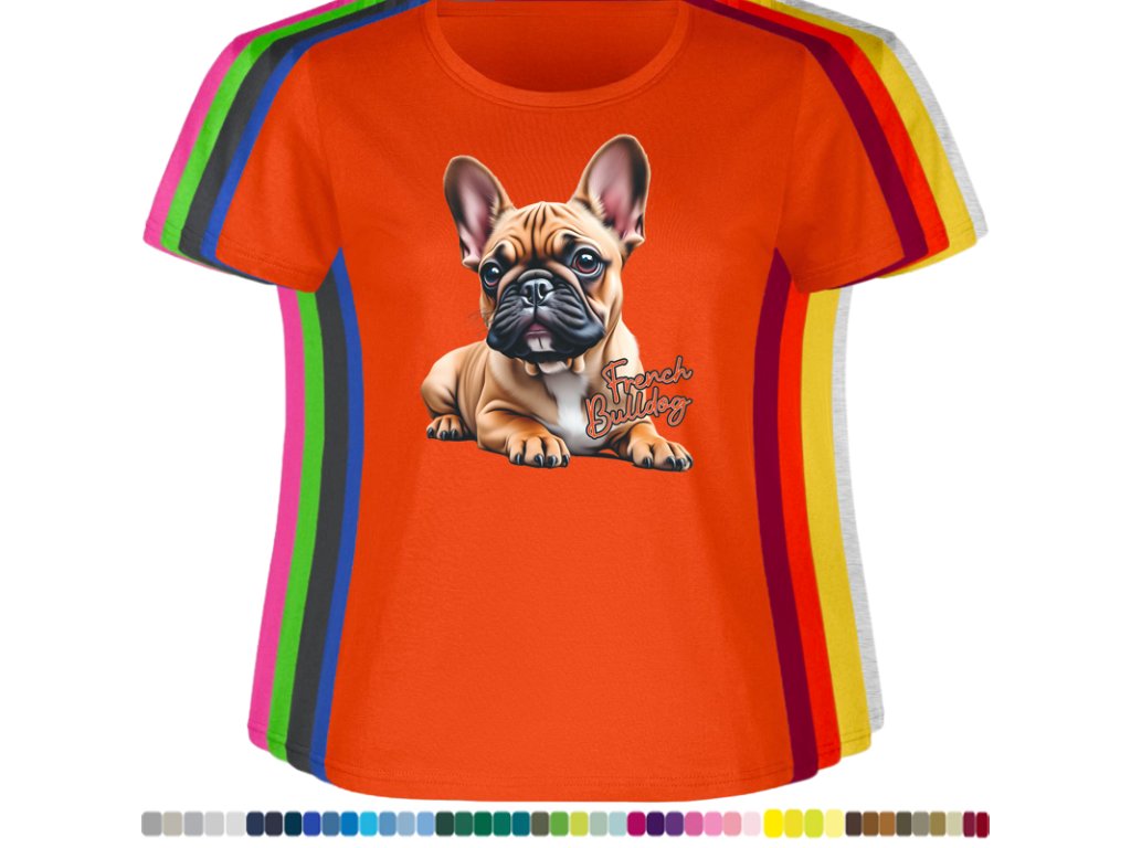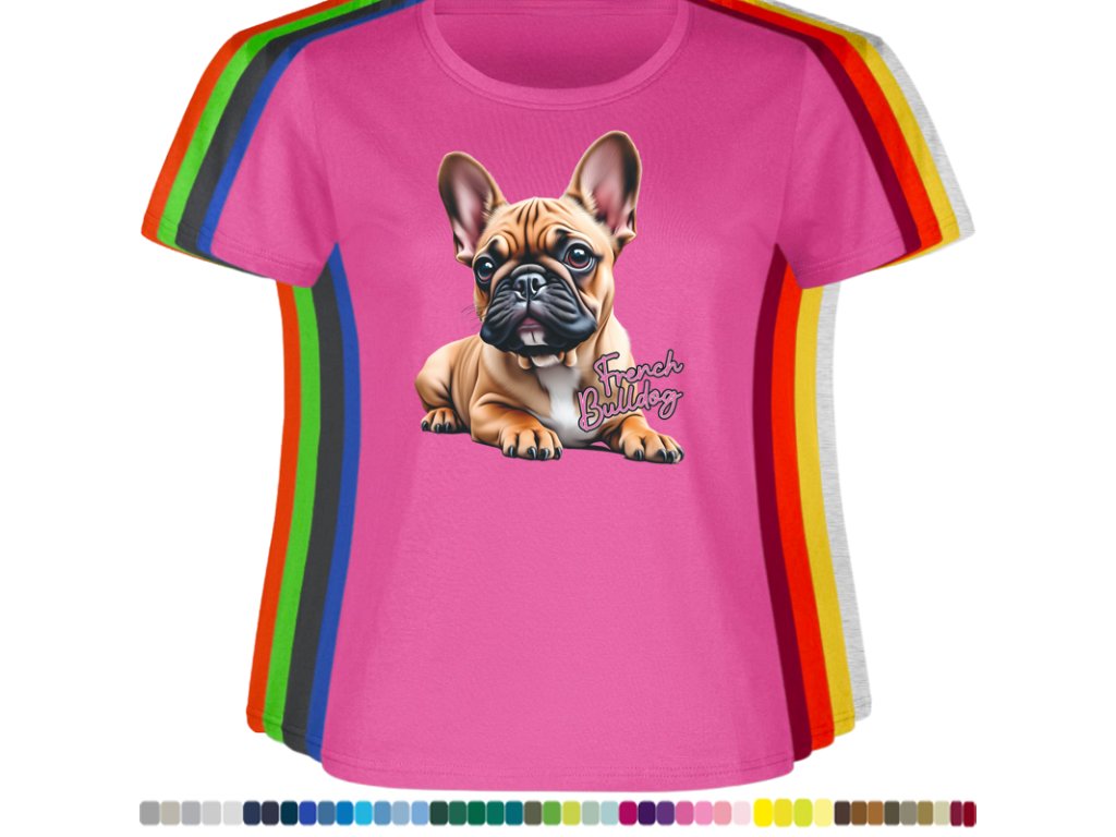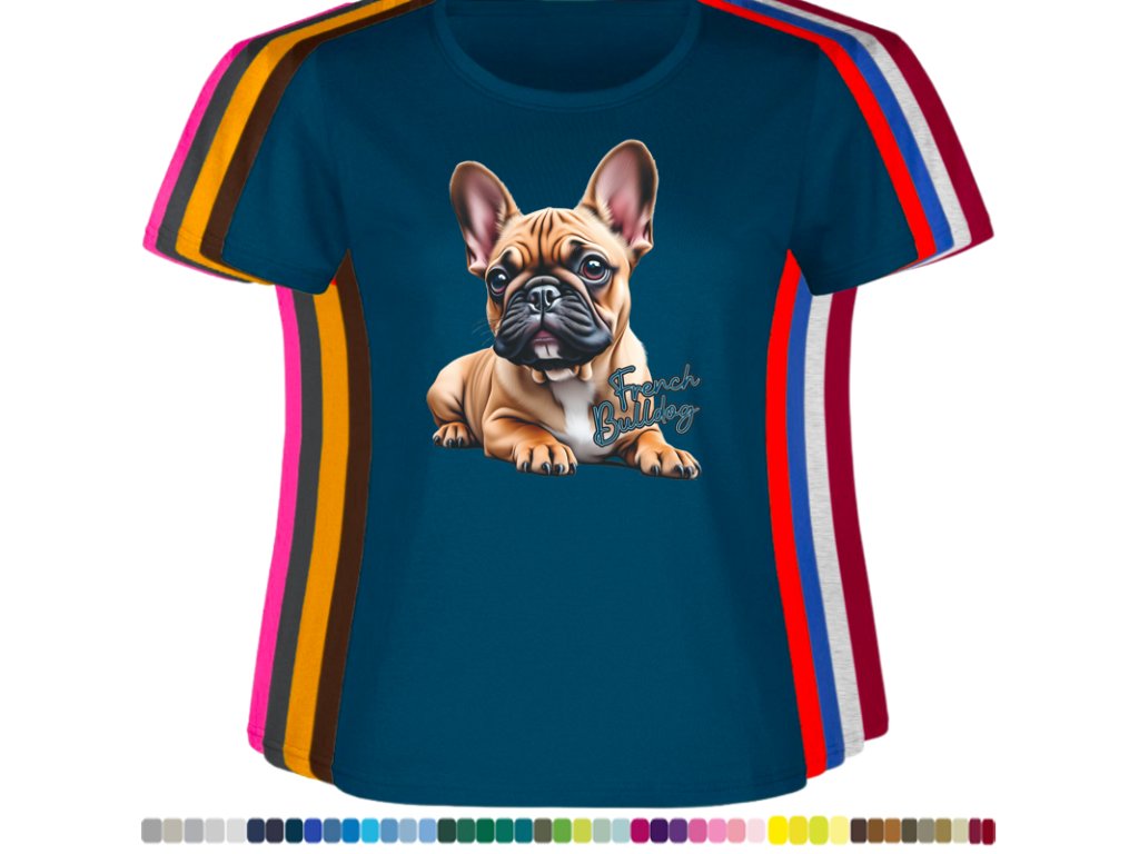 DÁMSKÉ LEVNÉ BAVLNĚNÉ TRIČKO S DIGITÁLNÍM POTISKEM PSA FRANCOUZSKÝ BULDOČEK