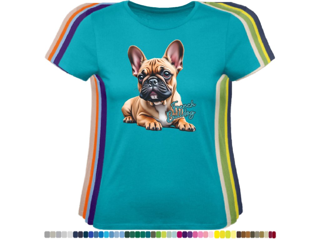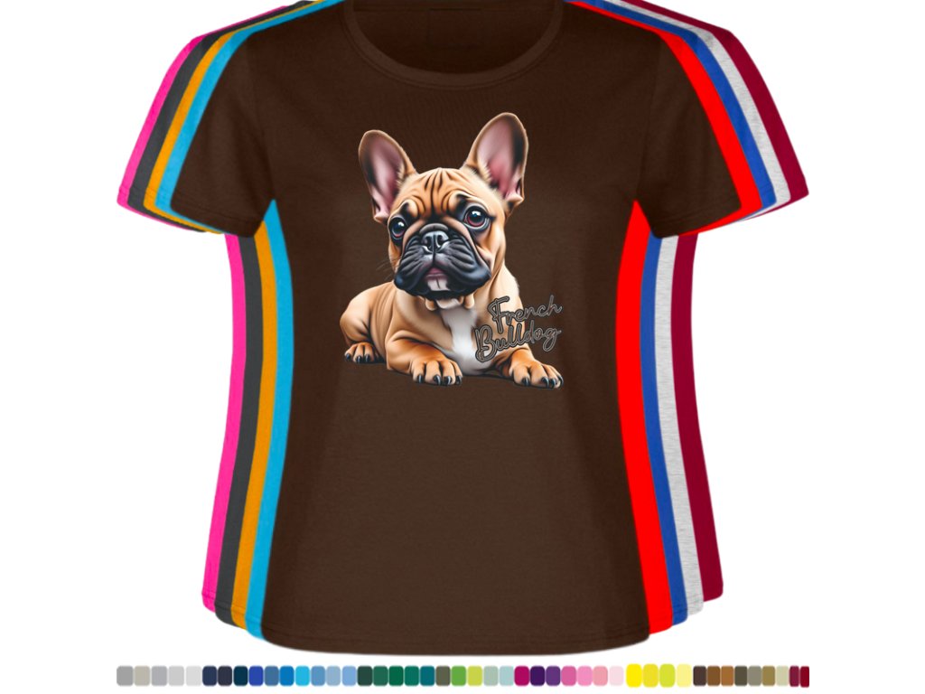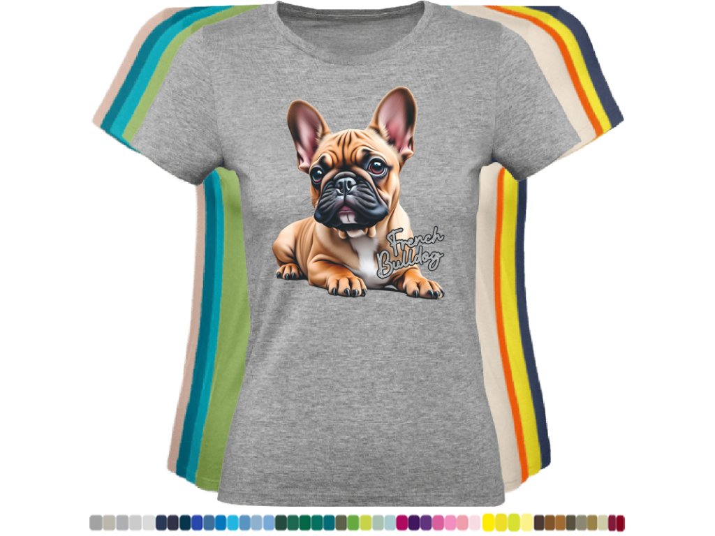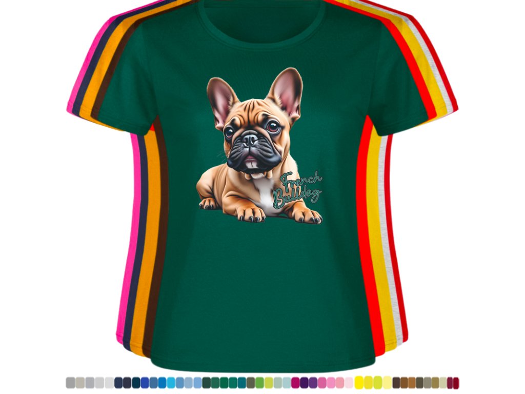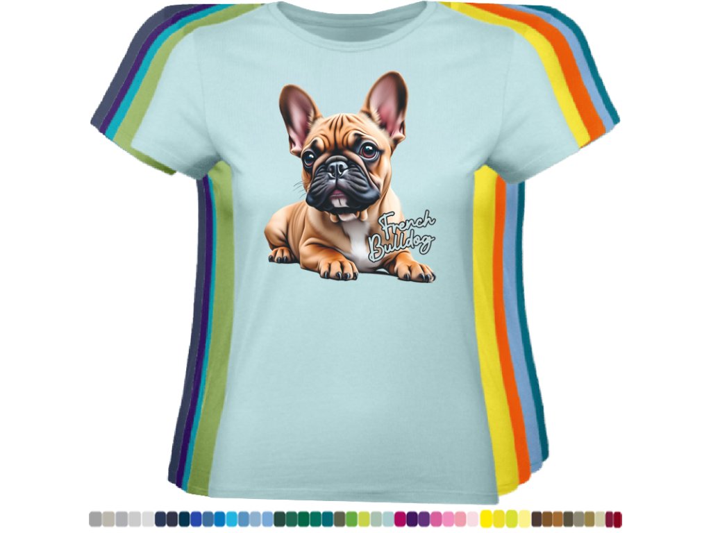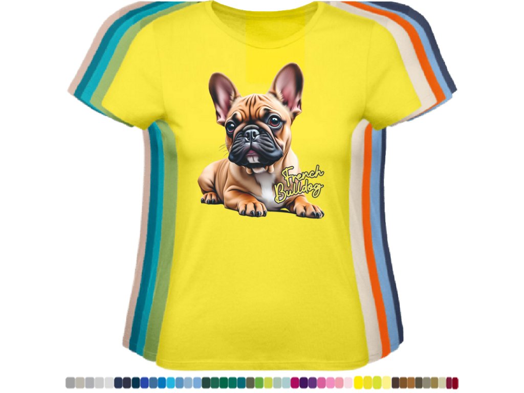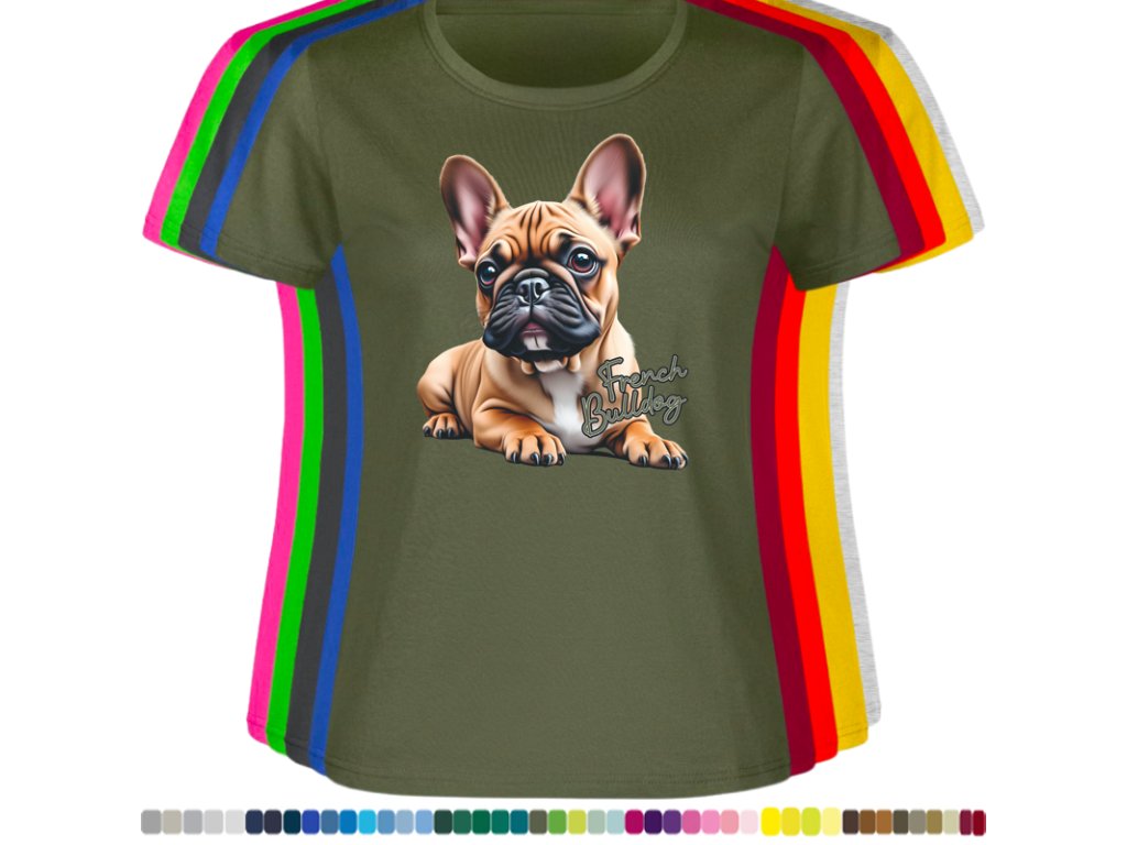 DÁMSKÉ LEVNÉ BAVLNĚNÉ TRIČKO S DIGITÁLNÍM POTISKEM PSA FRANCOUZSKÝ BULDOČEK
