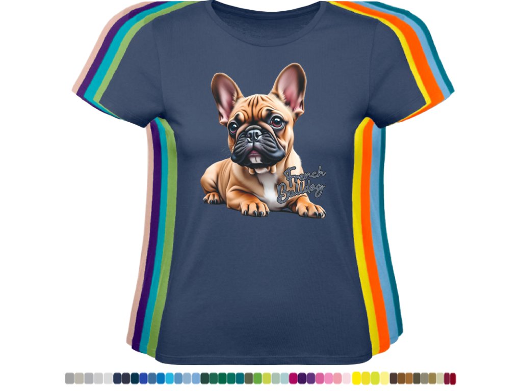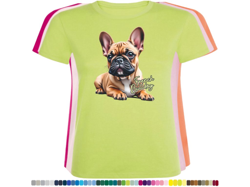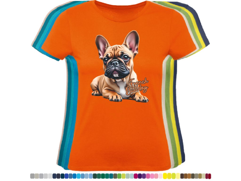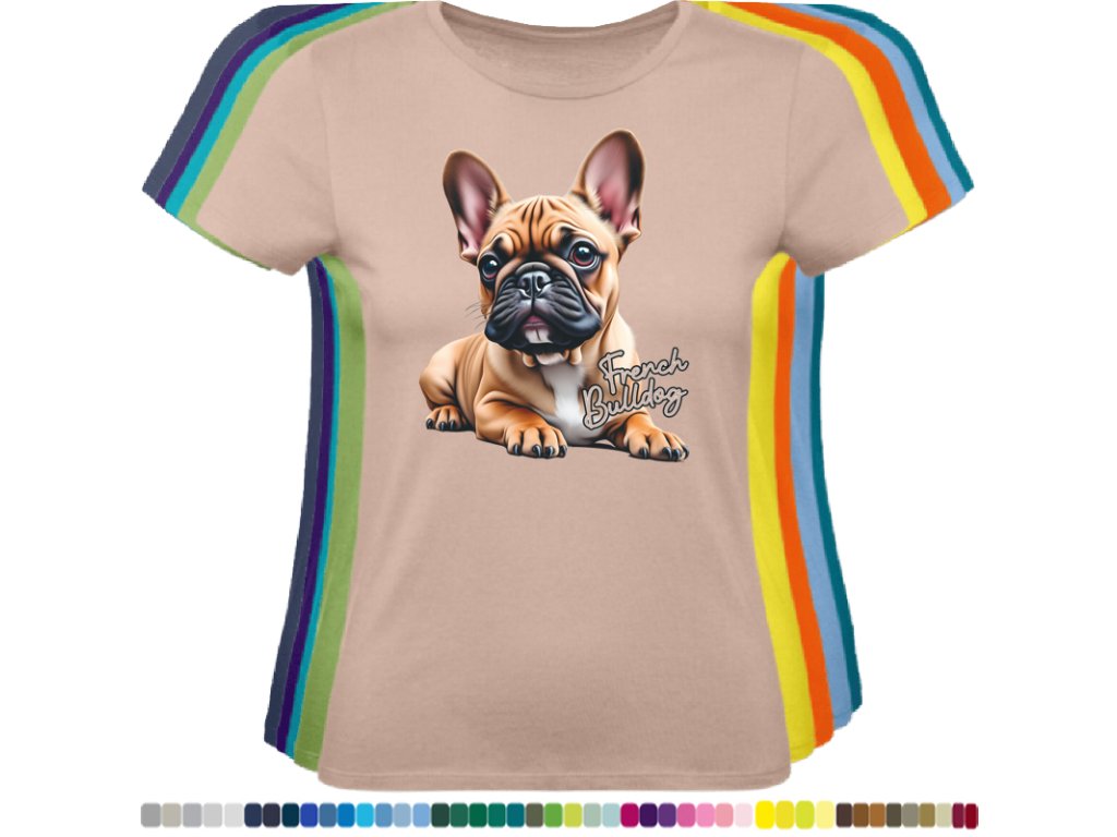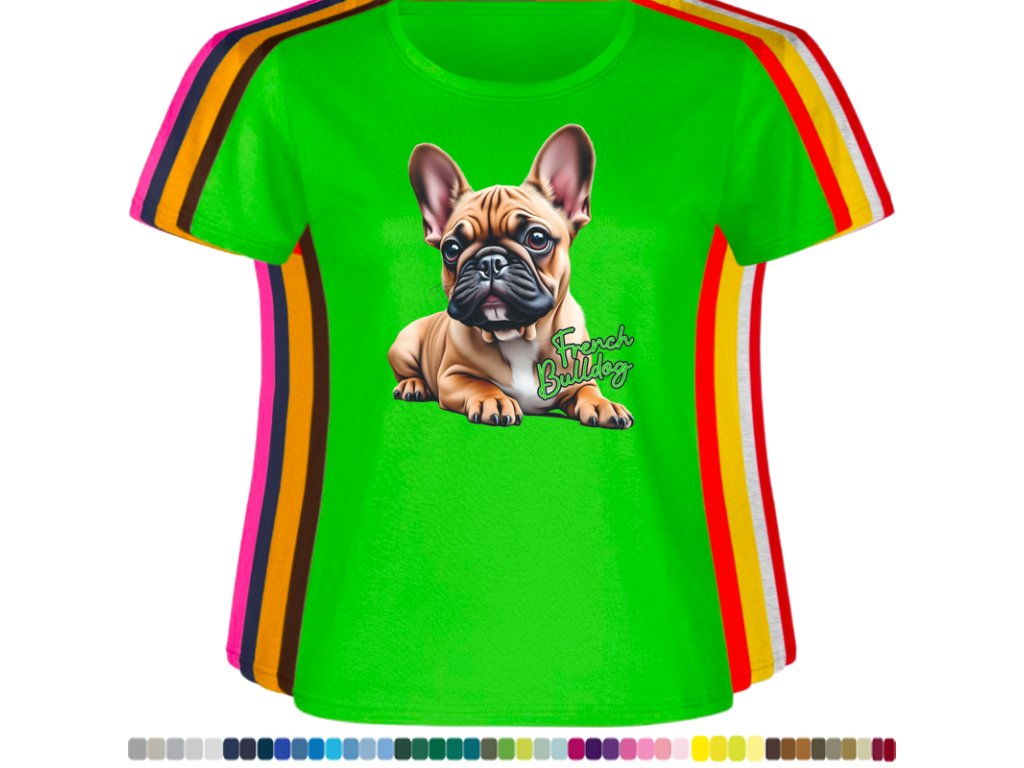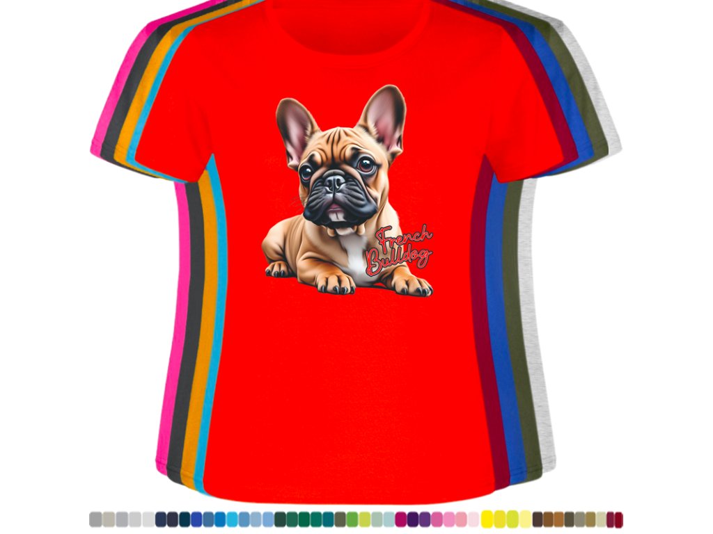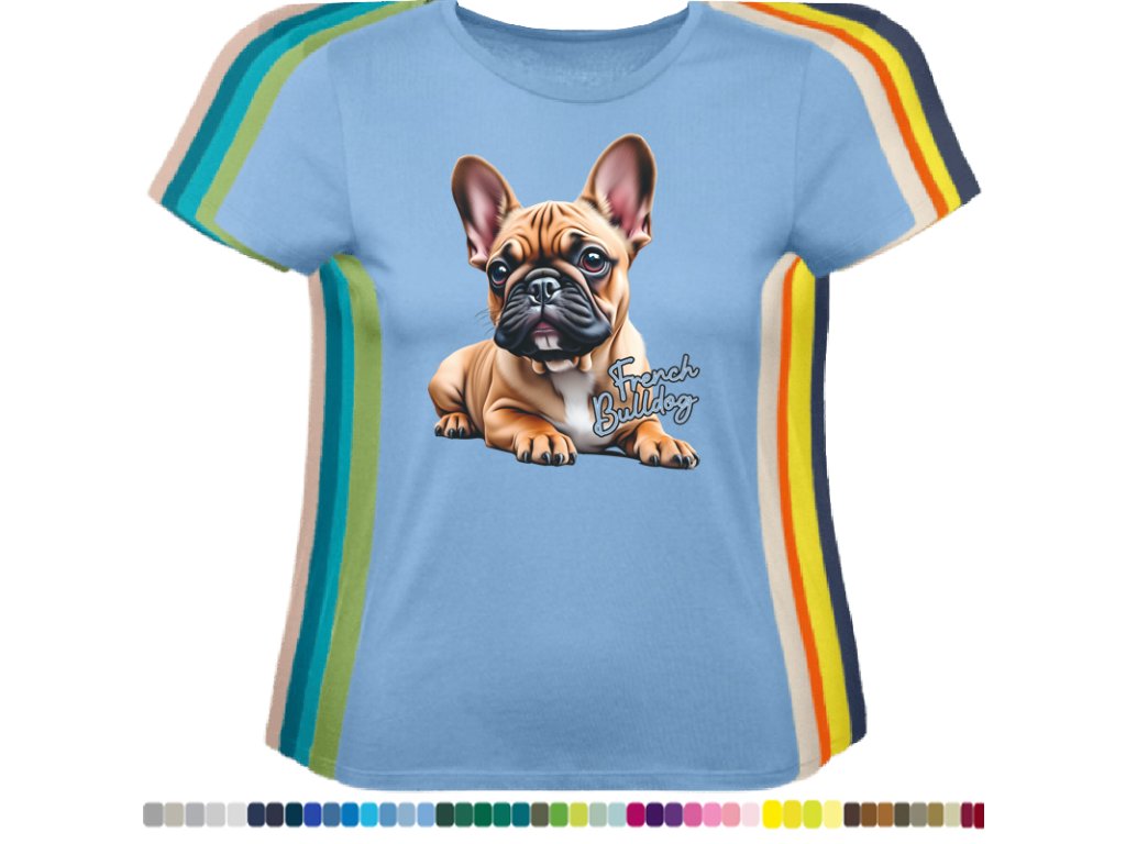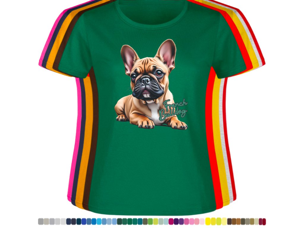 DÁMSKÉ LEVNÉ BAVLNĚNÉ TRIČKO S DIGITÁLNÍM POTISKEM PSA FRANCOUZSKÝ BULDOČEK