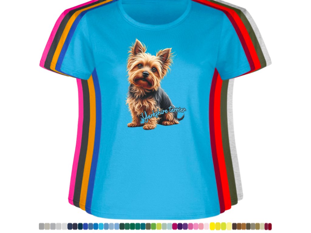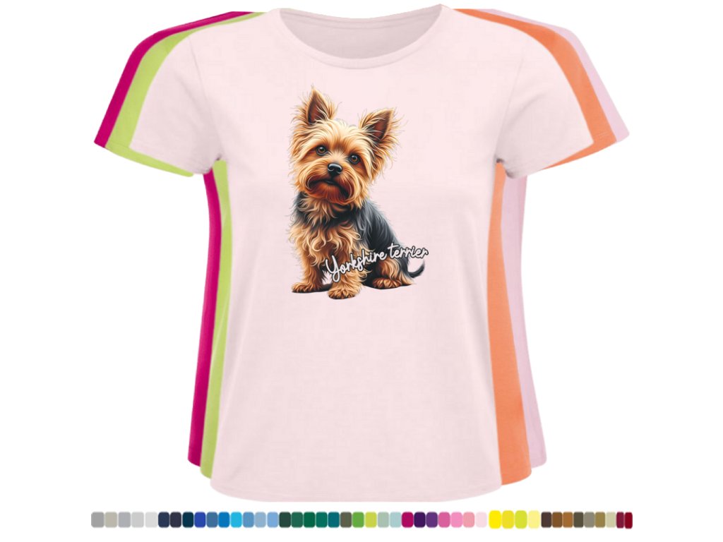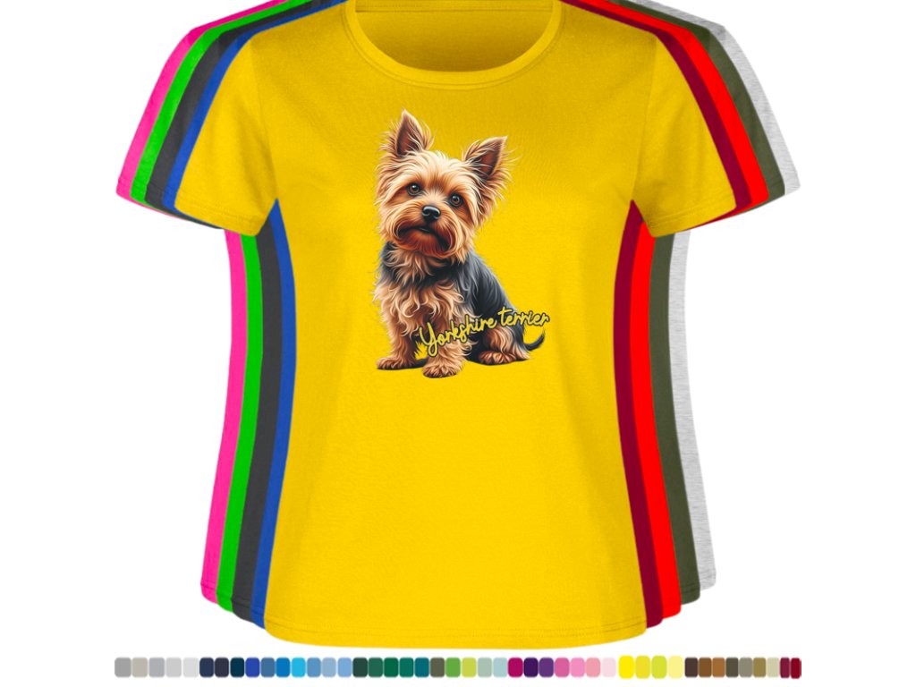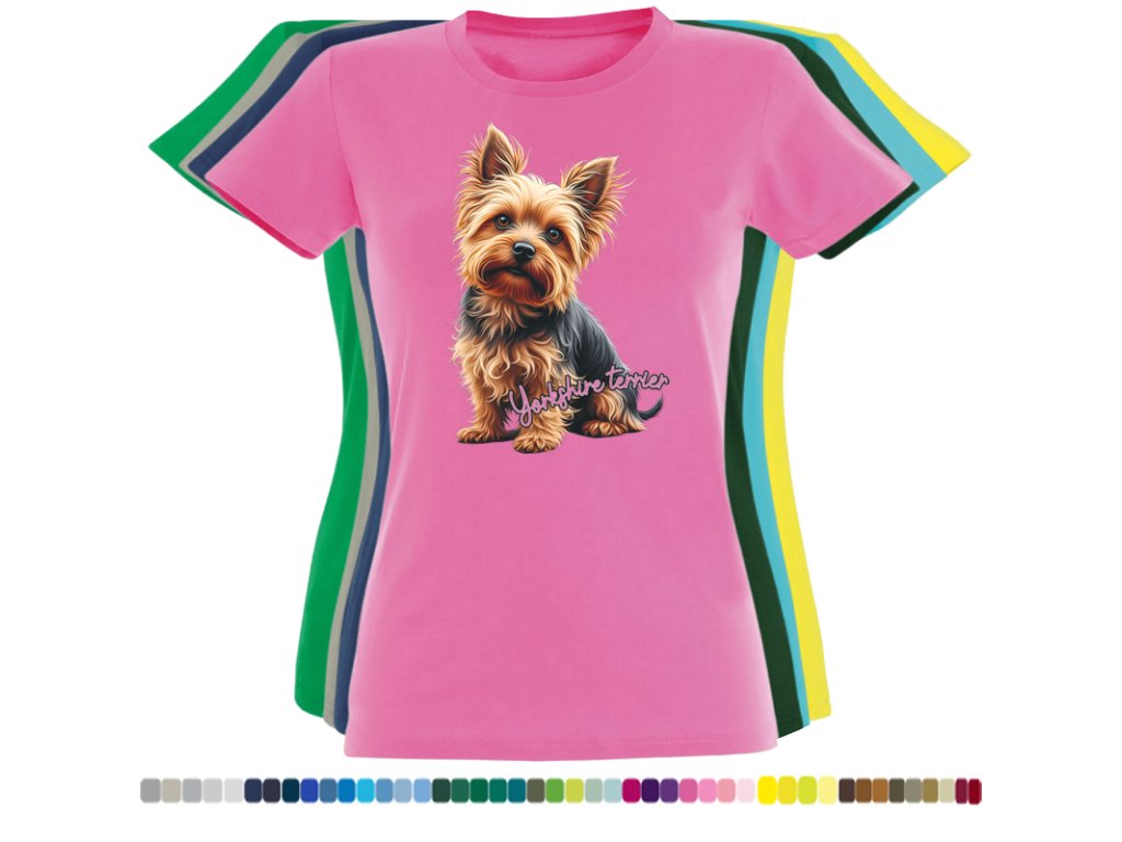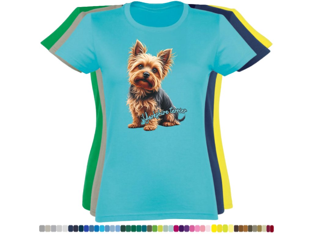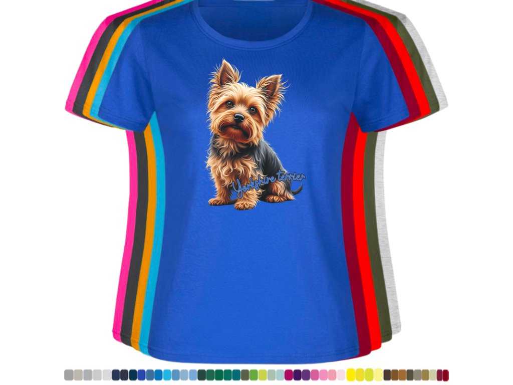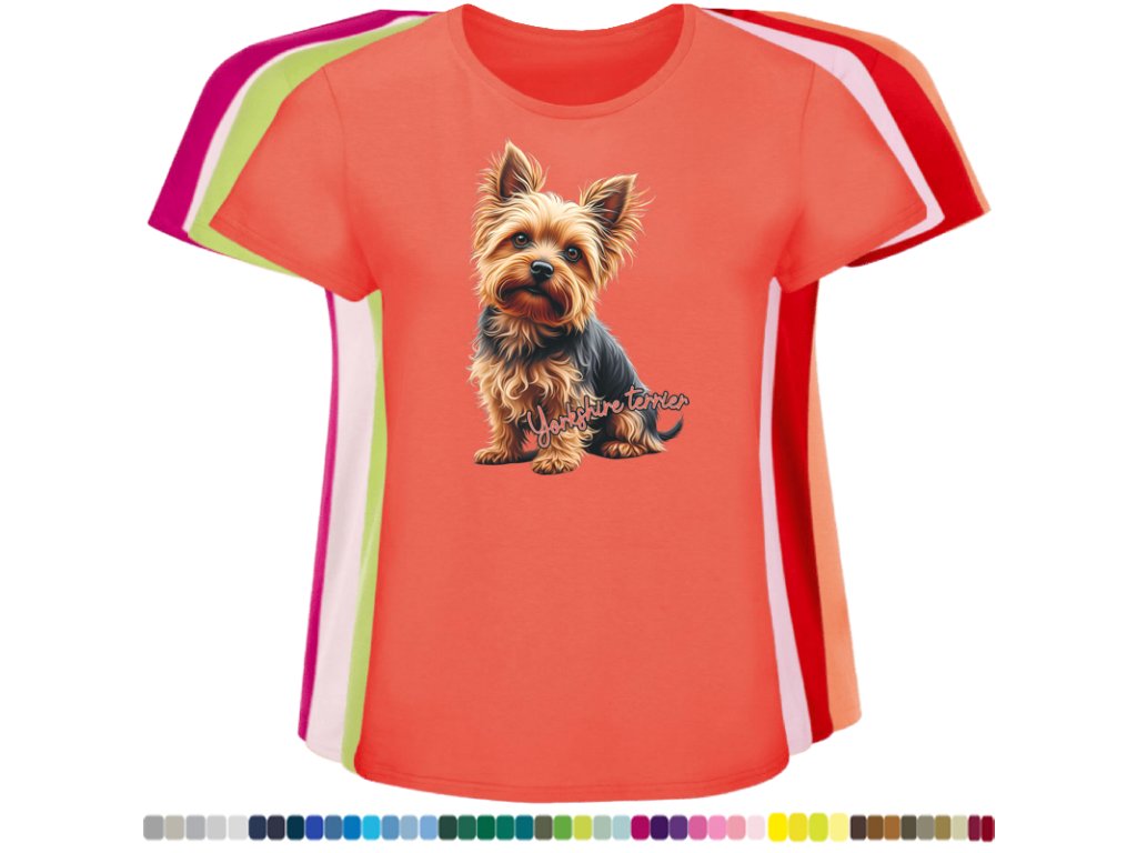 DÁMSKÉ LEVNÉ BAVLNĚNÉ TRIČKO S DIGITÁLNÍM POTISKEM PSA JORKŠÍR