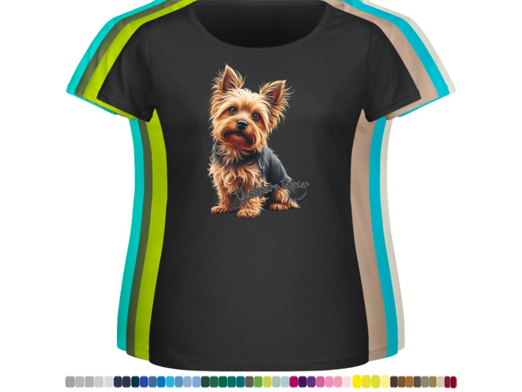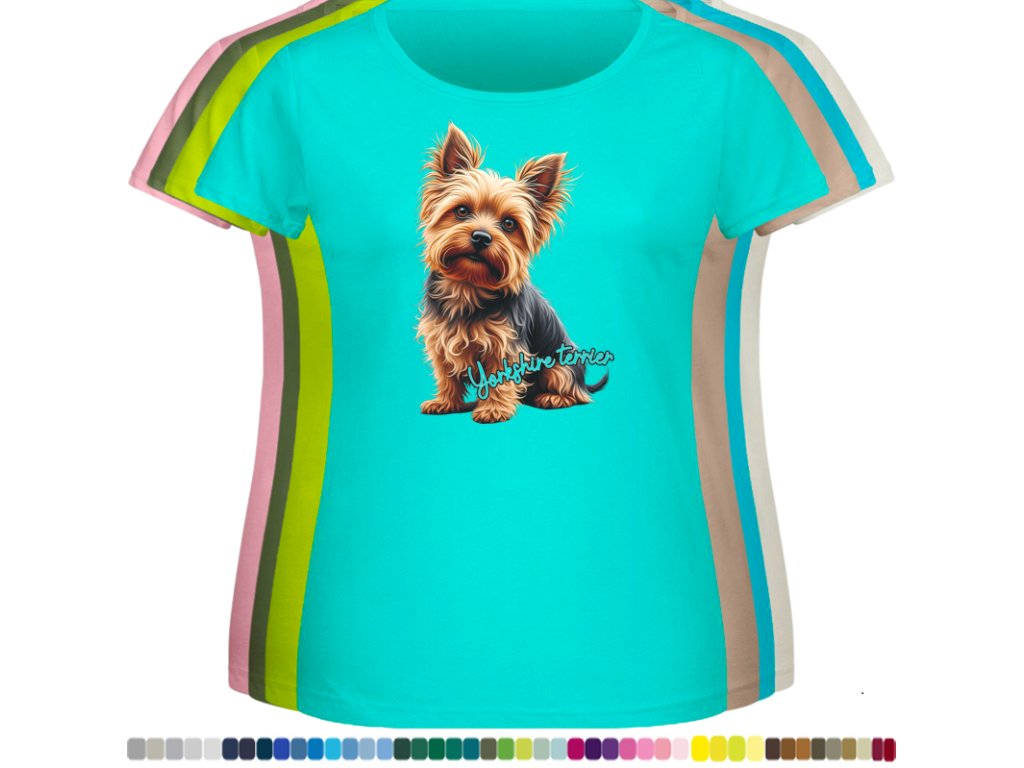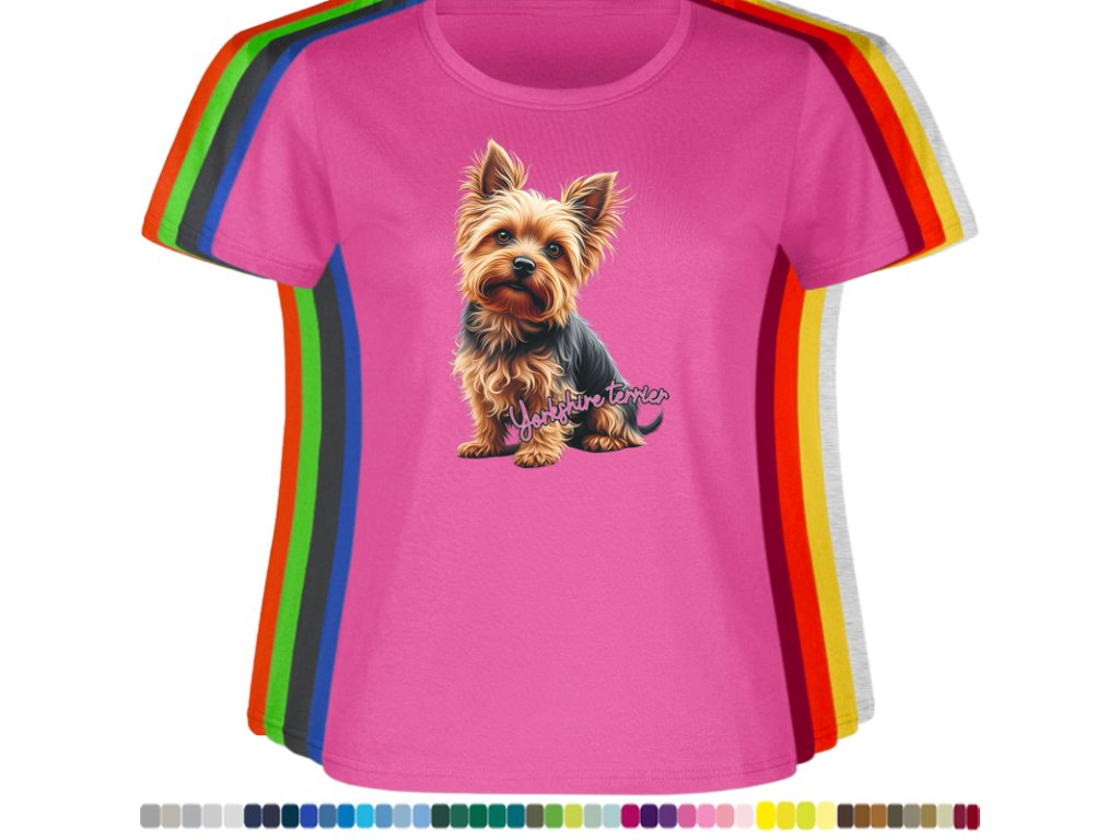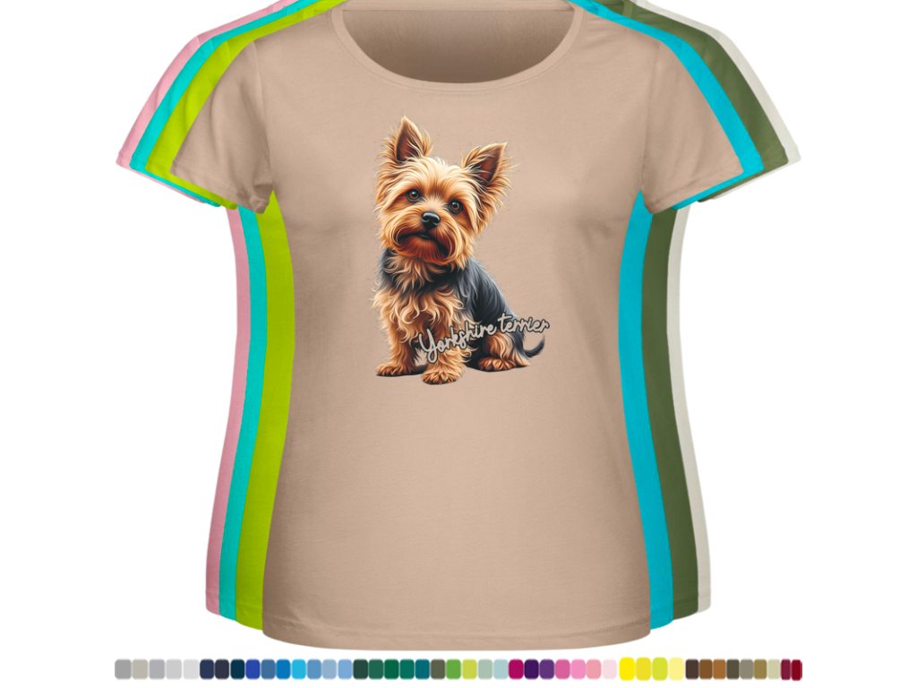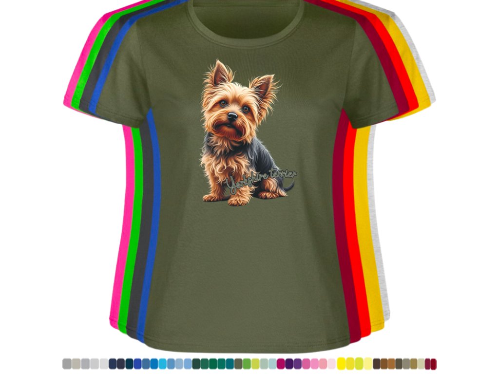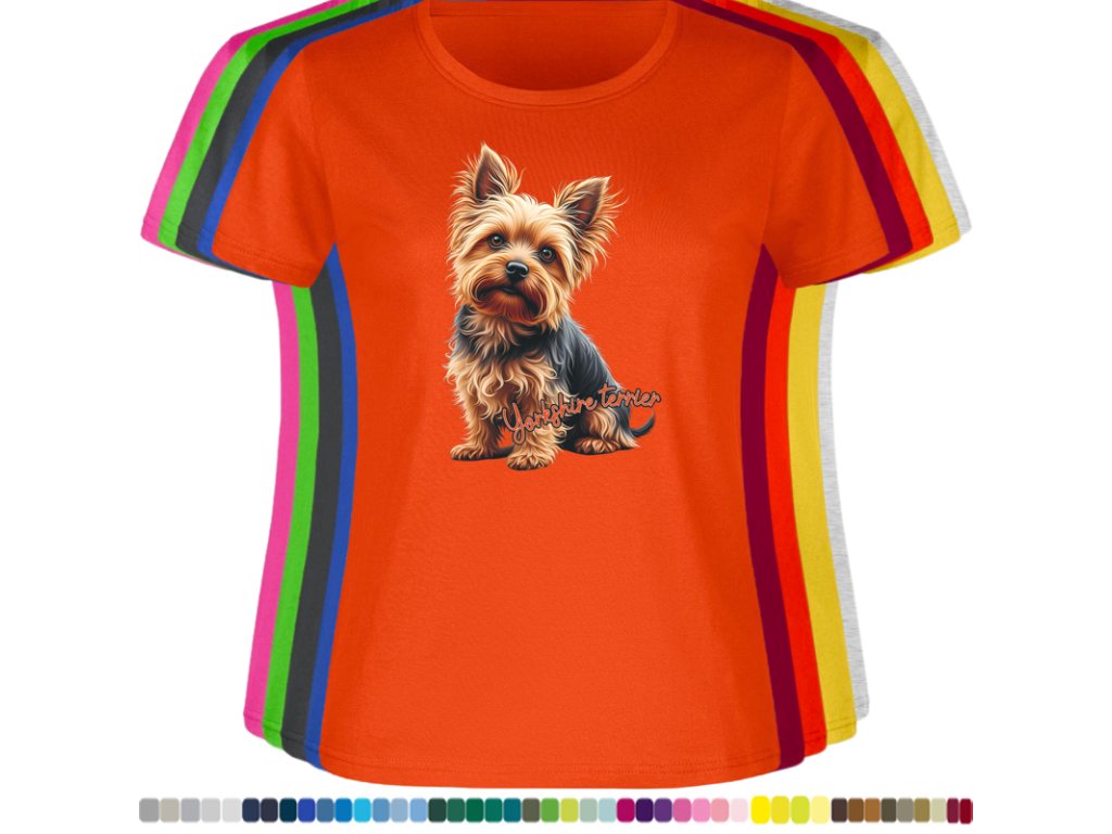 DÁMSKÉ LEVNÉ BAVLNĚNÉ TRIČKO S DIGITÁLNÍM POTISKEM PSA JORKŠÍR