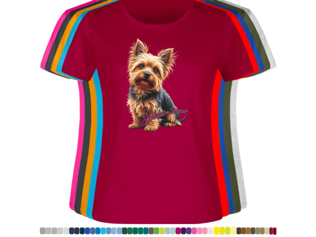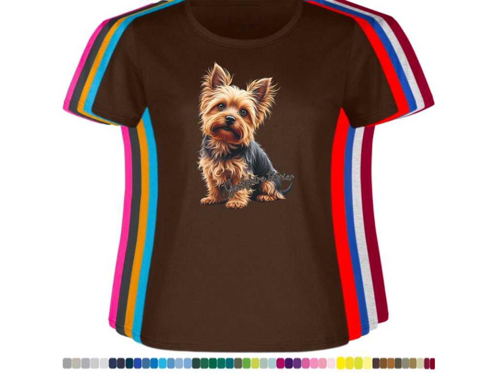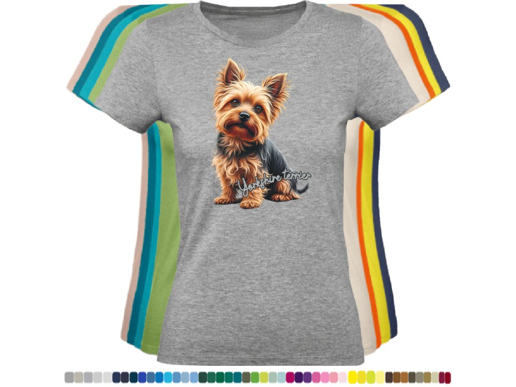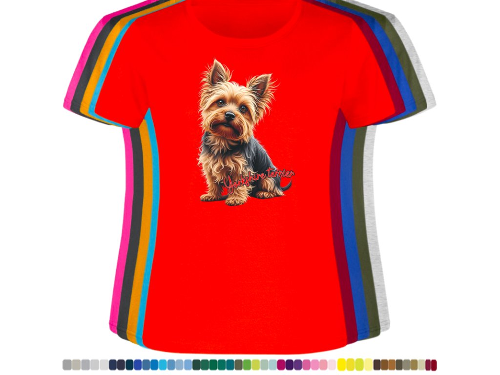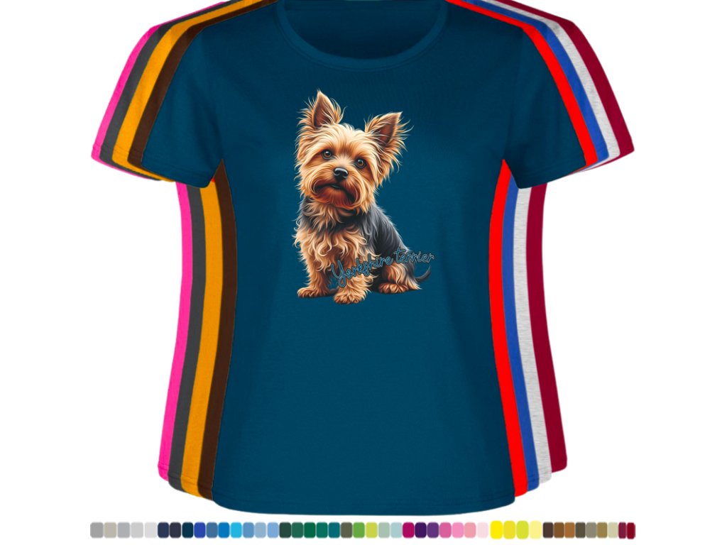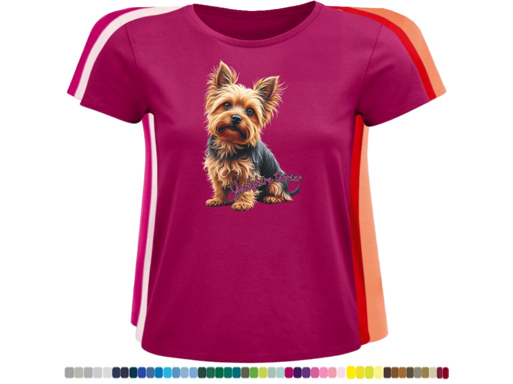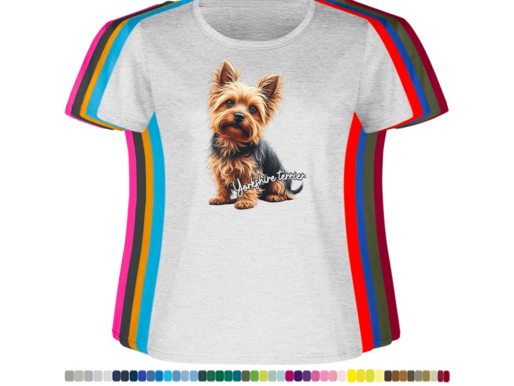 DÁMSKÉ LEVNÉ BAVLNĚNÉ TRIČKO S DIGITÁLNÍM POTISKEM PSA JORKŠÍR