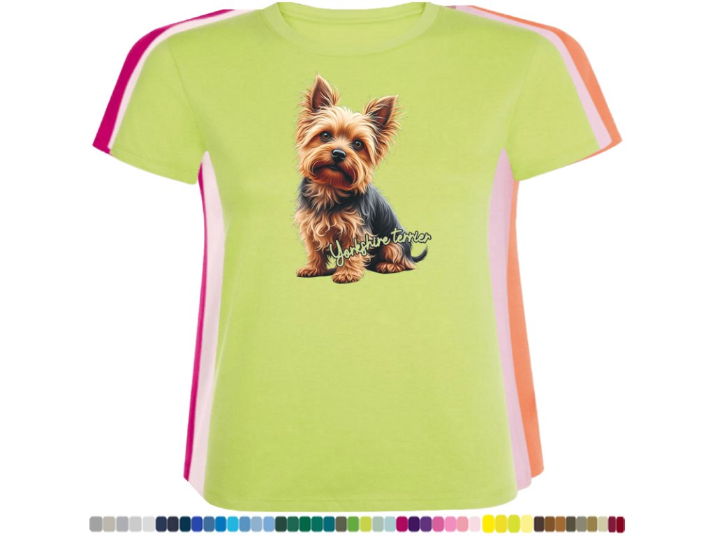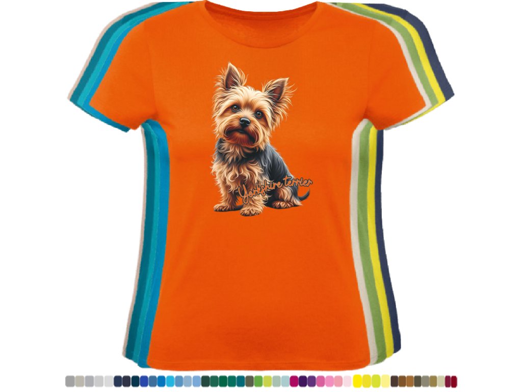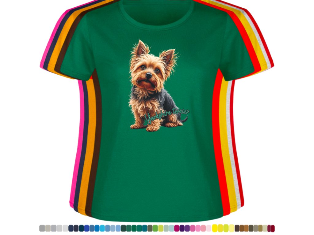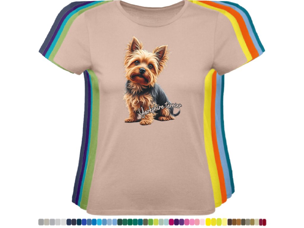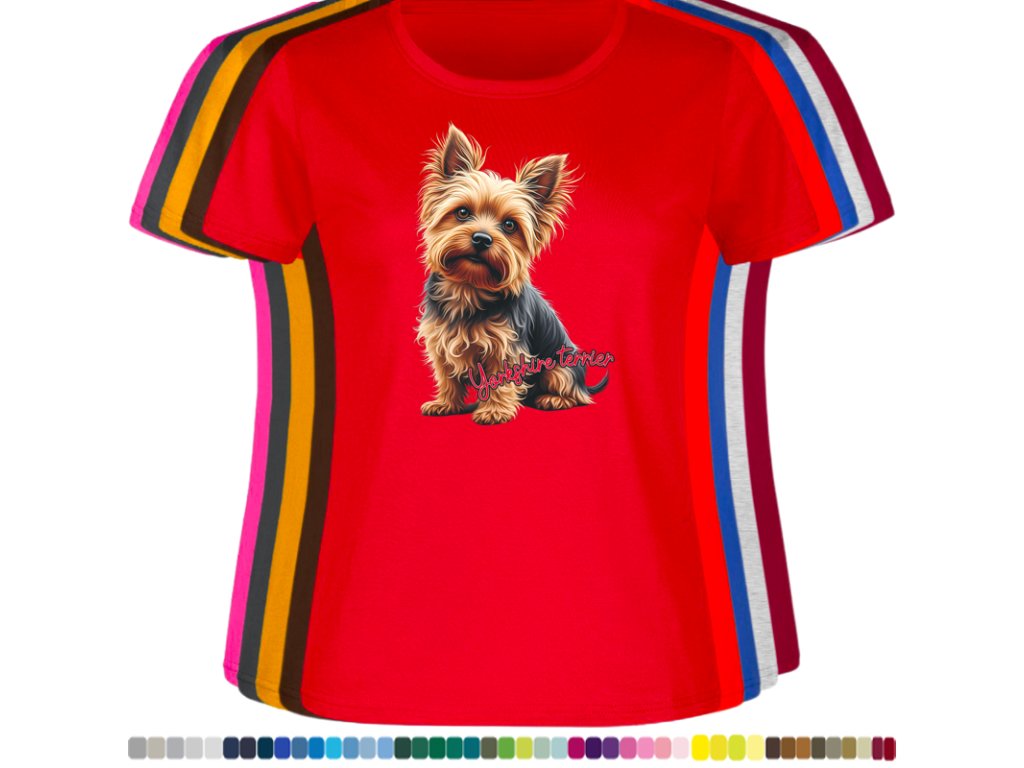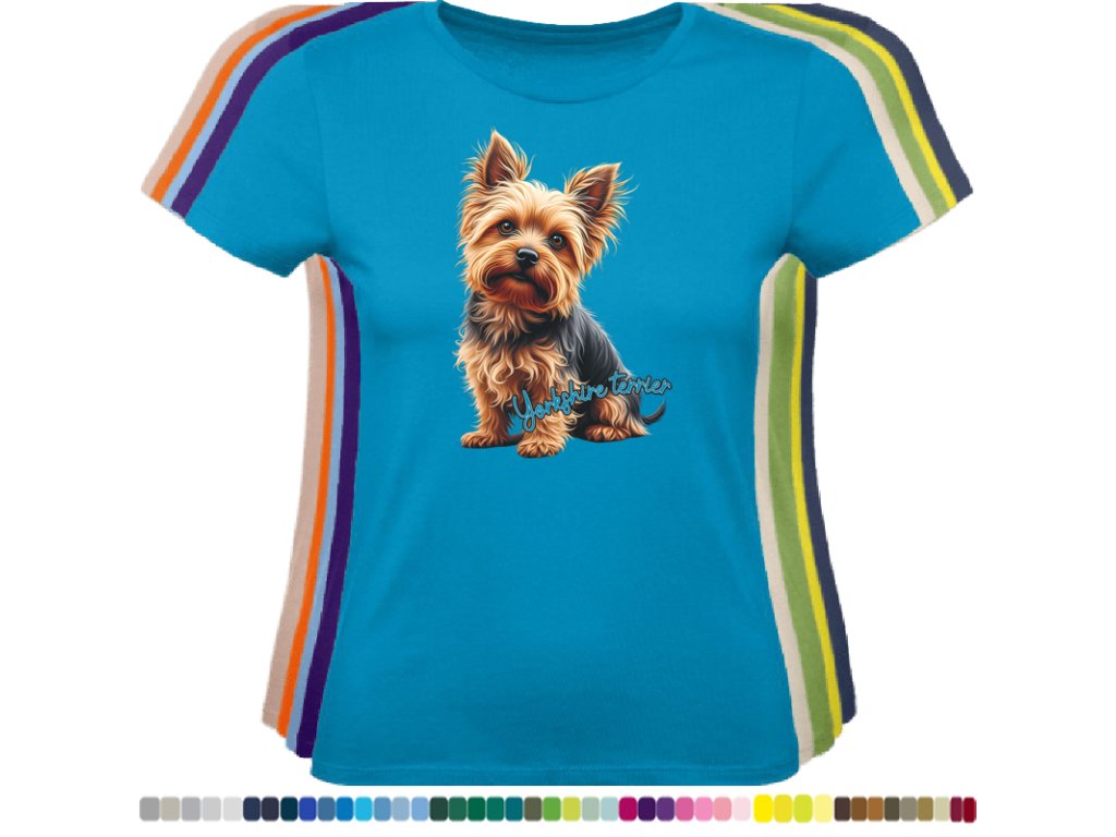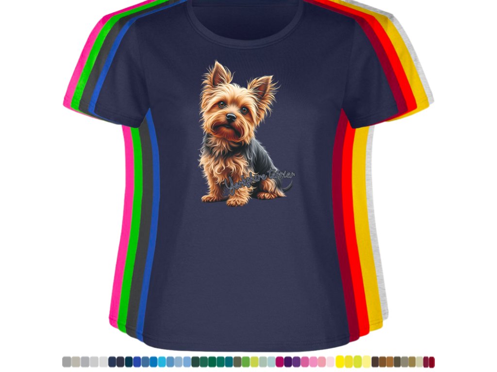 DÁMSKÉ LEVNÉ BAVLNĚNÉ TRIČKO S DIGITÁLNÍM POTISKEM PSA JORKŠÍR