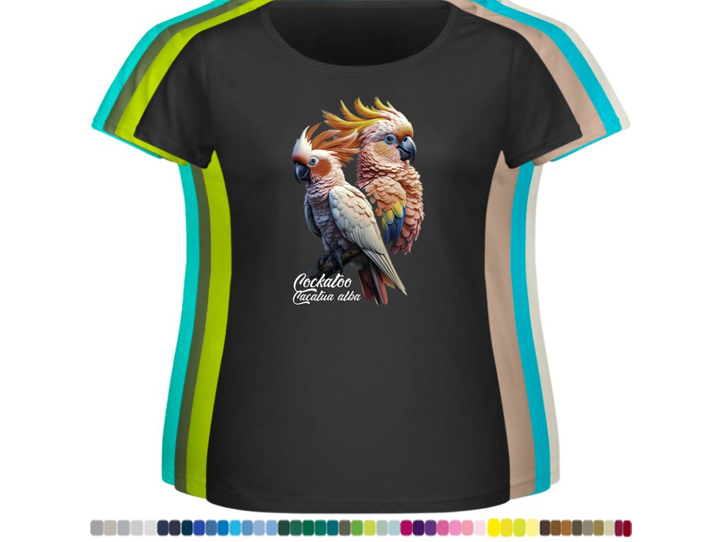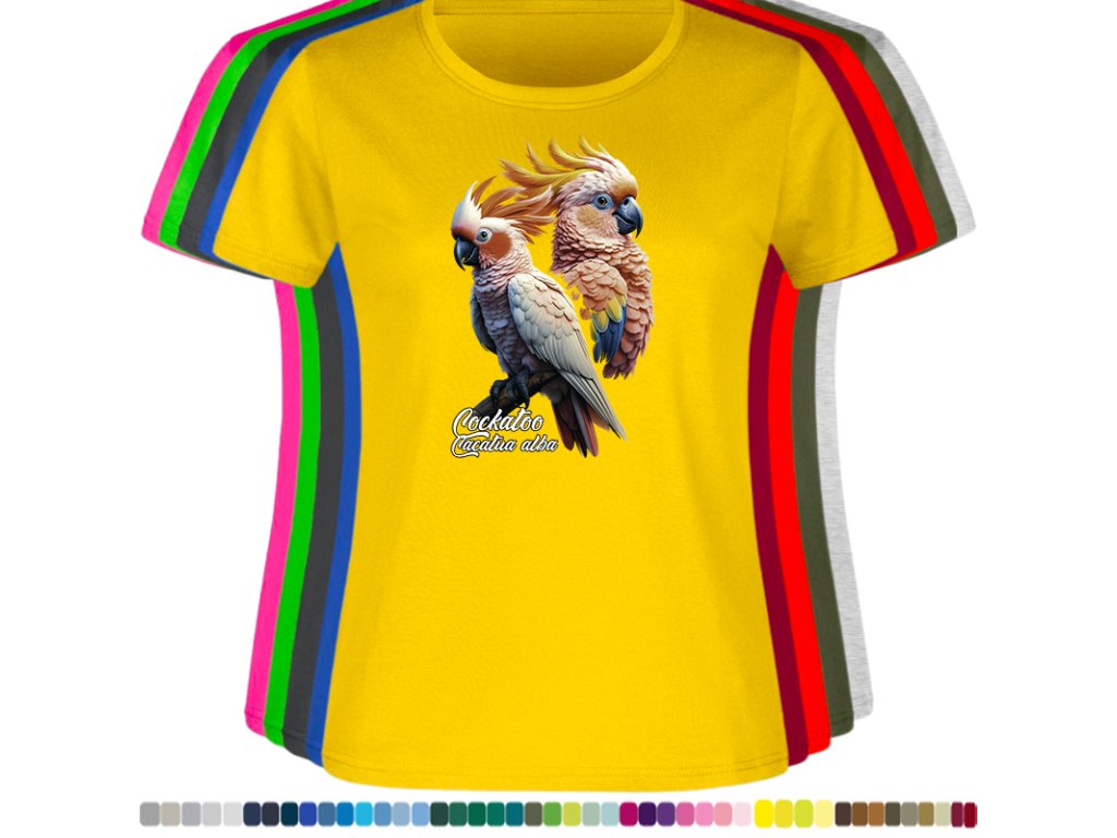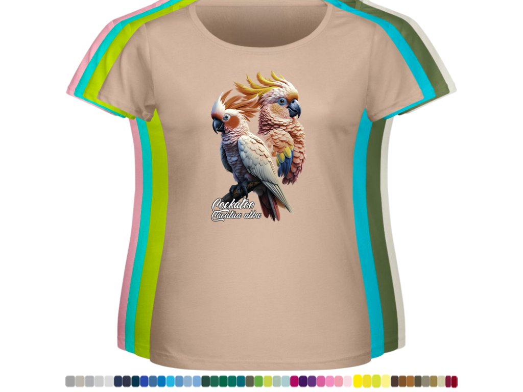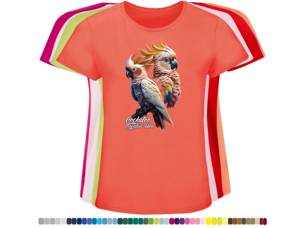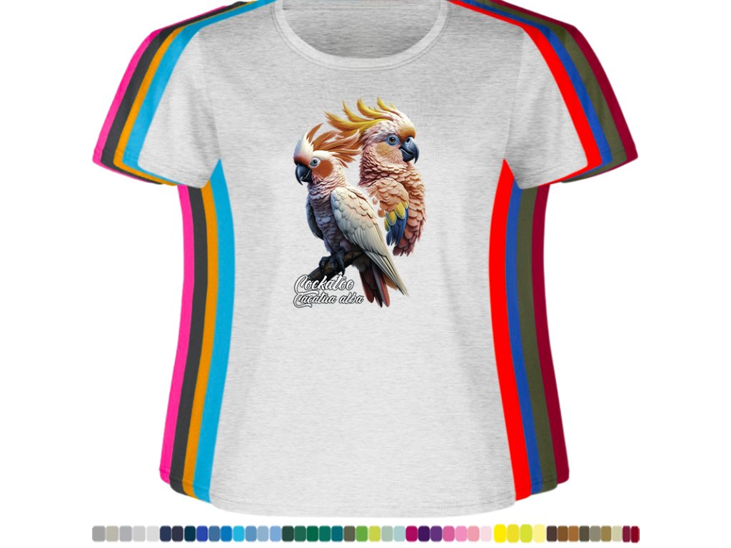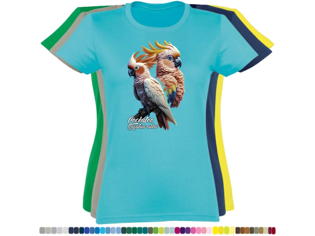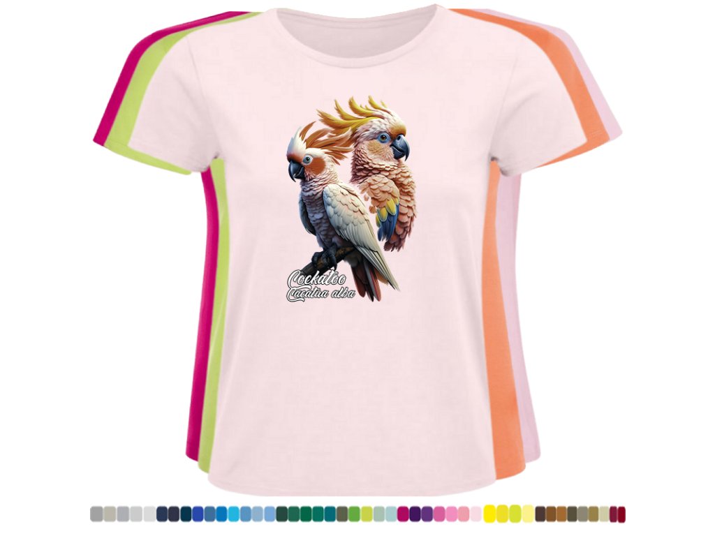 Dámské levné bavlněné tričko s digitálním potiskem Kakadu bílý - ptačí říše