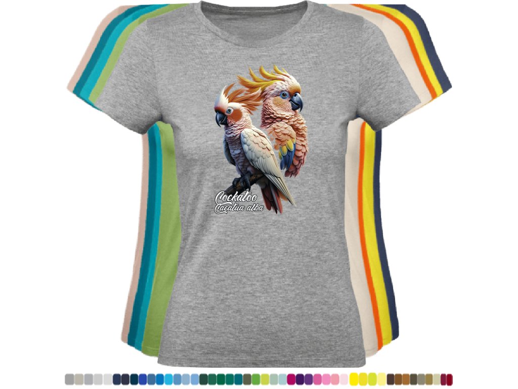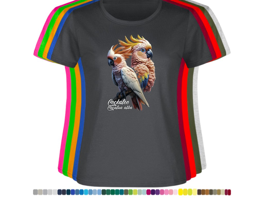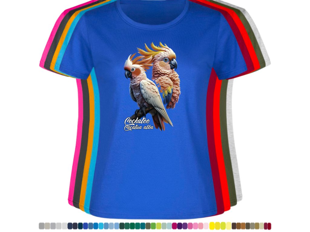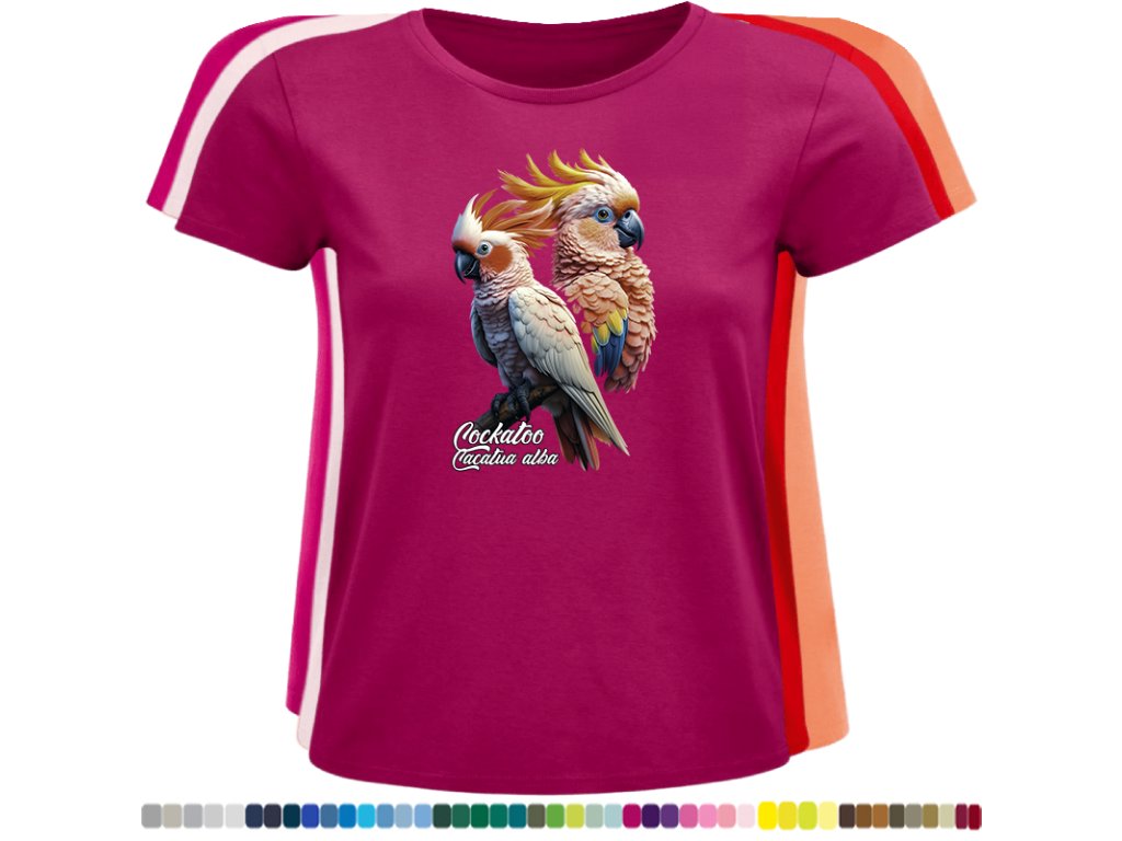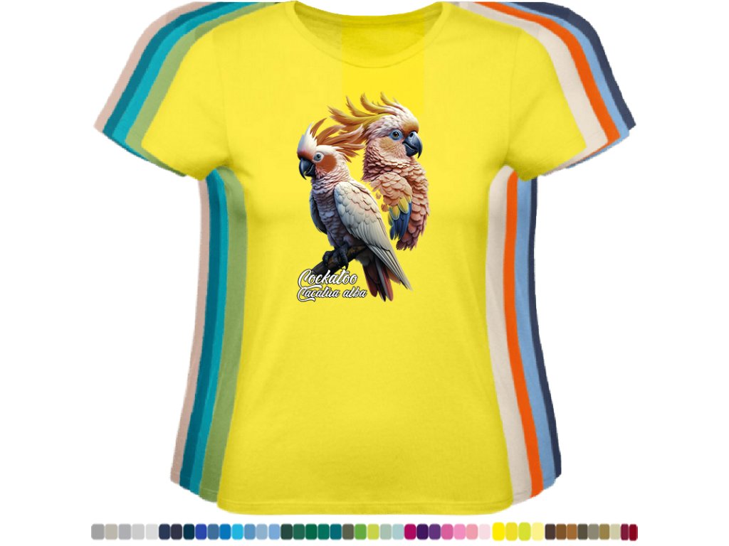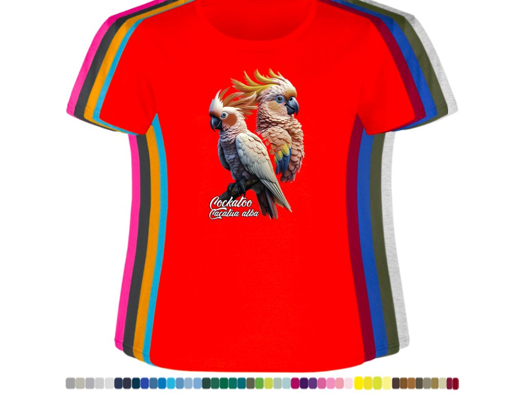 Dámské levné bavlněné tričko s digitálním potiskem Kakadu bílý - ptačí říše