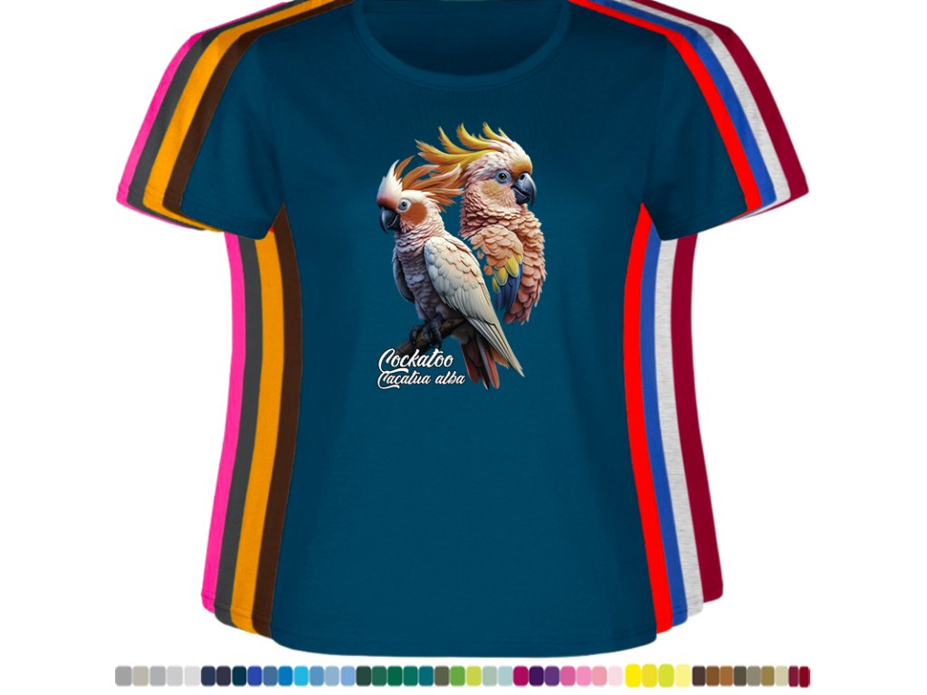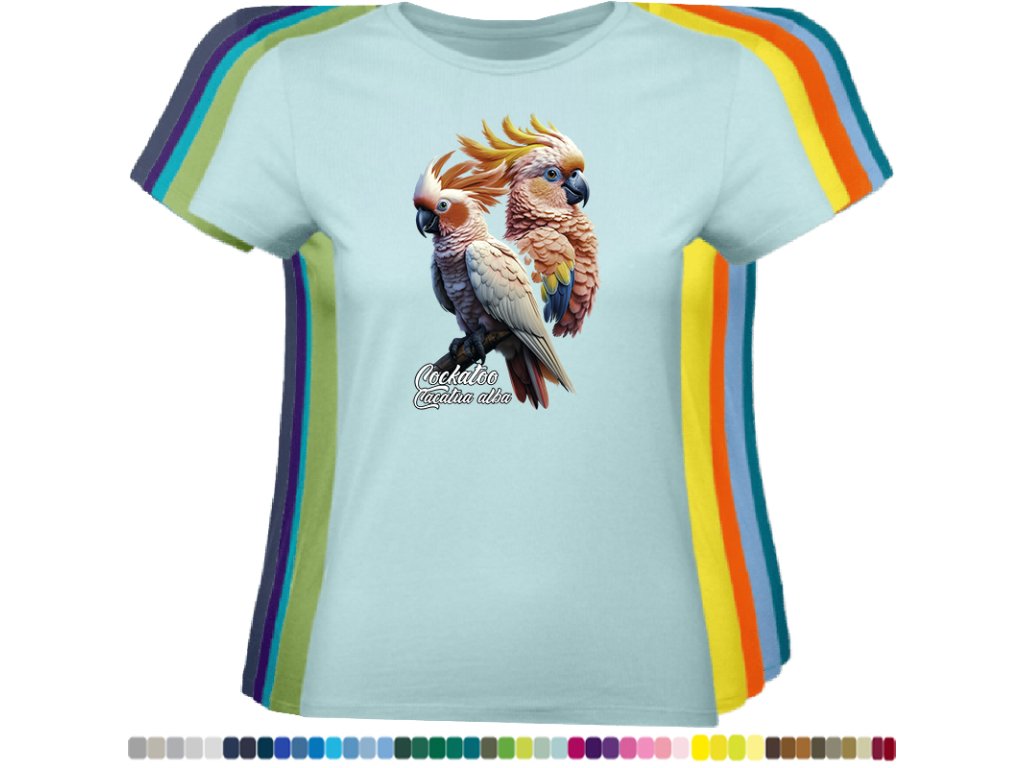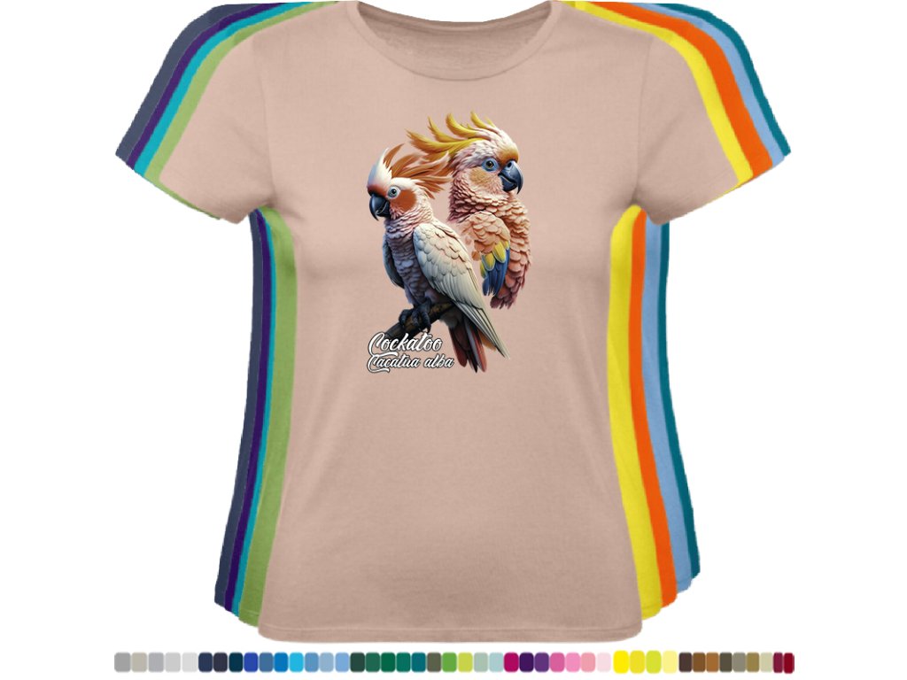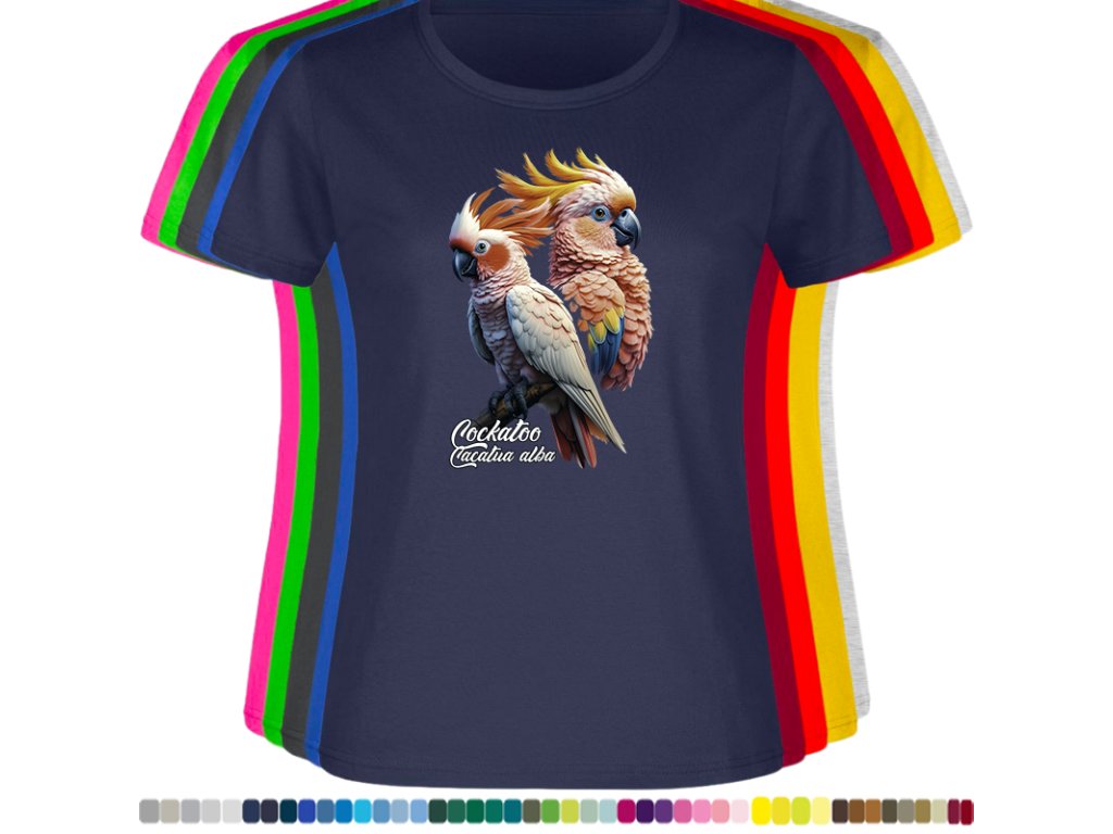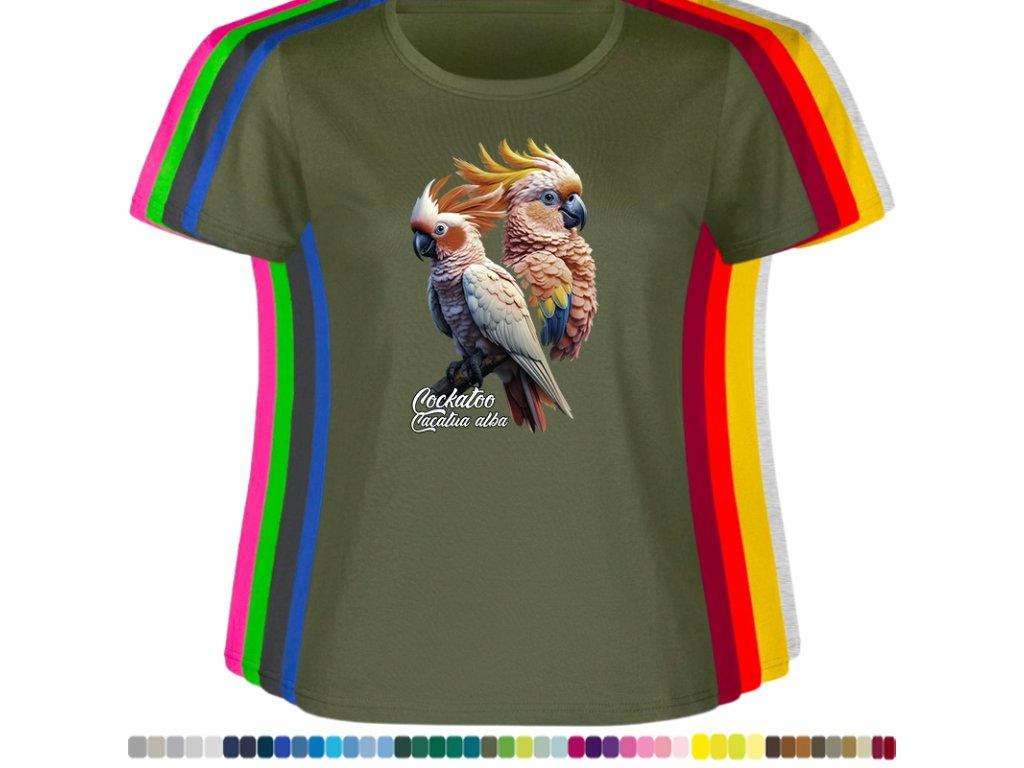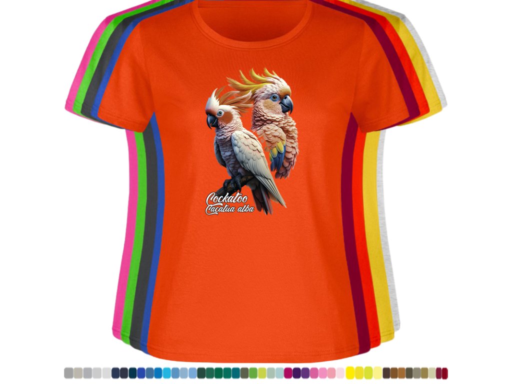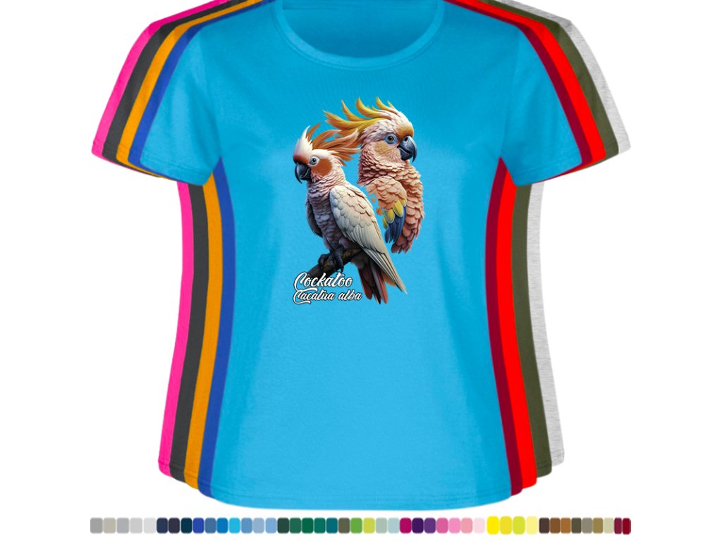 Dámské levné bavlněné tričko s digitálním potiskem Kakadu bílý - ptačí říše