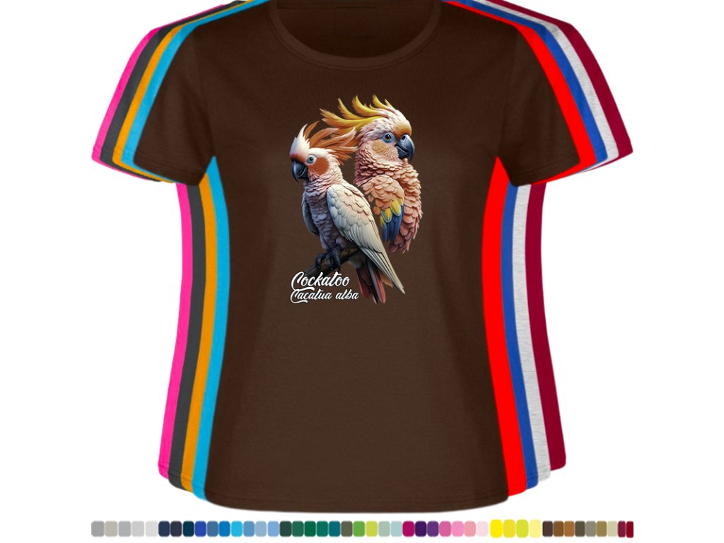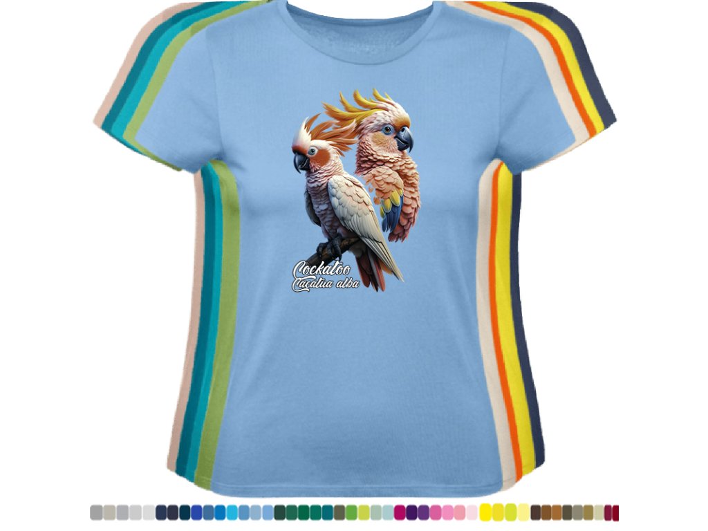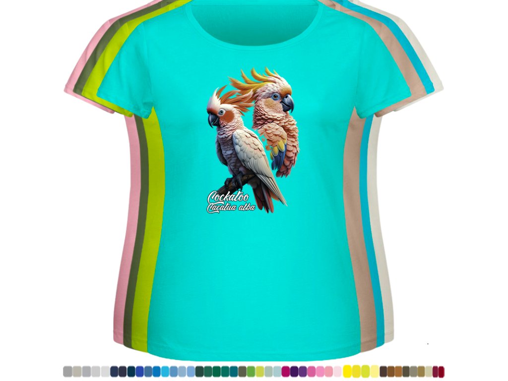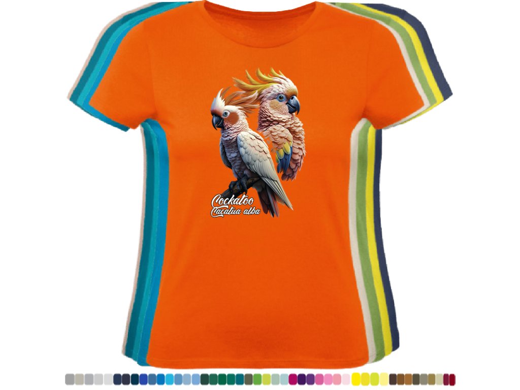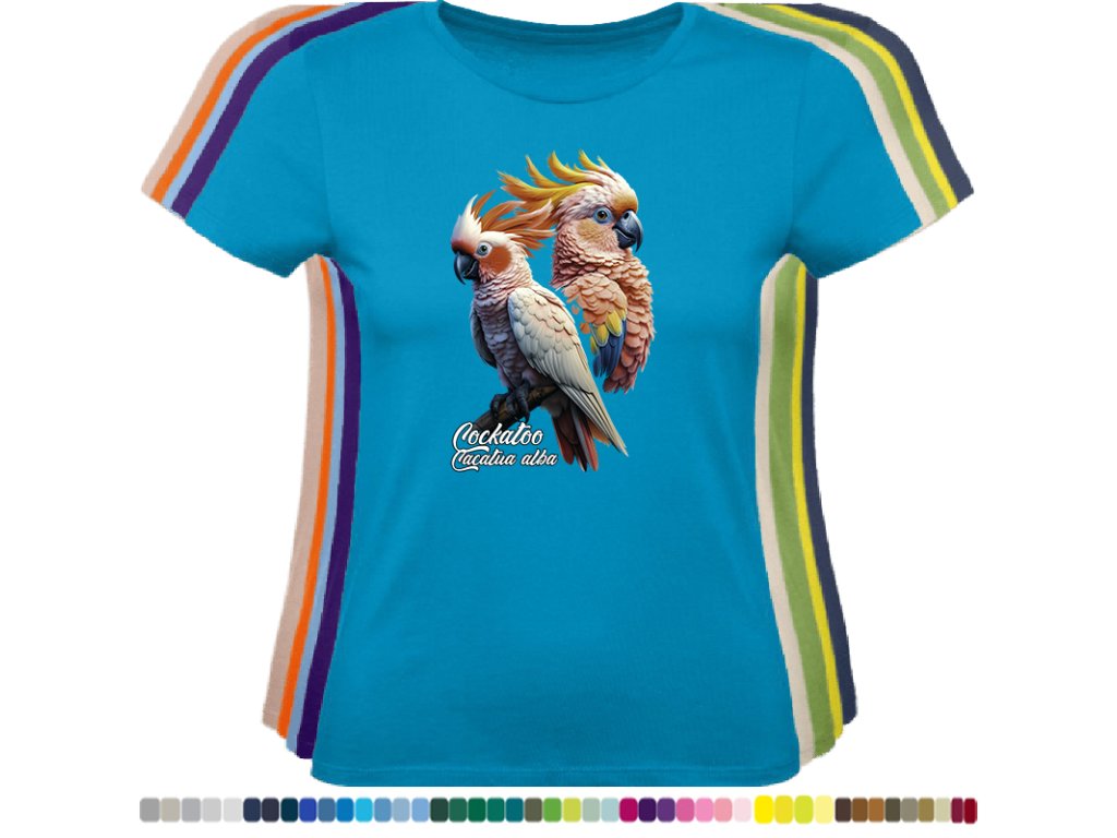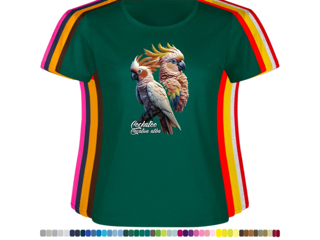 Dámské levné bavlněné tričko s digitálním potiskem Kakadu bílý - ptačí říše