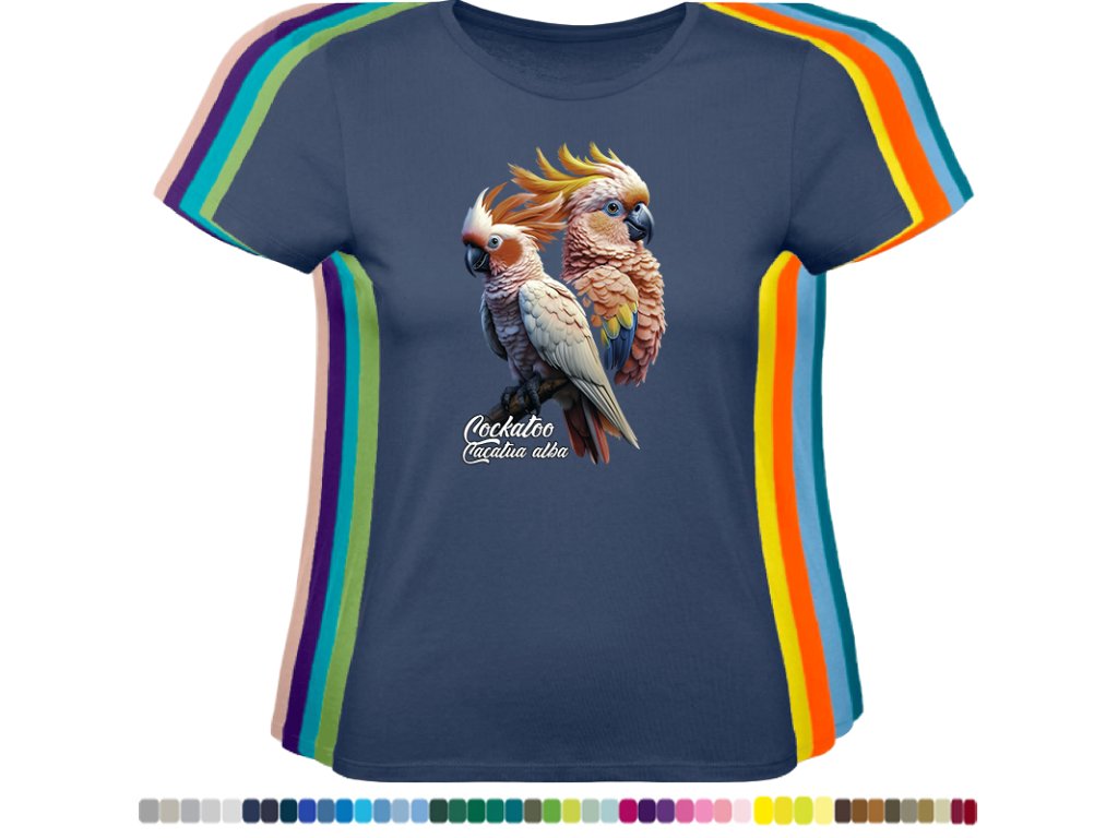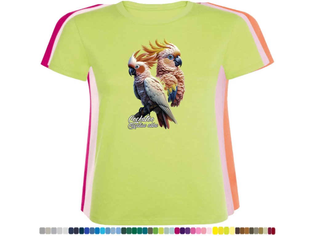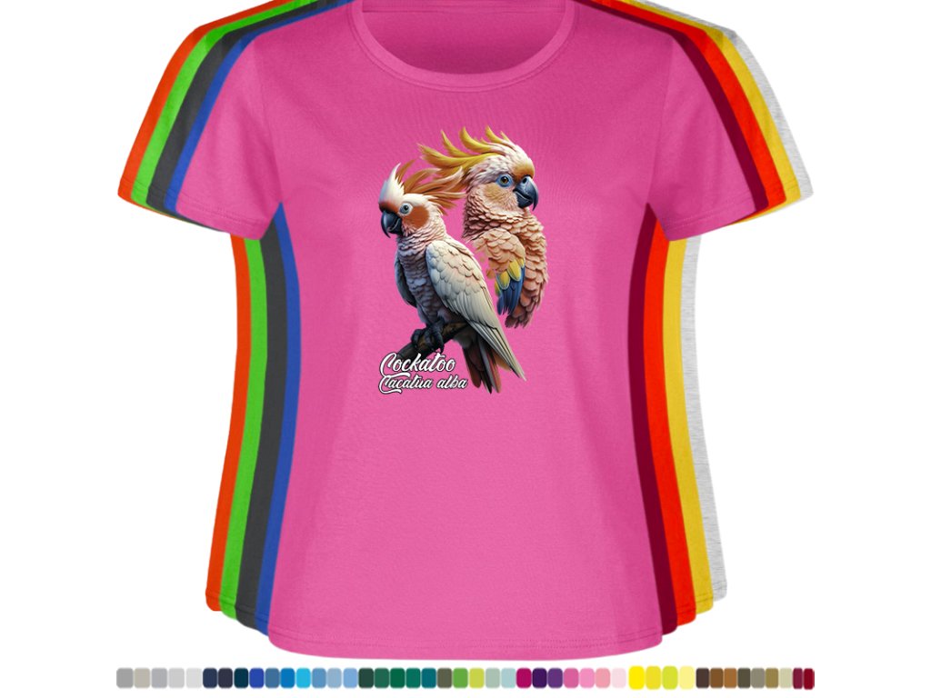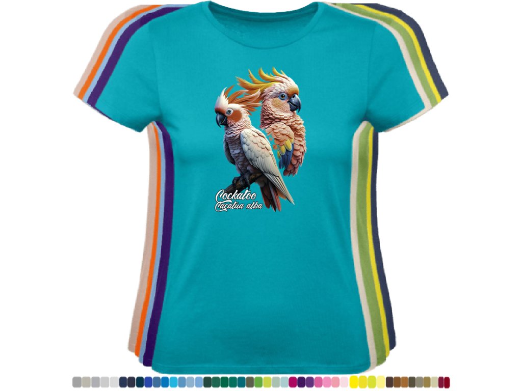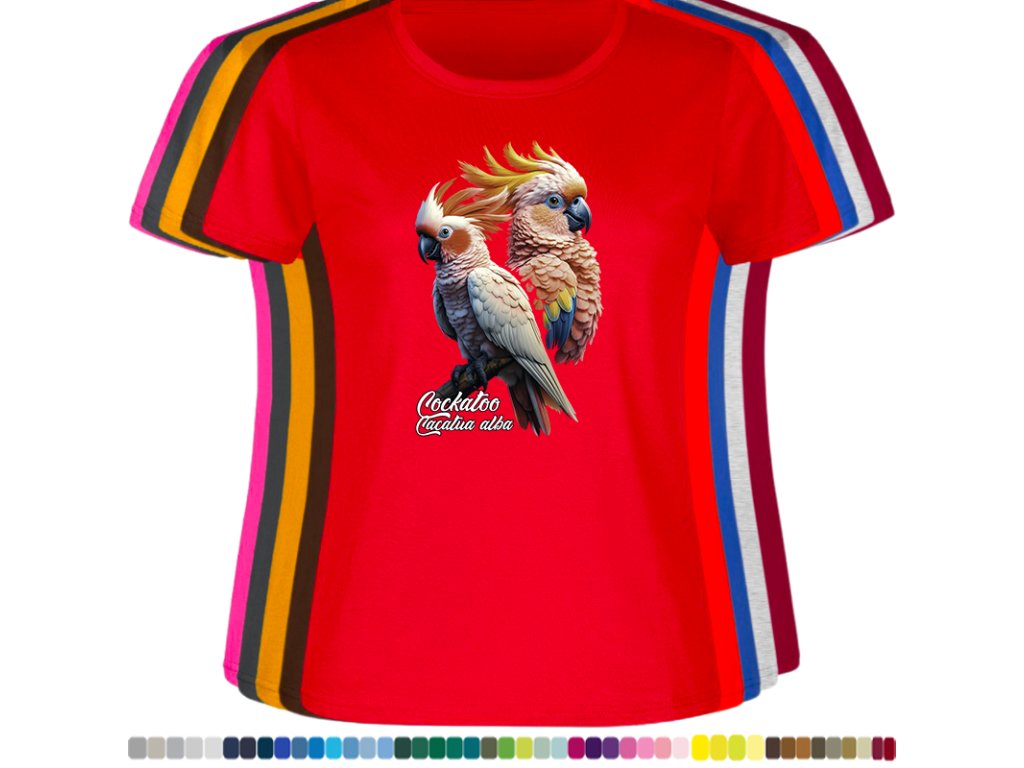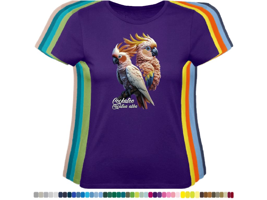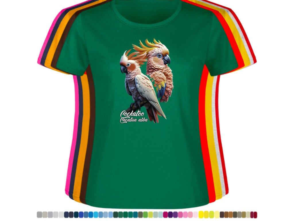 Dámské levné bavlněné tričko s digitálním potiskem Kakadu bílý - ptačí říše