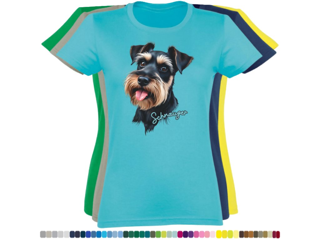 DÁMSKÉ LEVNÉ BAVLNĚNÉ TRIČKO S DIGITÁLNÍM POTISKEM PSA KNÍRAČ