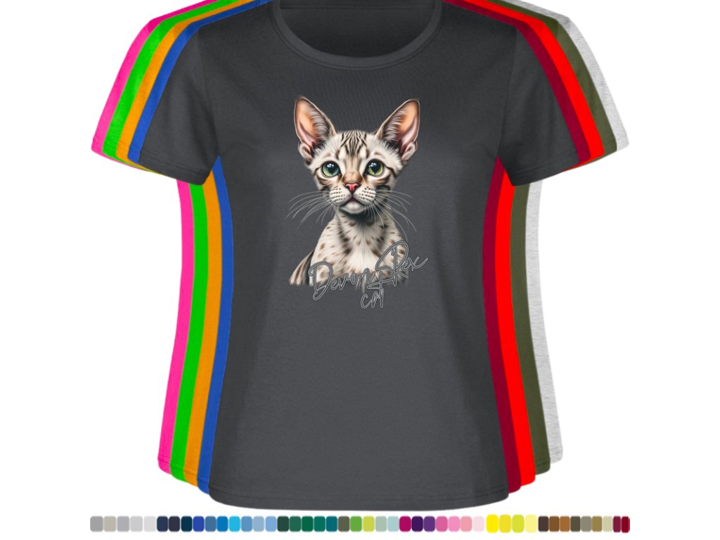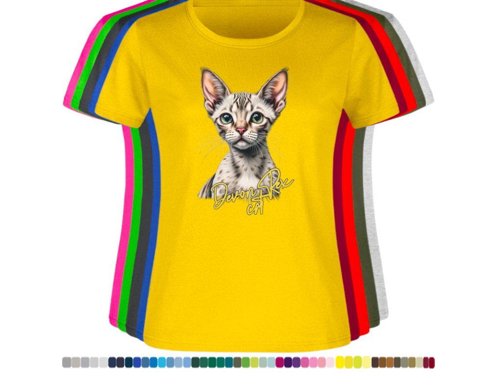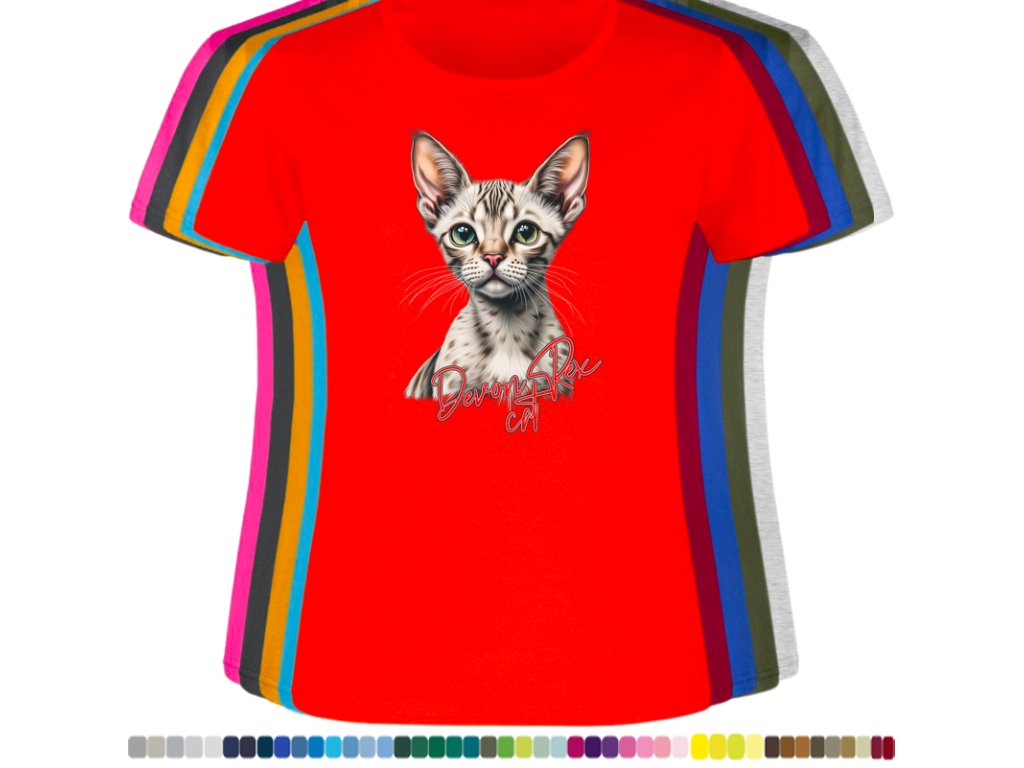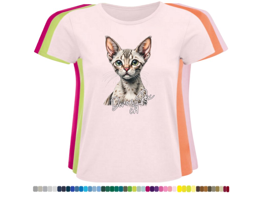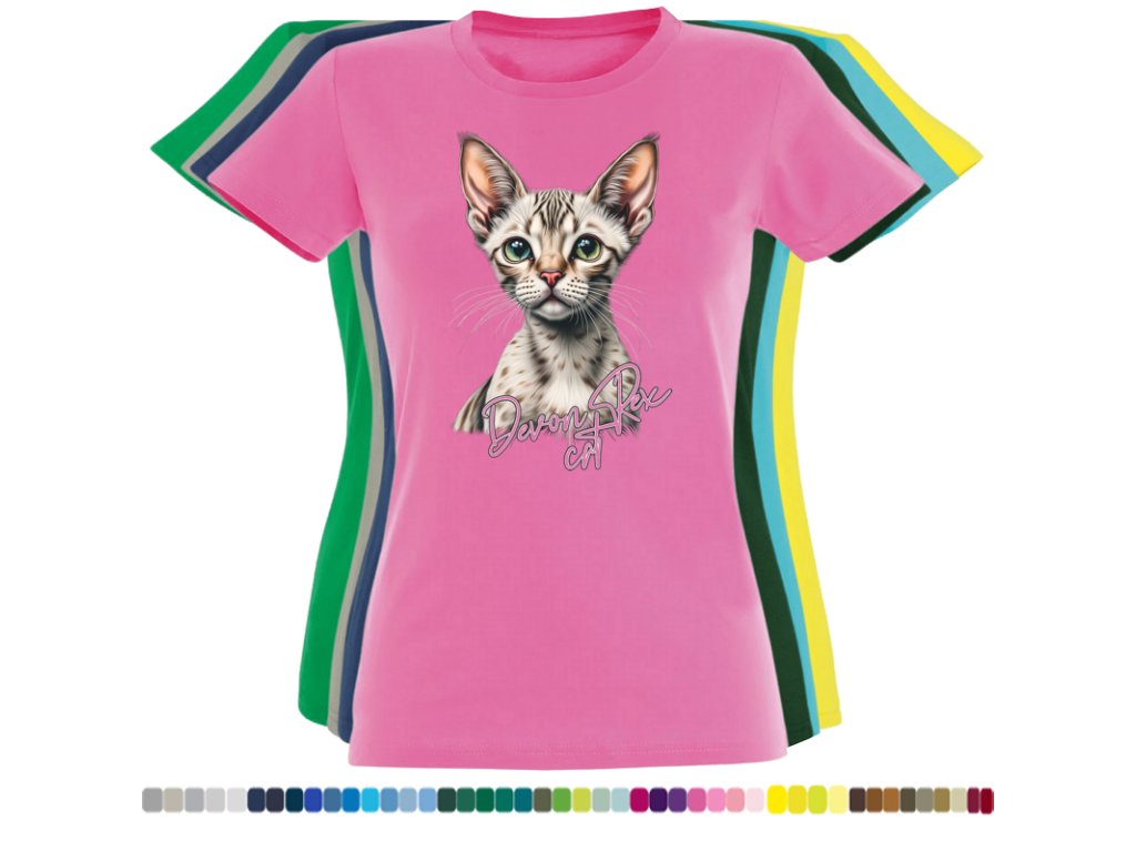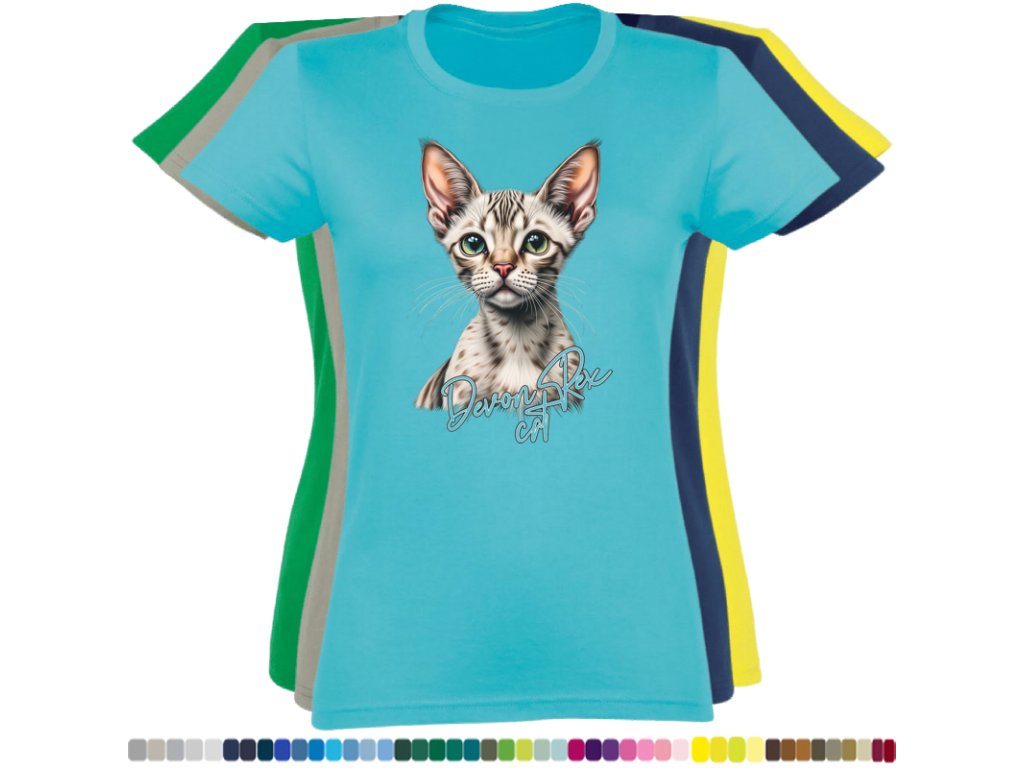 Dámské levné bavlněné tričko s digitálním potiskem Kočka Devon Rex