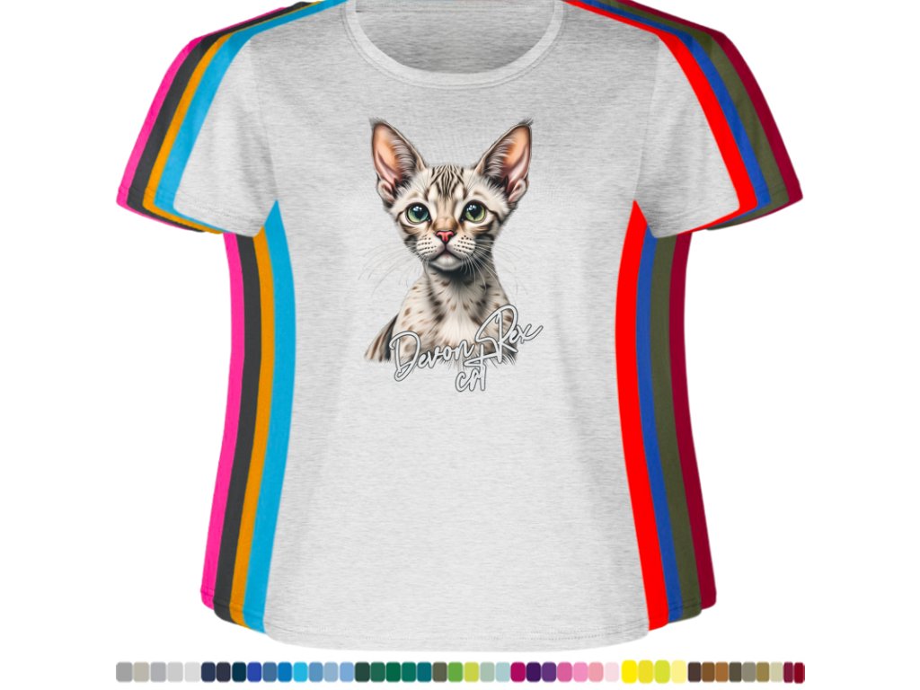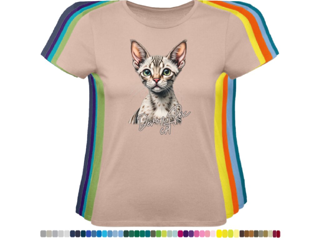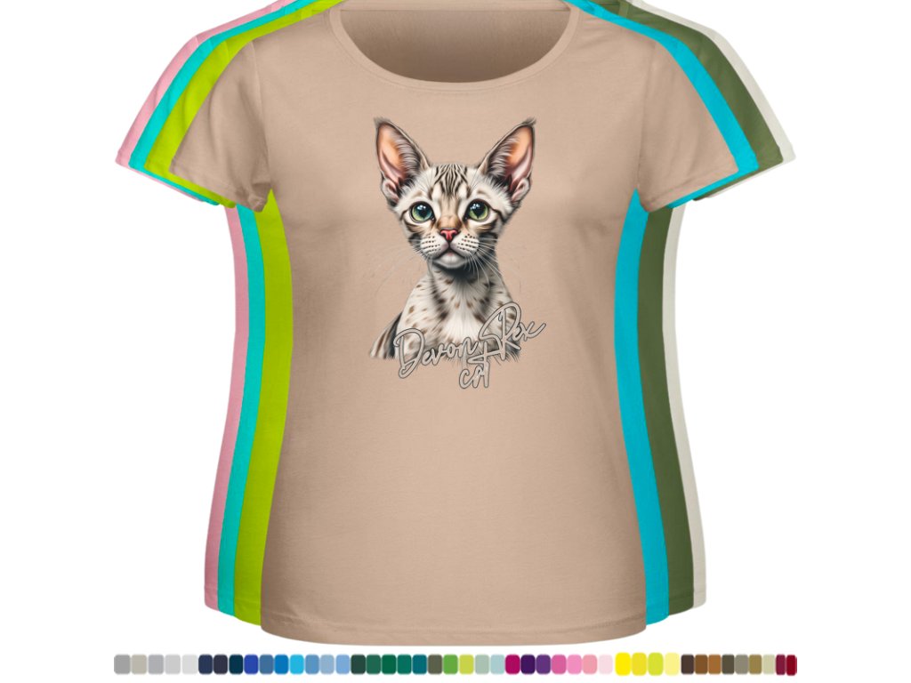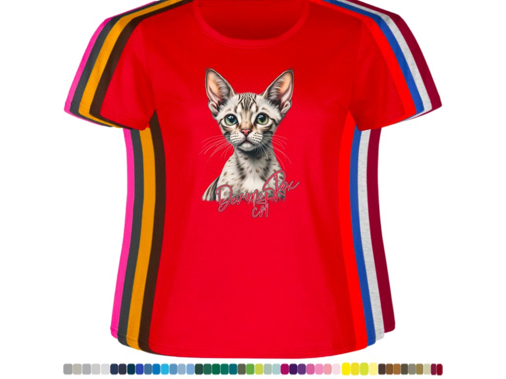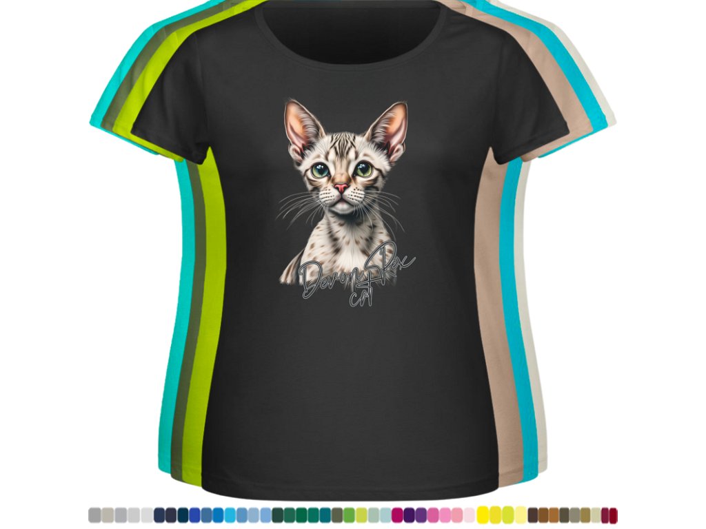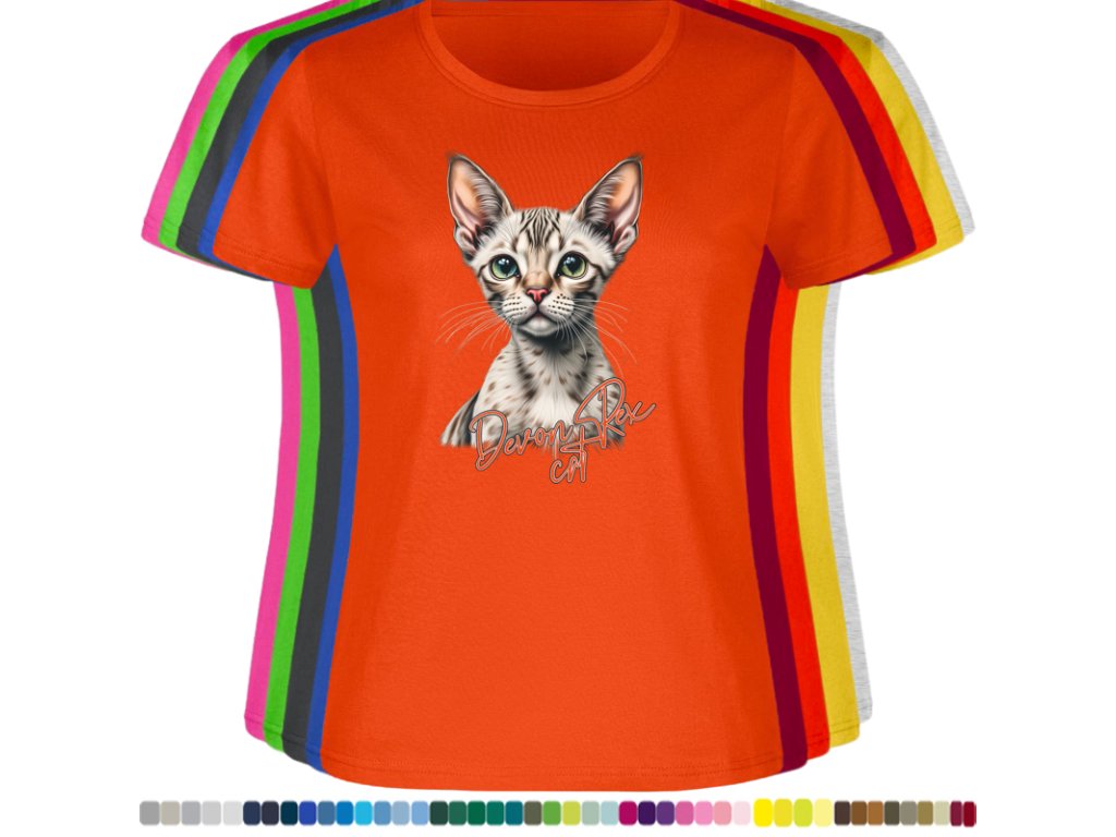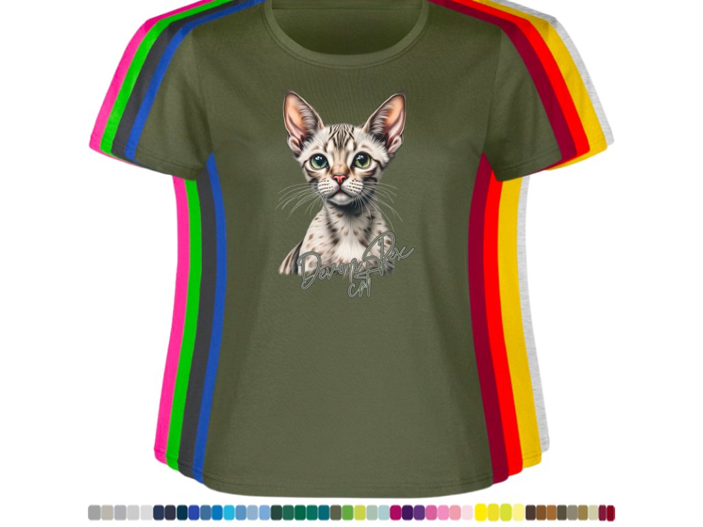 Dámské levné bavlněné tričko s digitálním potiskem Kočka Devon Rex