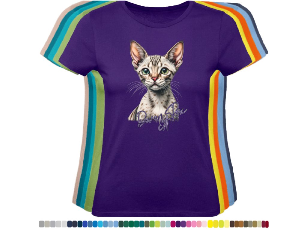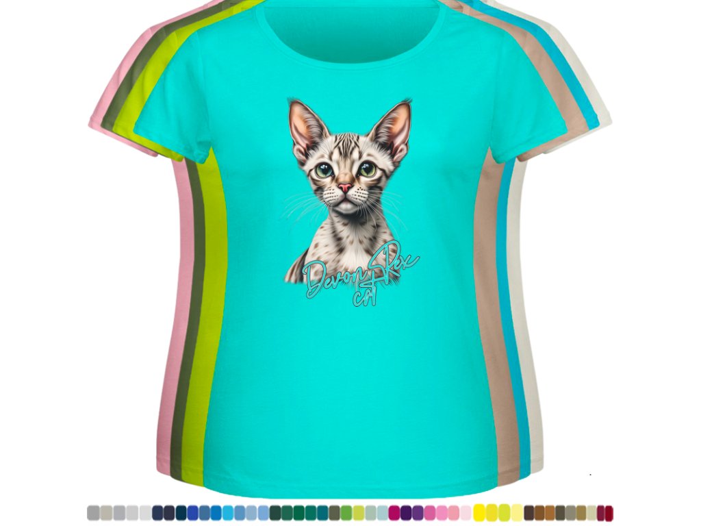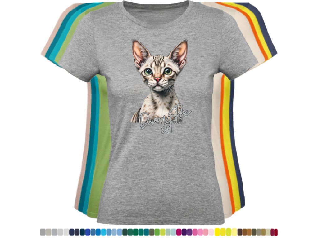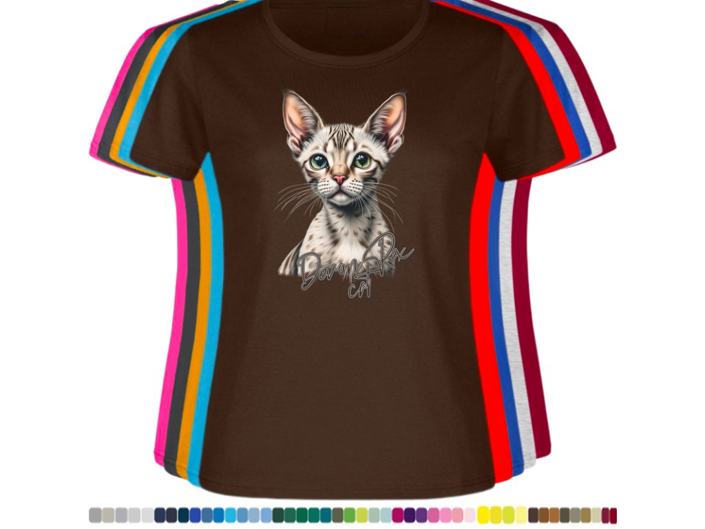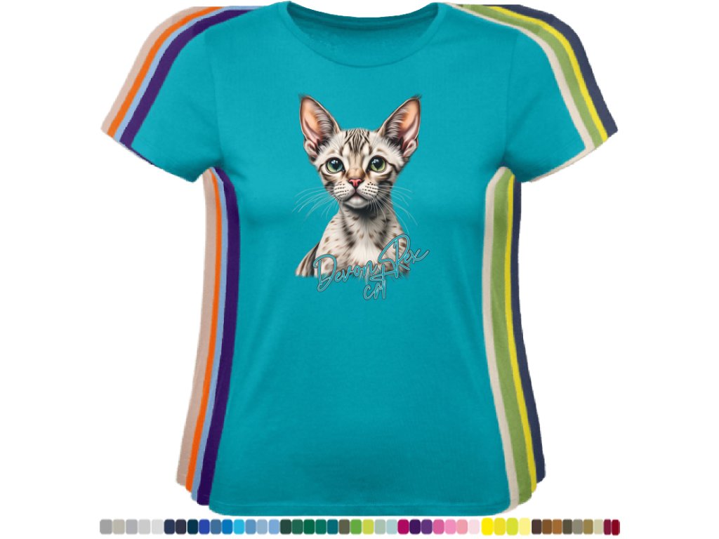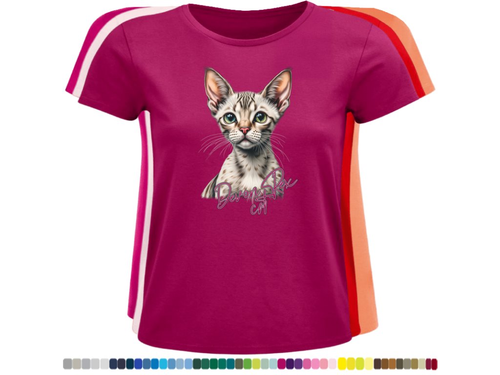 Dámské levné bavlněné tričko s digitálním potiskem Kočka Devon Rex