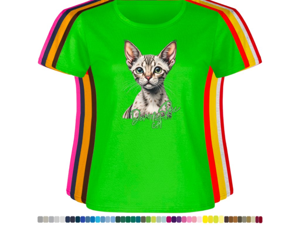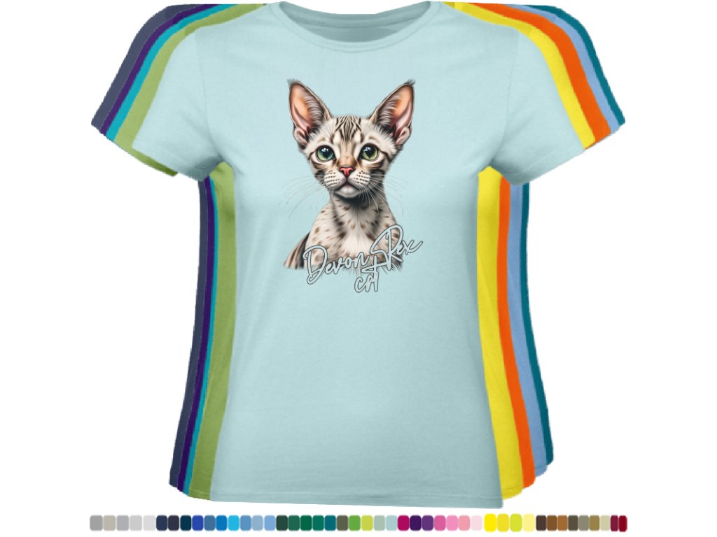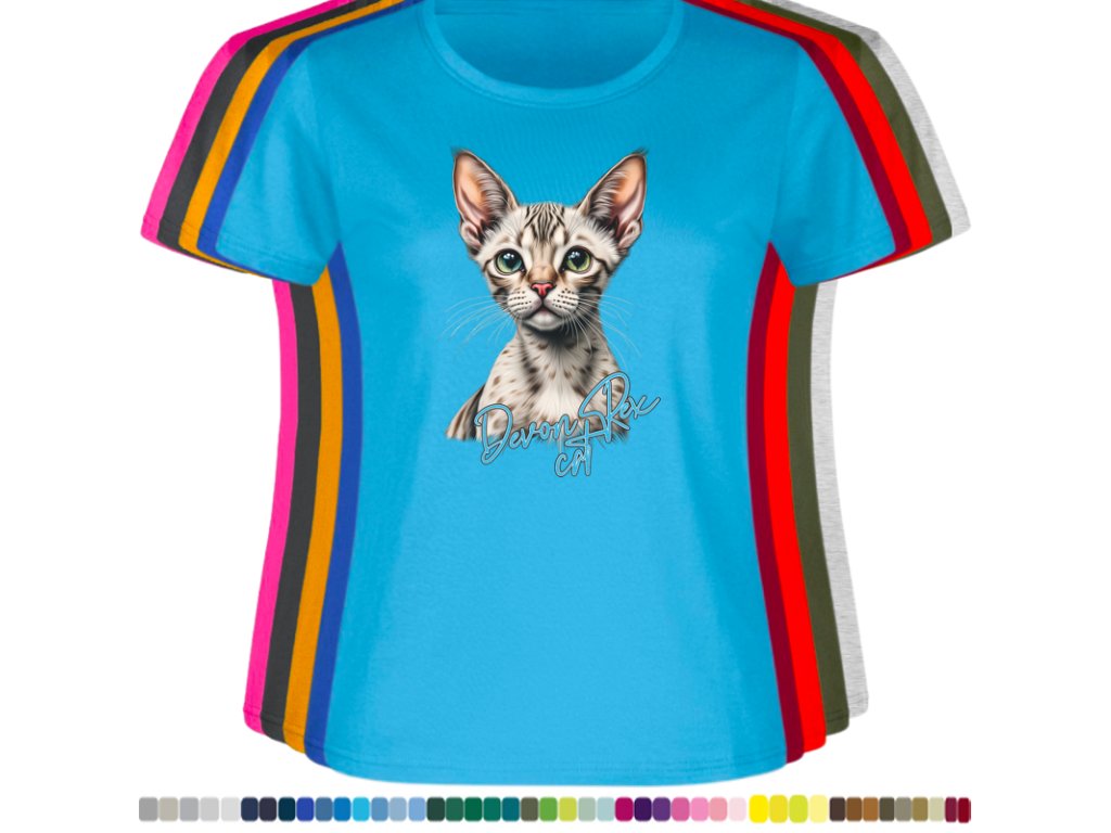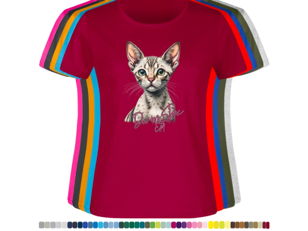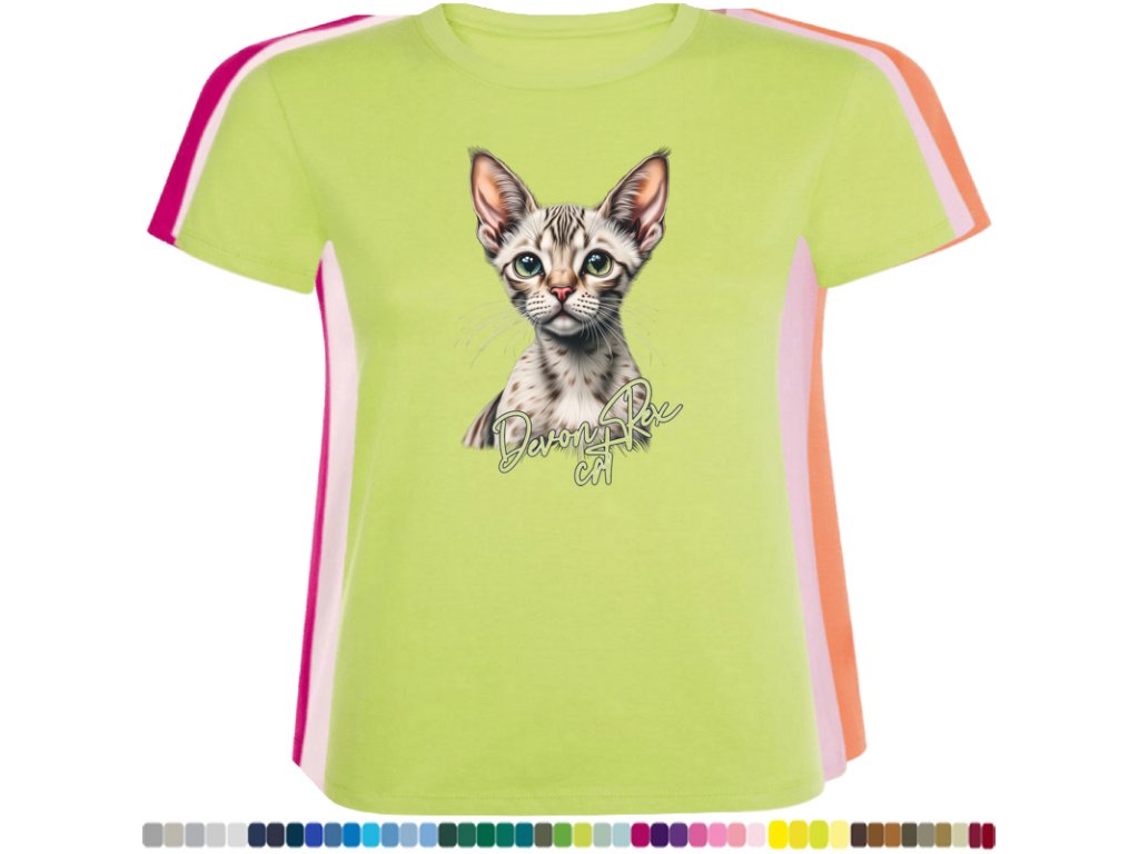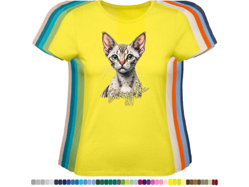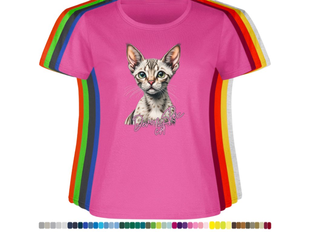 Dámské levné bavlněné tričko s digitálním potiskem Kočka Devon Rex