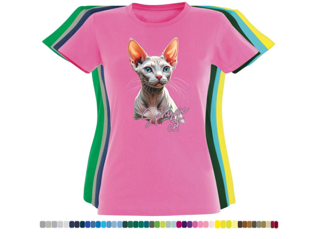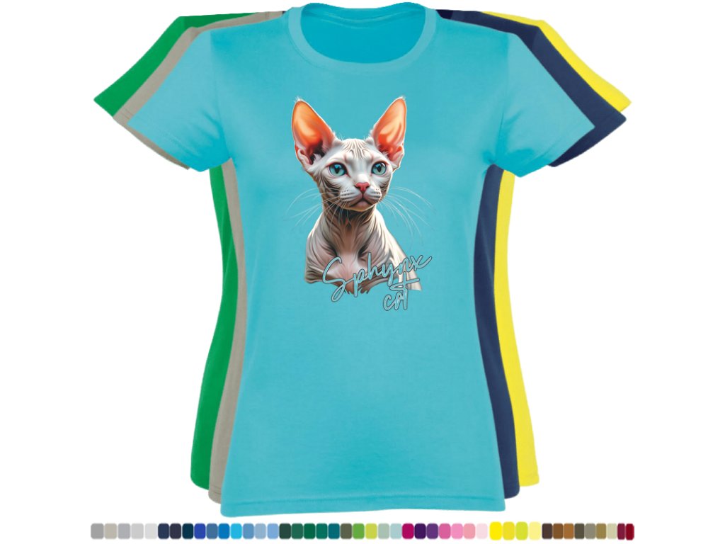 Dámské levné bavlněné tričko s digitálním potiskem Kočka naháč