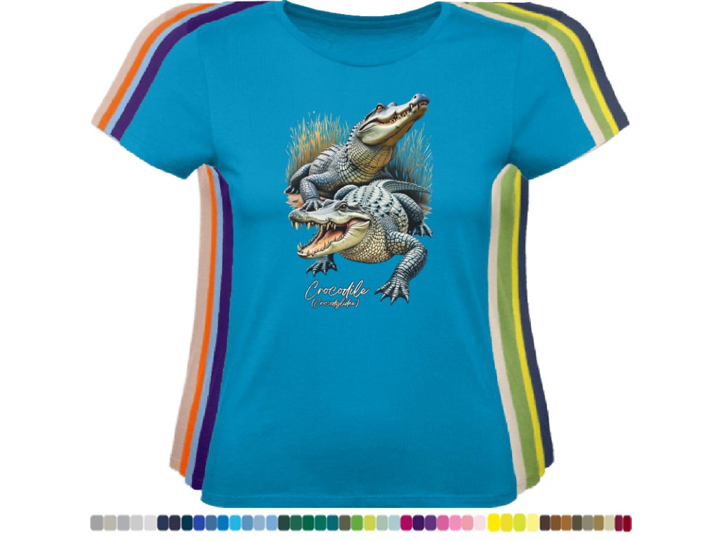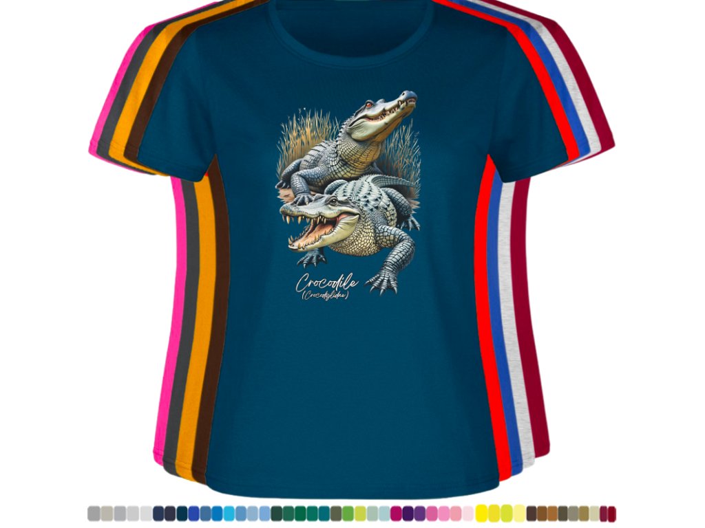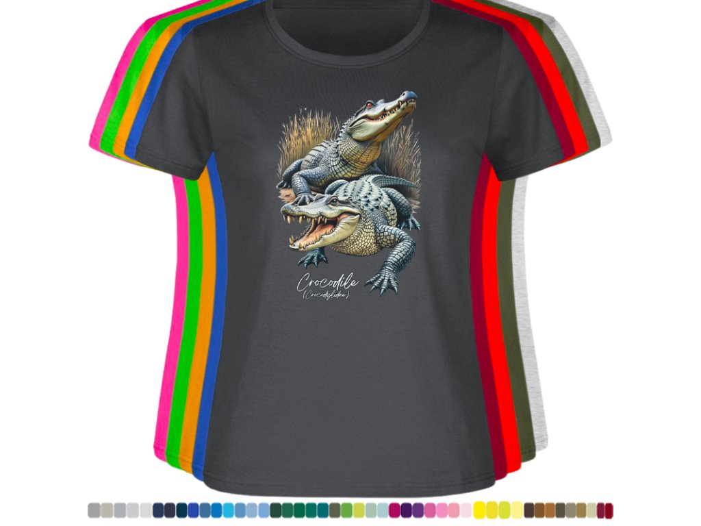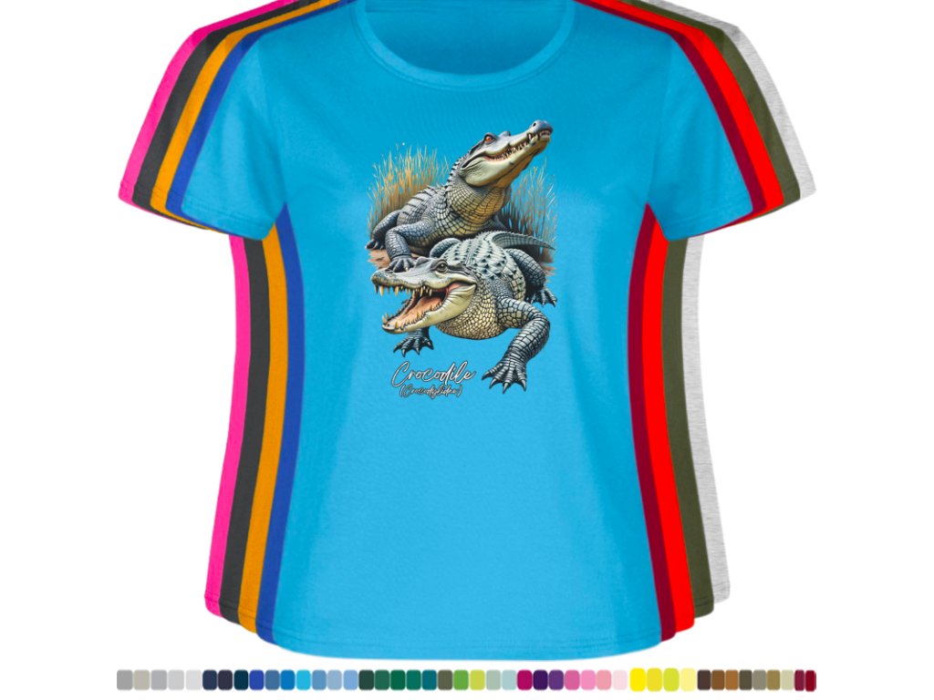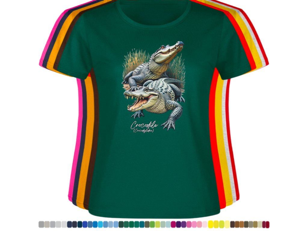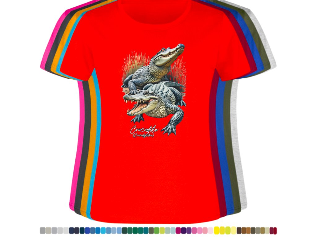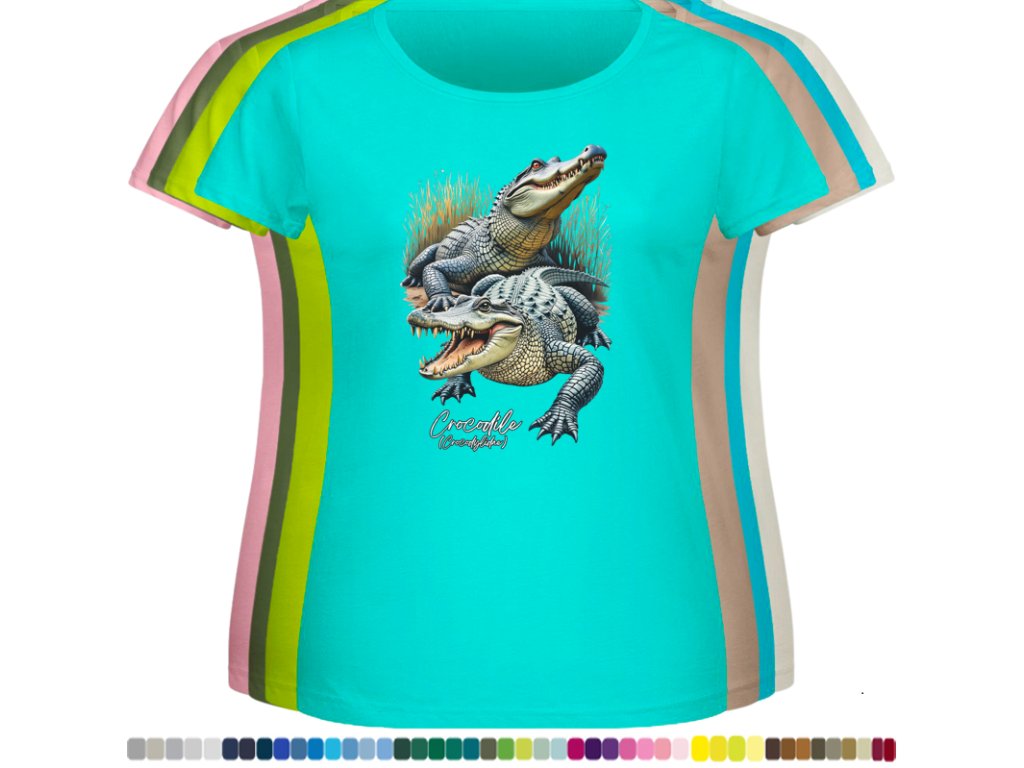 DÁMSKÉ LEVNÉ BAVLNĚNÉ TRIČKO S DIGITÁLNÍM POTISKEM KROKODÝLŮ