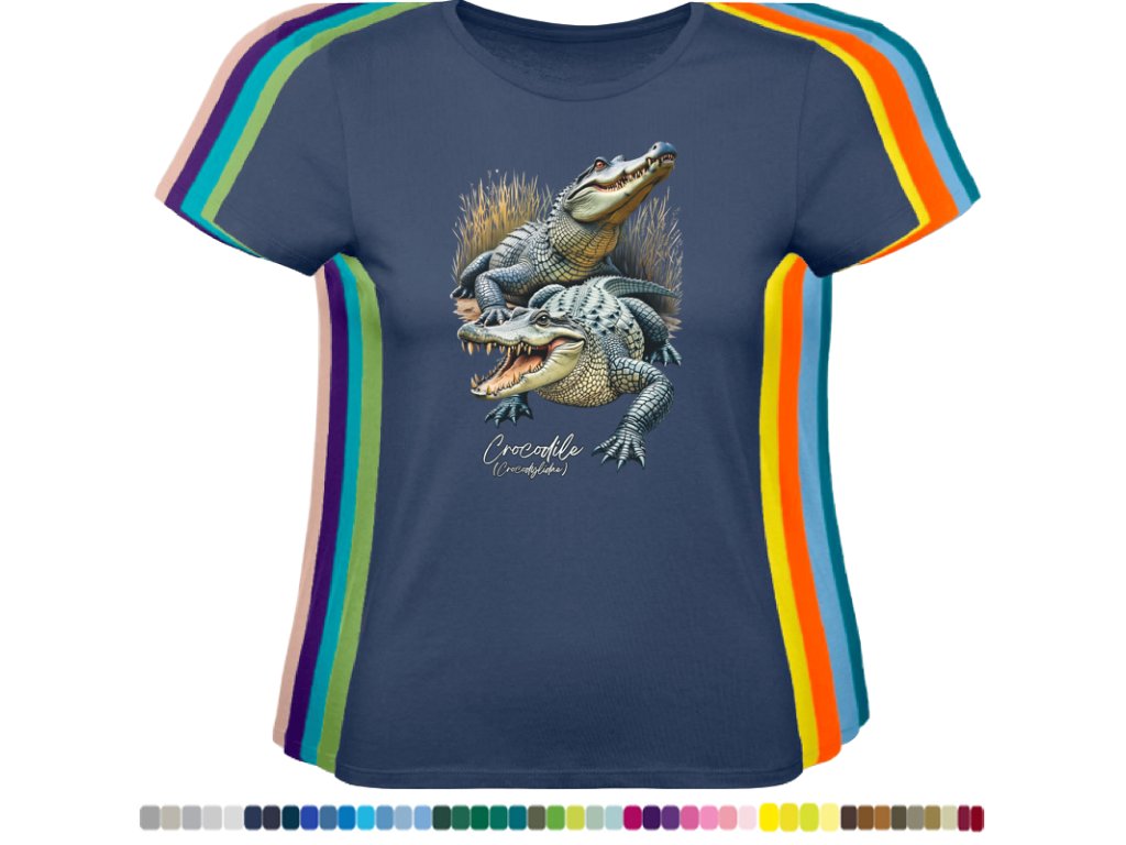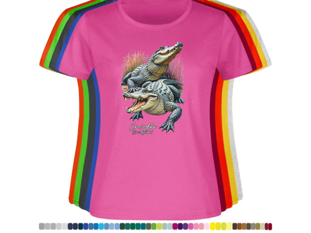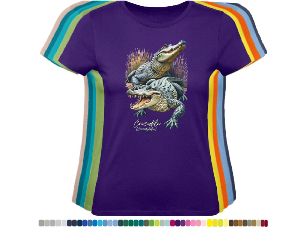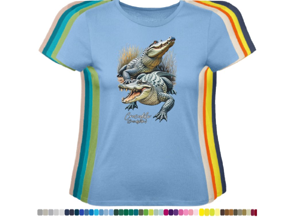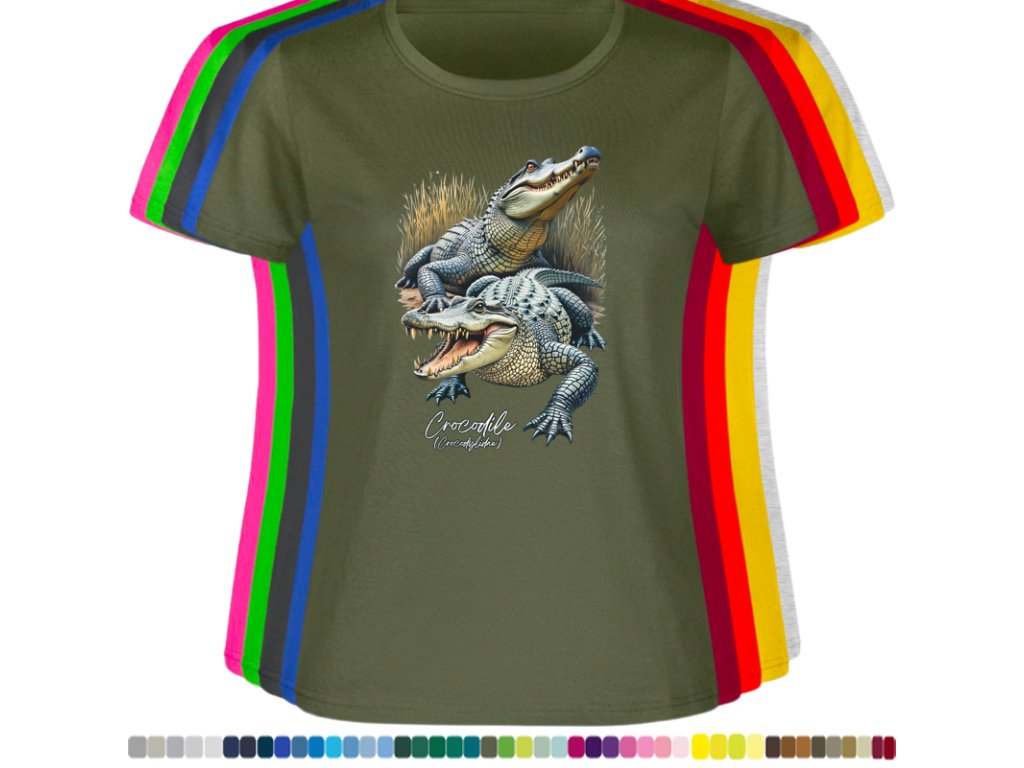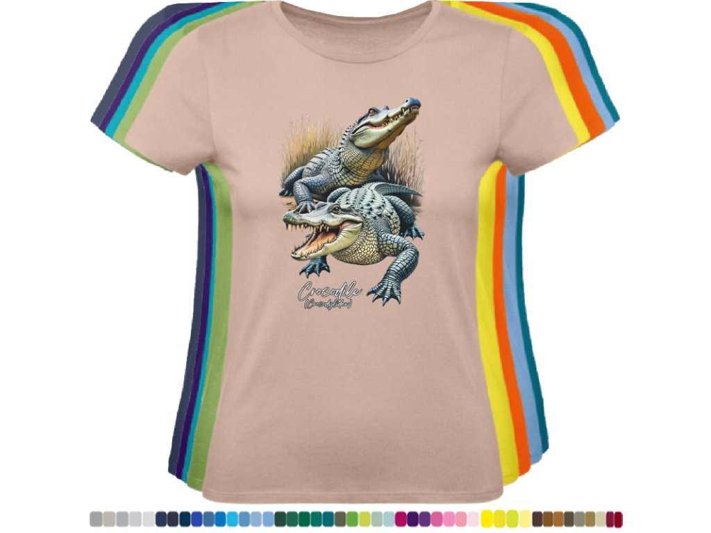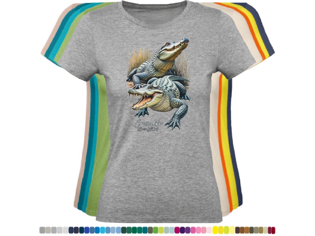 DÁMSKÉ LEVNÉ BAVLNĚNÉ TRIČKO S DIGITÁLNÍM POTISKEM KROKODÝLŮ