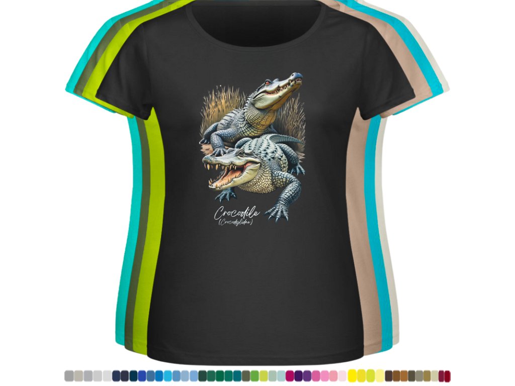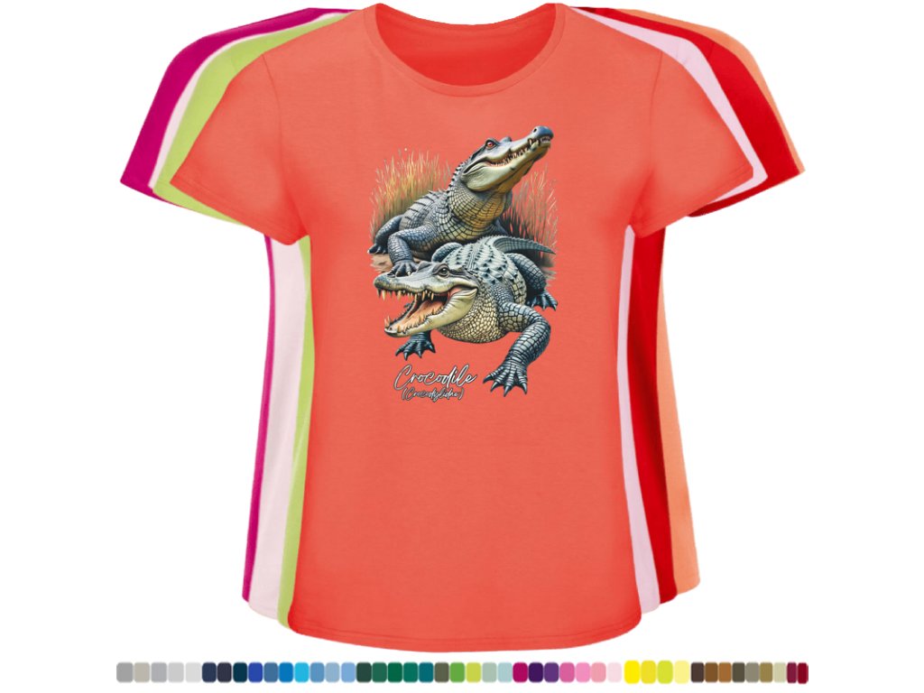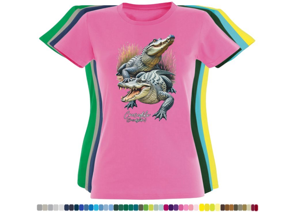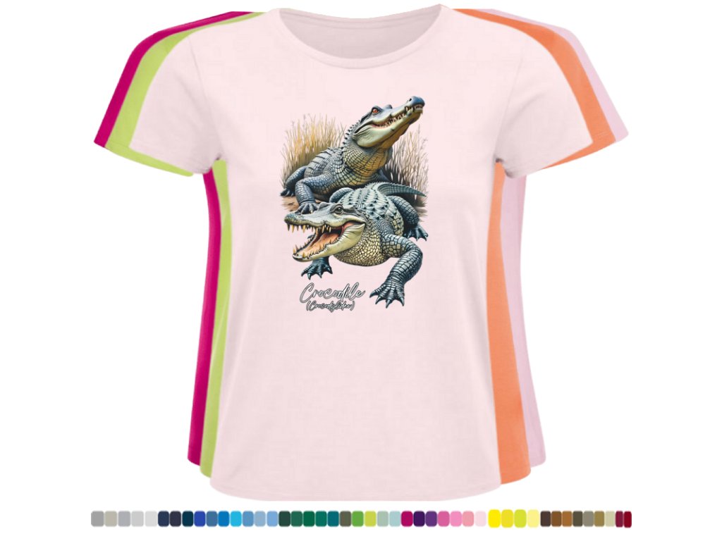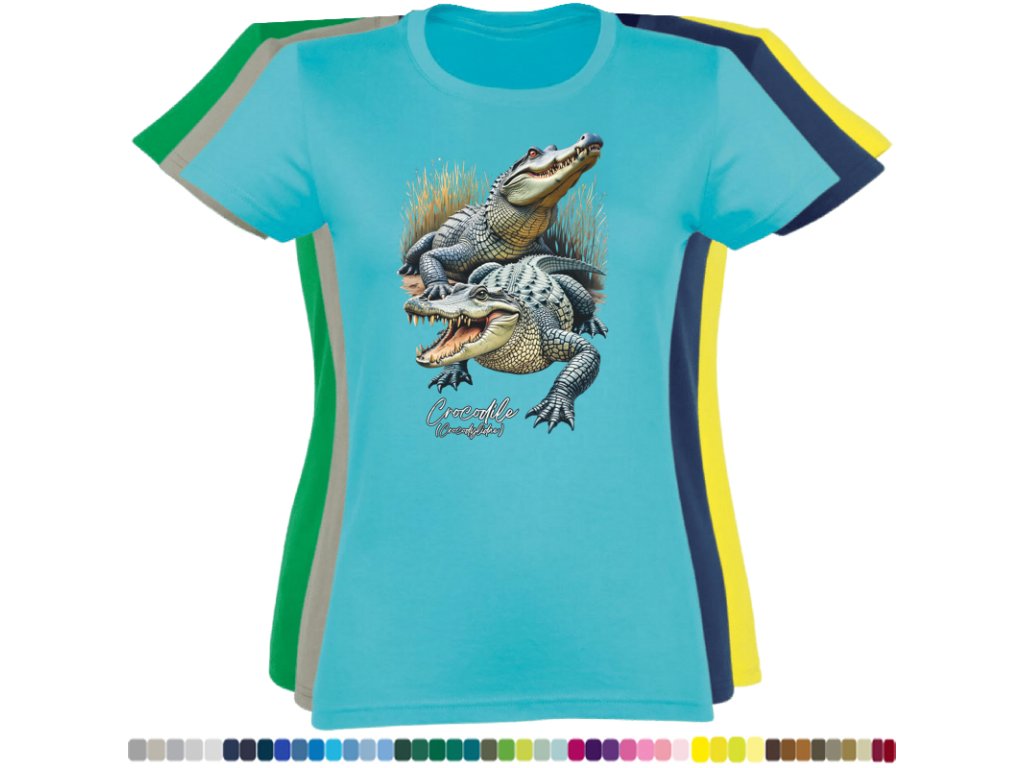 Dámské levné bavlněné tričko s digitálním potiskem Krokodýli