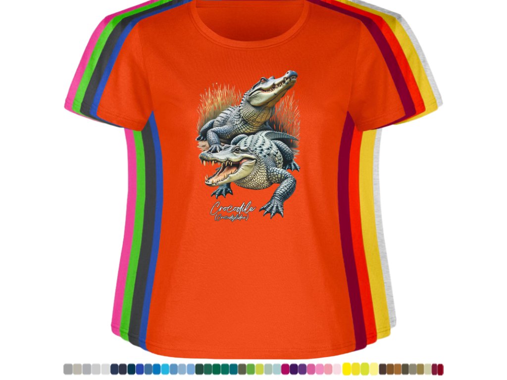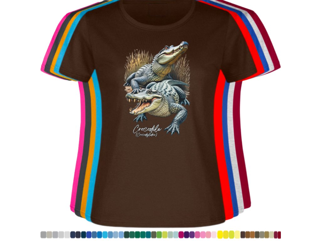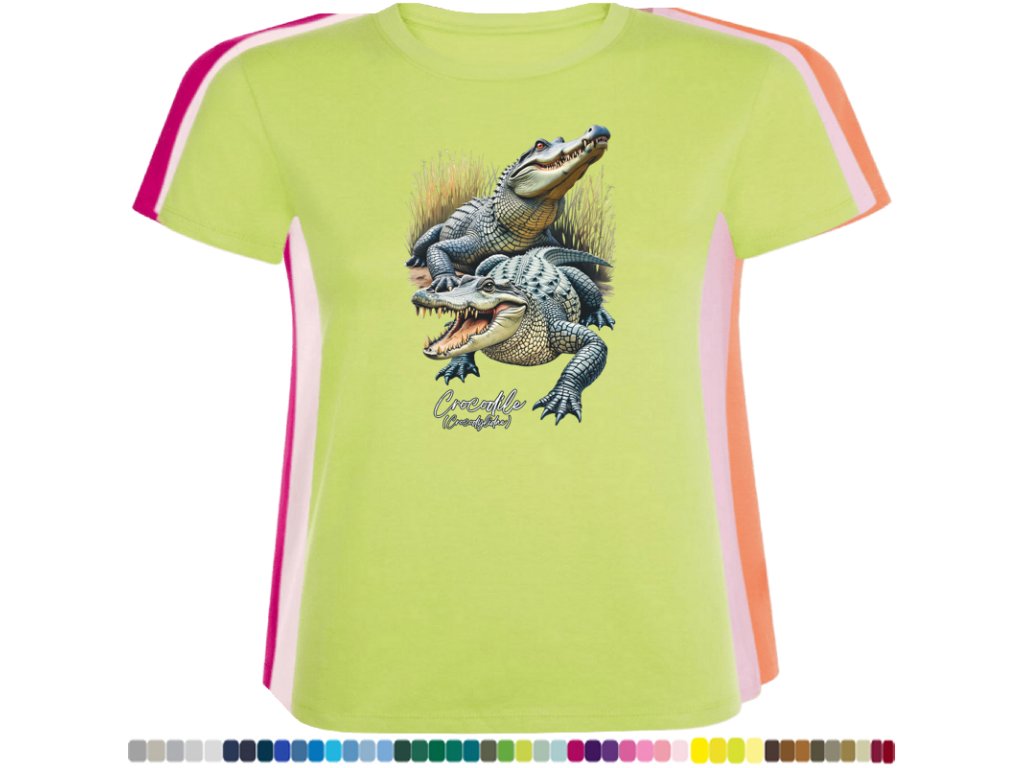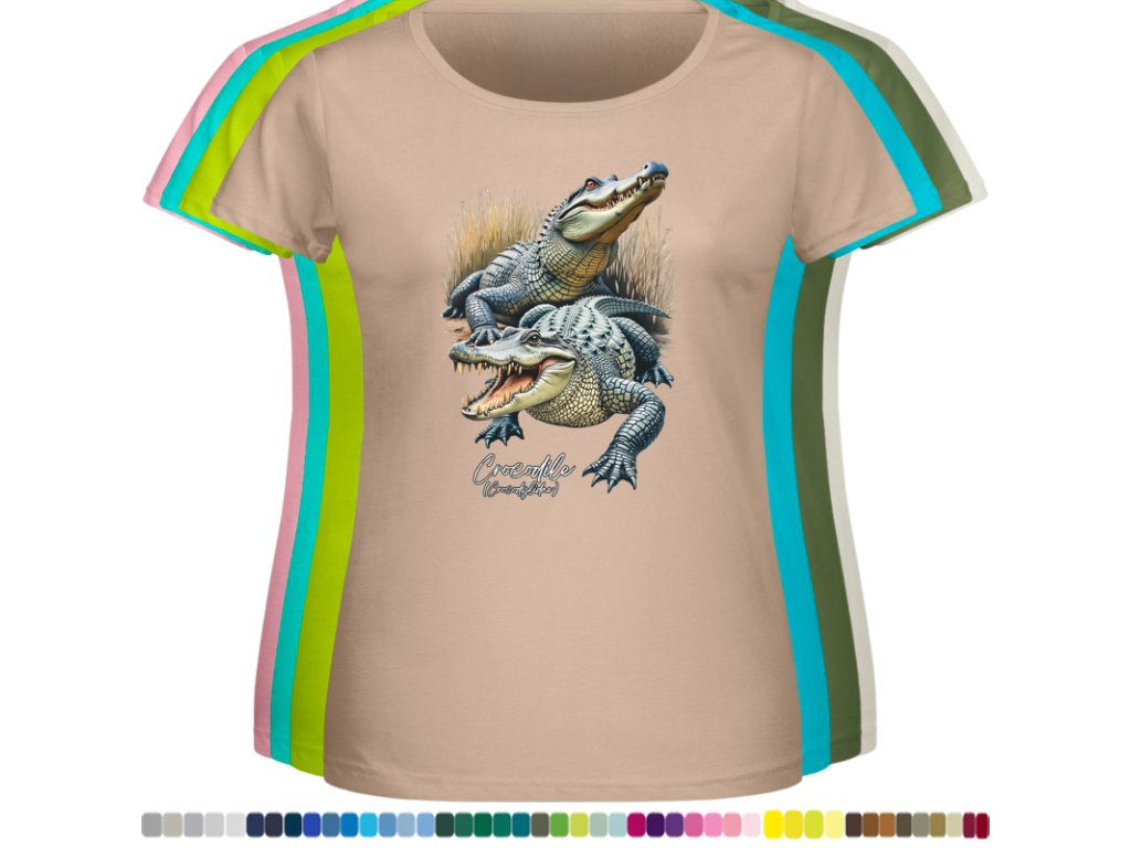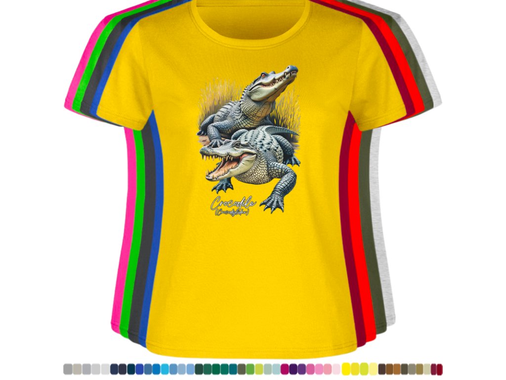 Dámské levné bavlněné tričko s digitálním potiskem Krokodýli