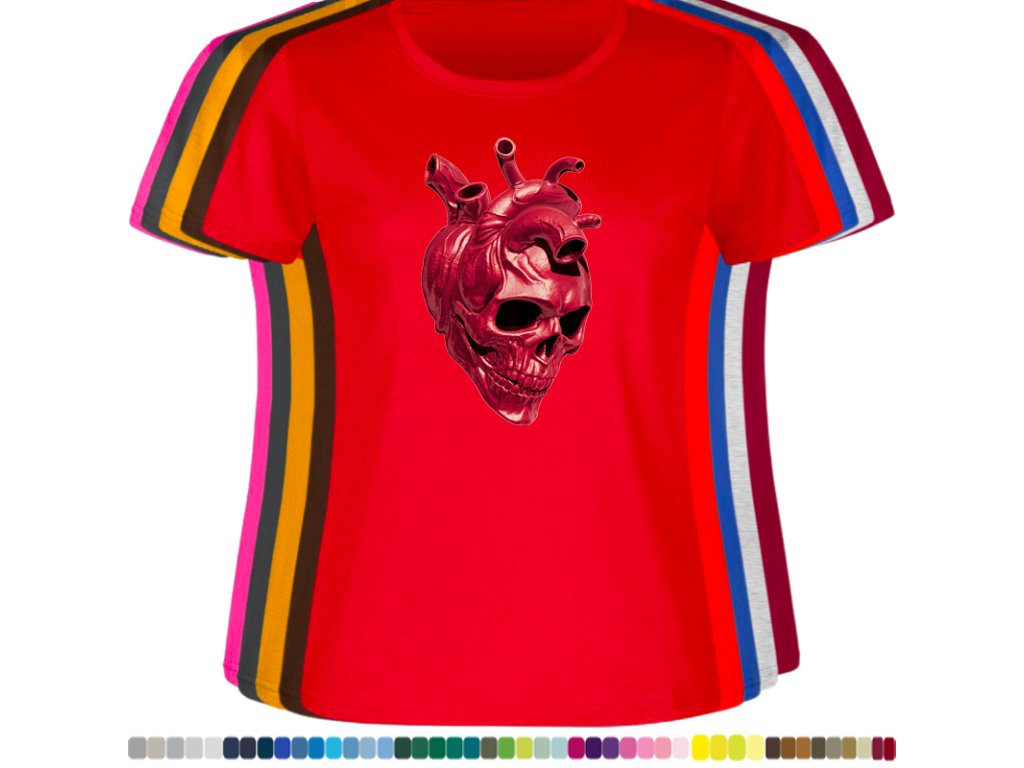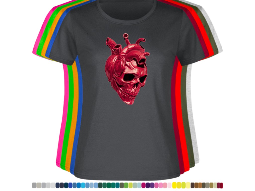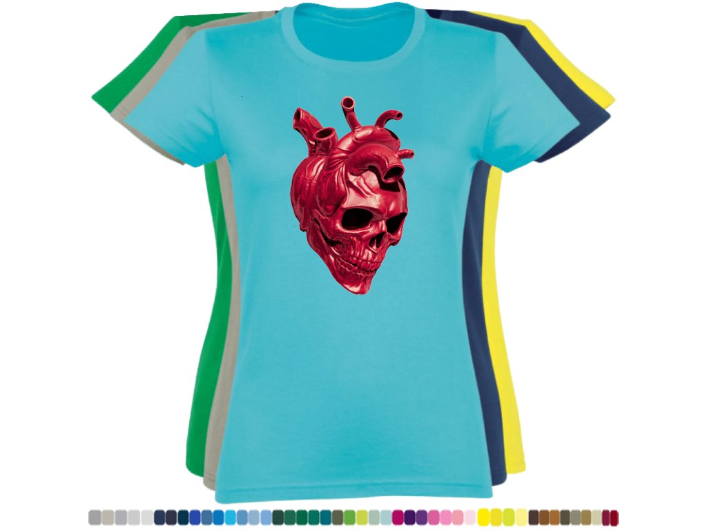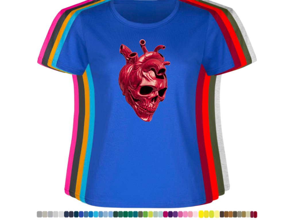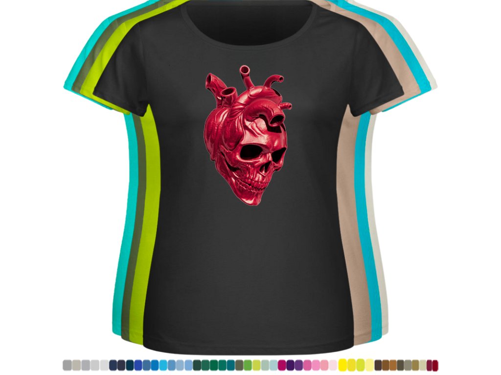 Dámské levné bavlněné tričko s digitálním potiskem Lebka v srdci