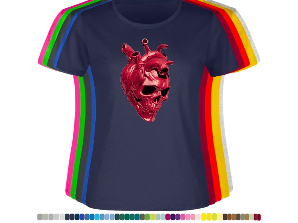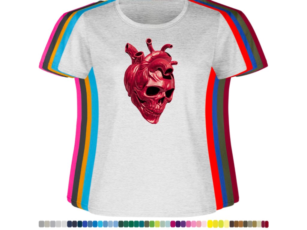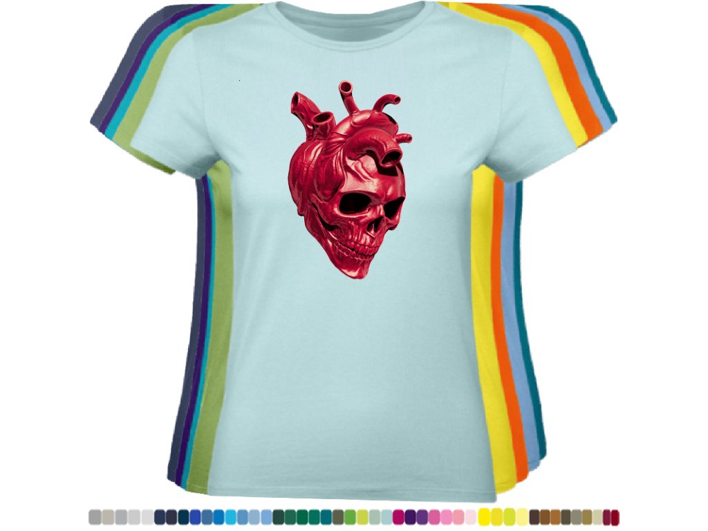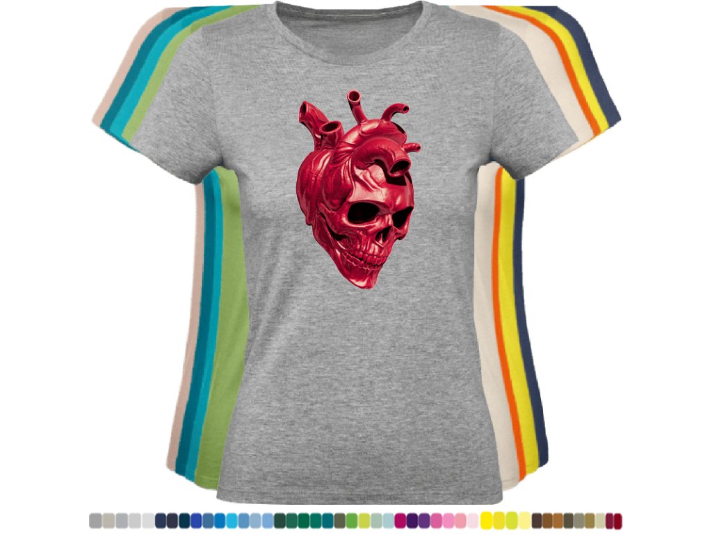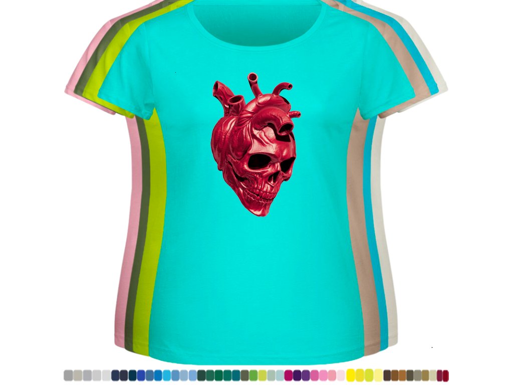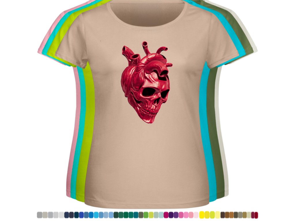 Dámské levné bavlněné tričko s digitálním potiskem Lebka v srdci