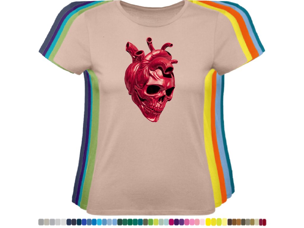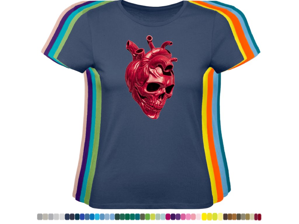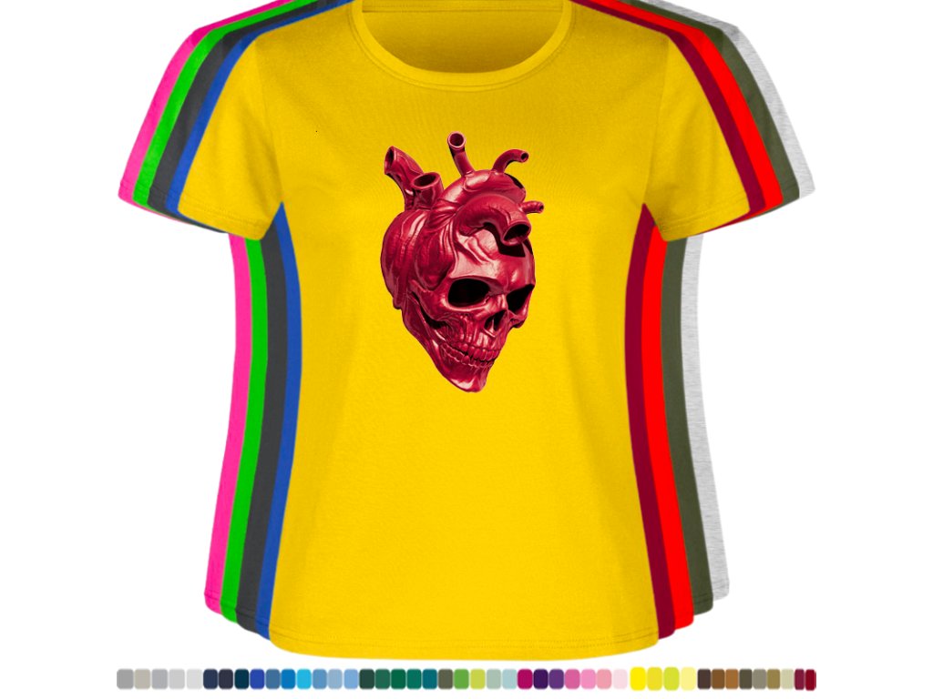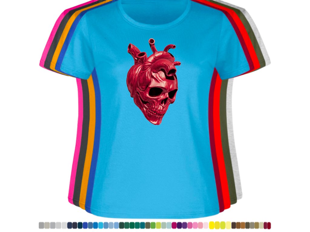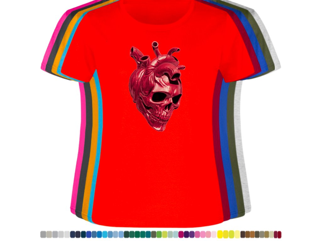 Dámské levné bavlněné tričko s digitálním potiskem Lebka v srdci