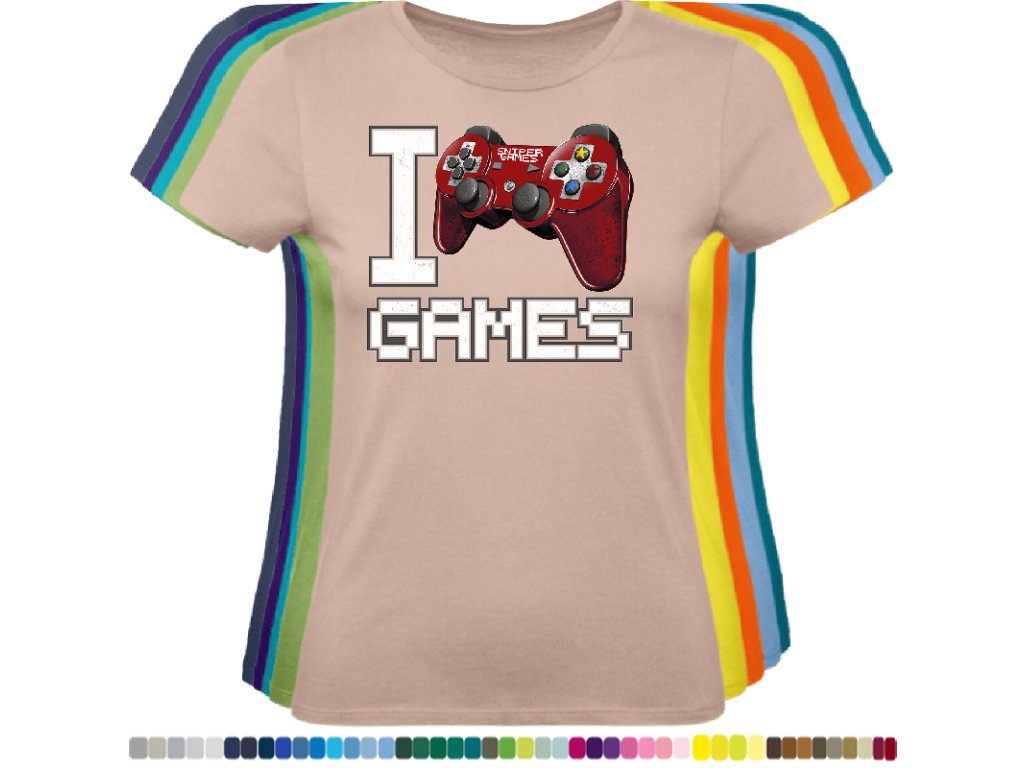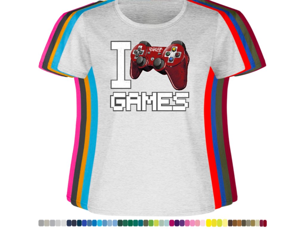 Dámské levné bavlněné tričko s digitálním potiskem Miluji hry