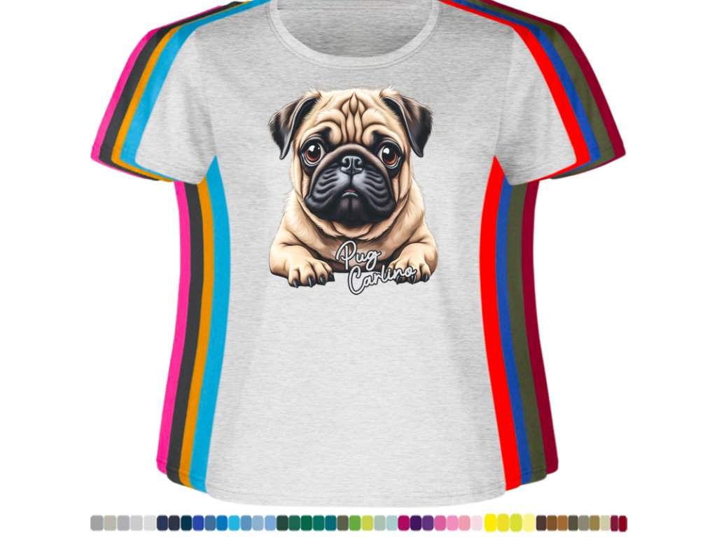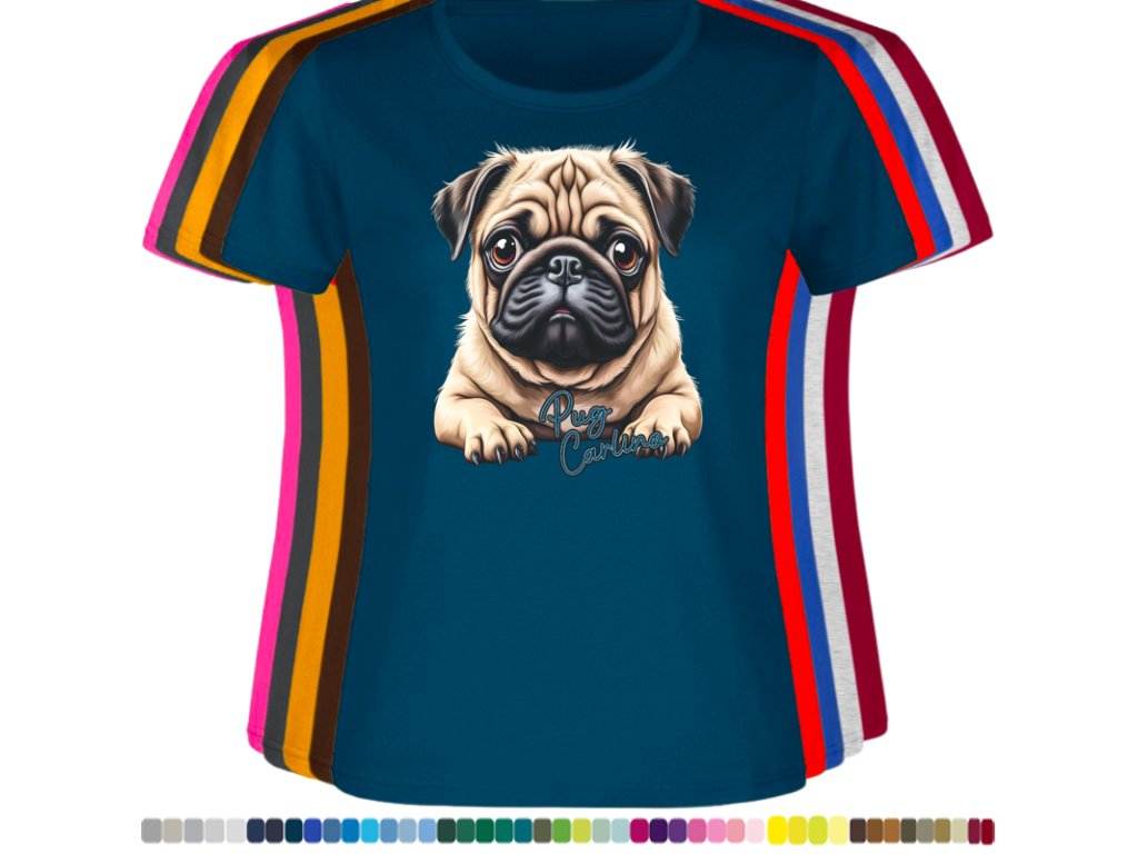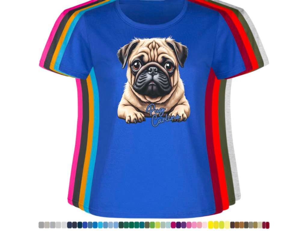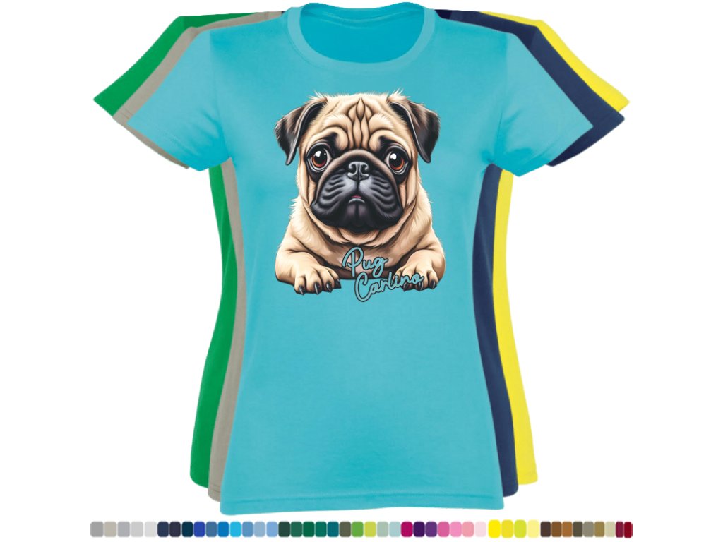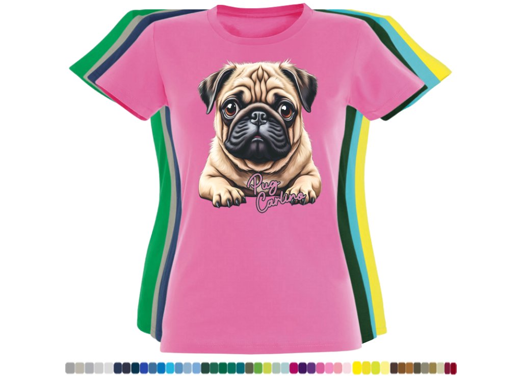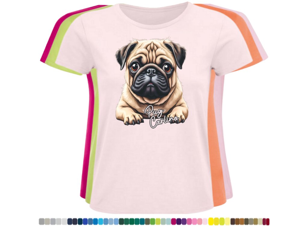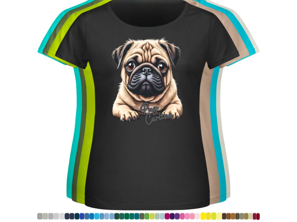 Dámské levné bavlněné tričko s digitálním potiskem Mops Carlino
