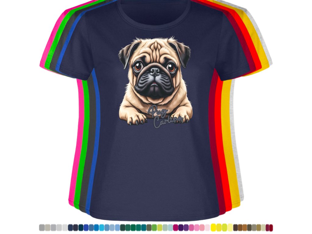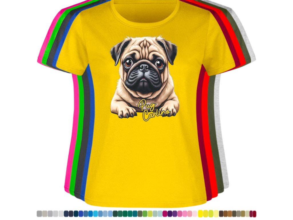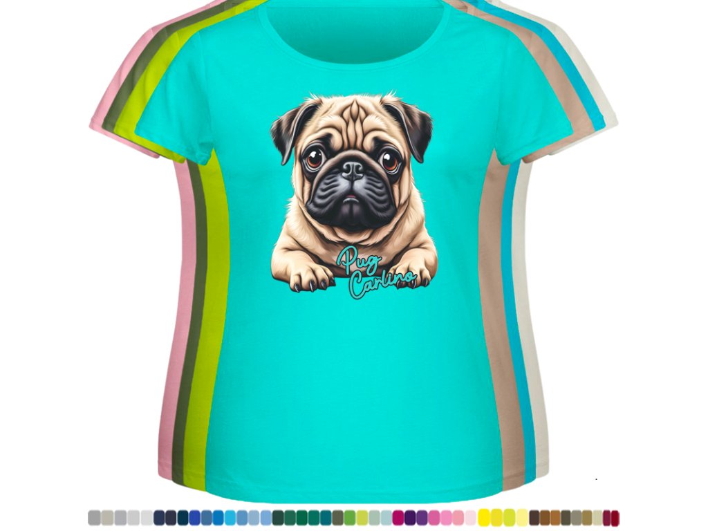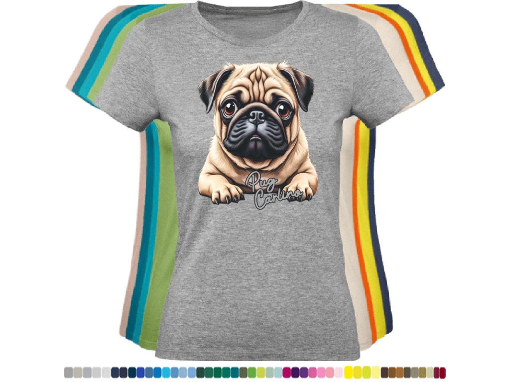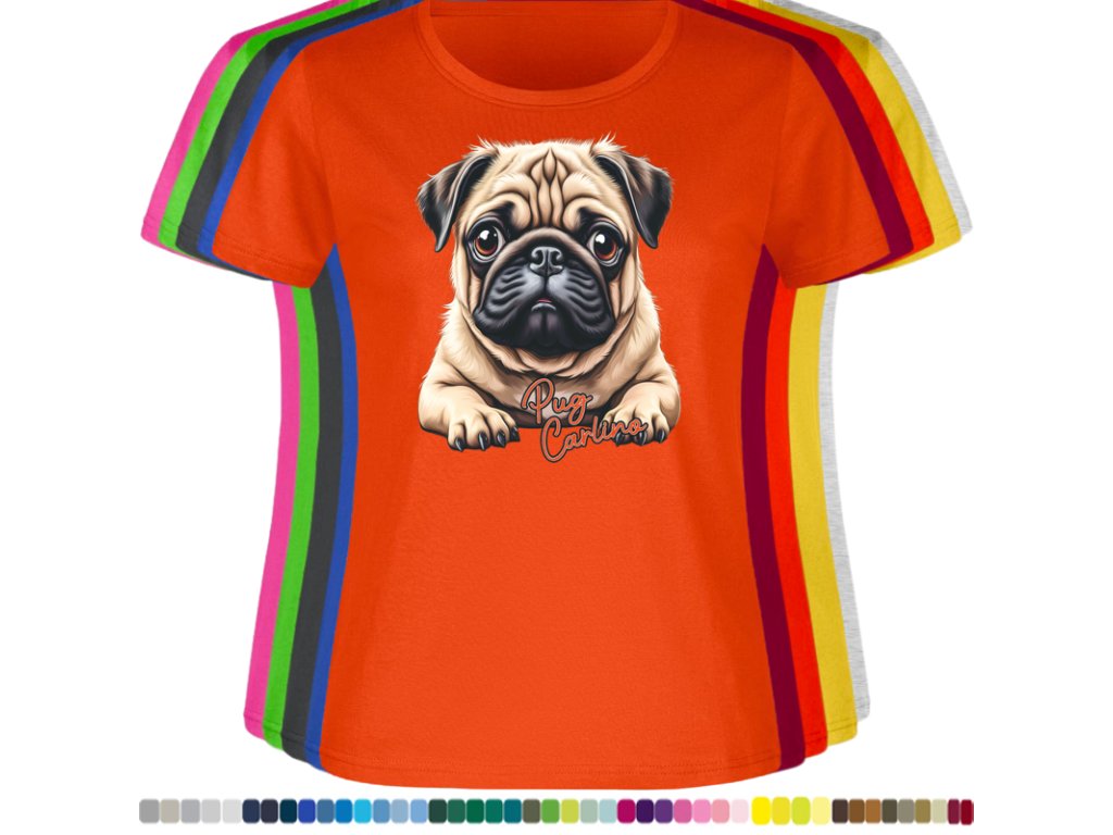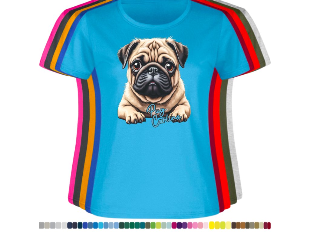Dámské levné bavlněné tričko s digitálním potiskem Mops Carlino