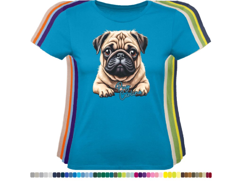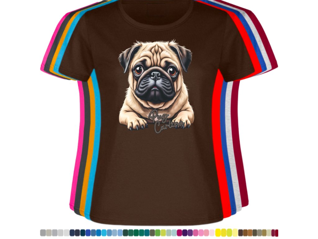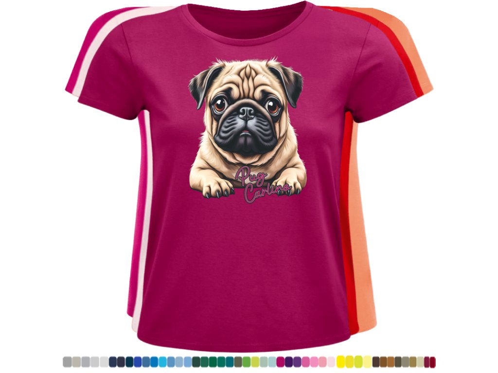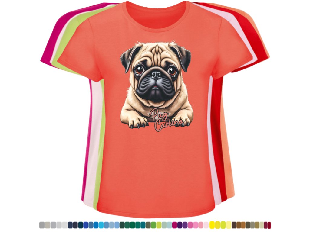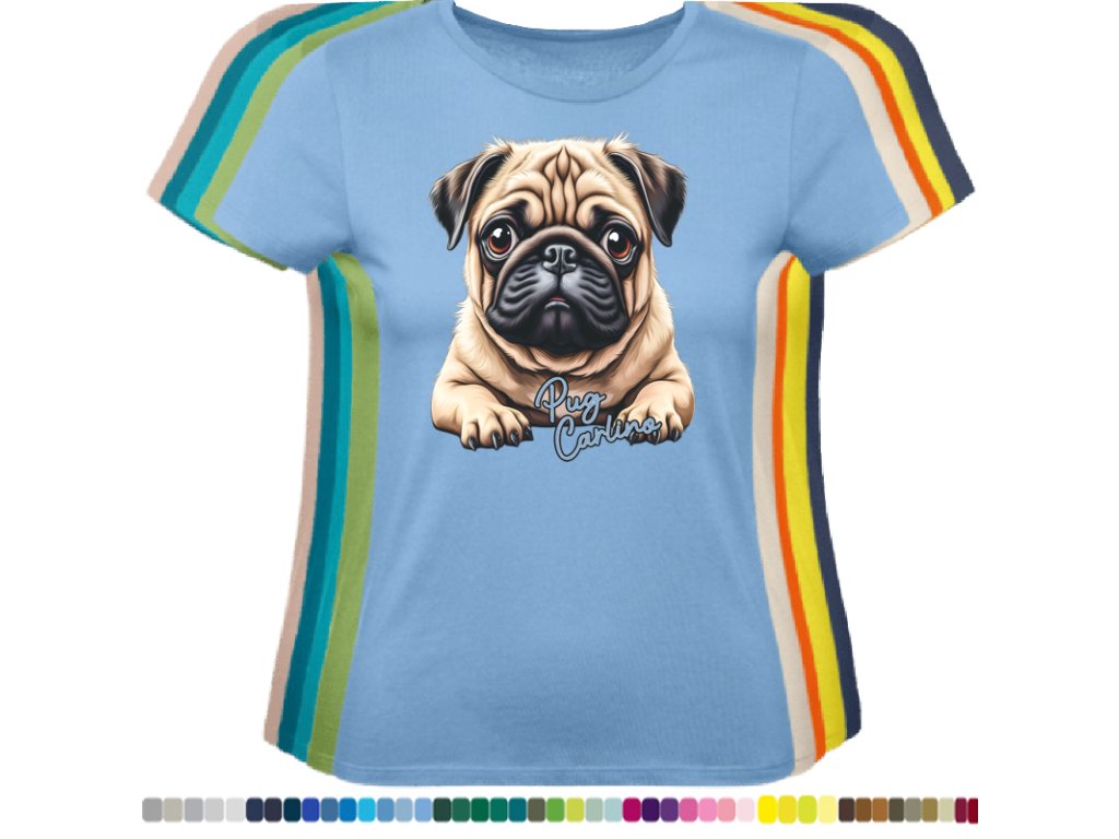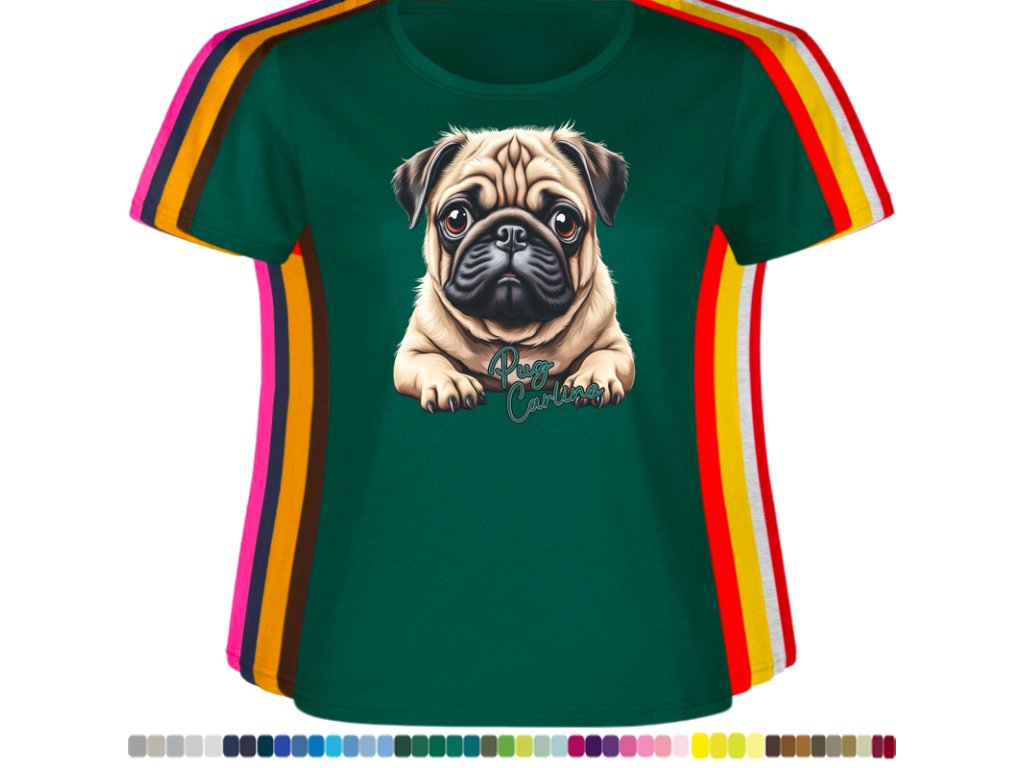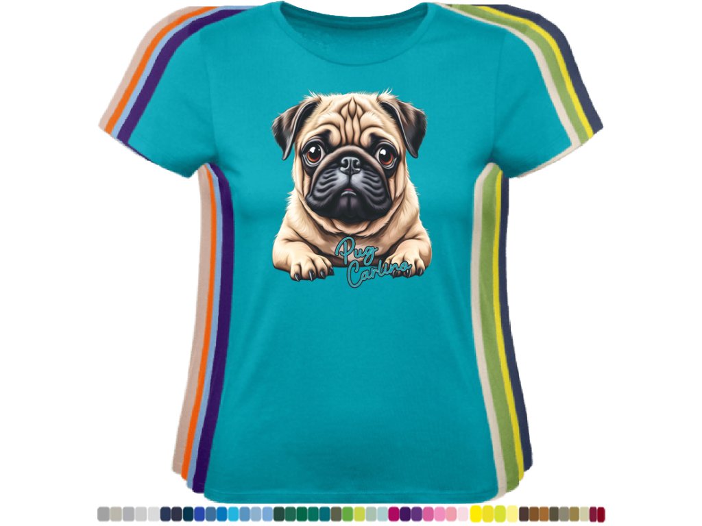 Dámské levné bavlněné tričko s digitálním potiskem Mops Carlino