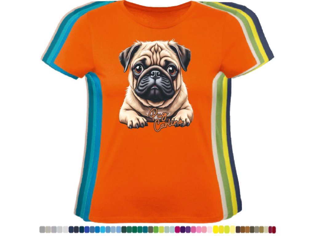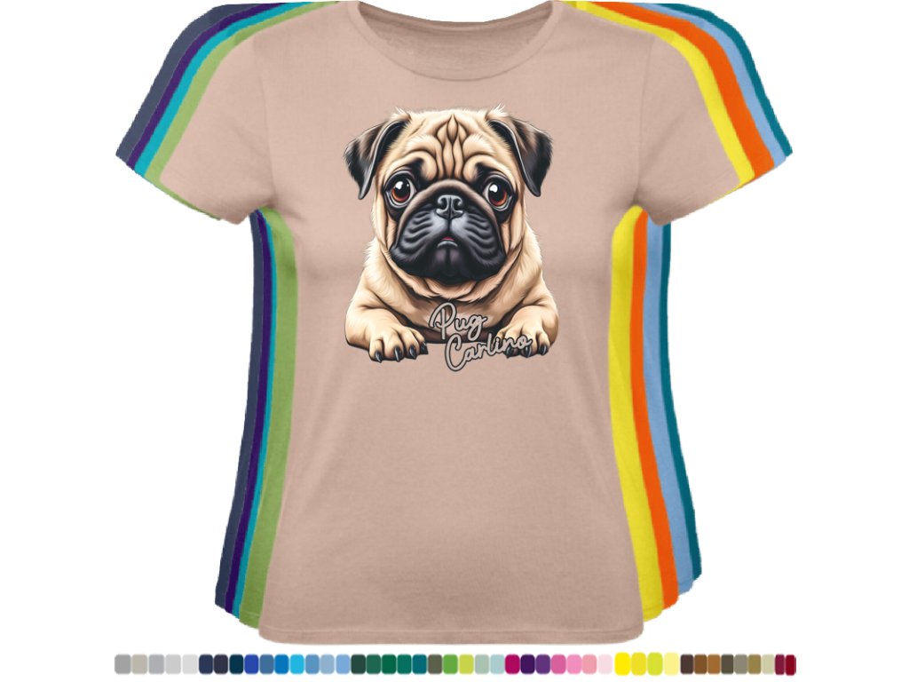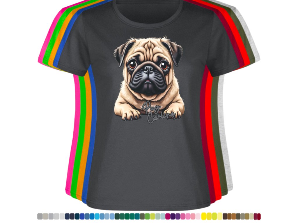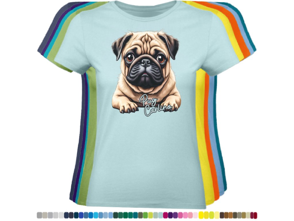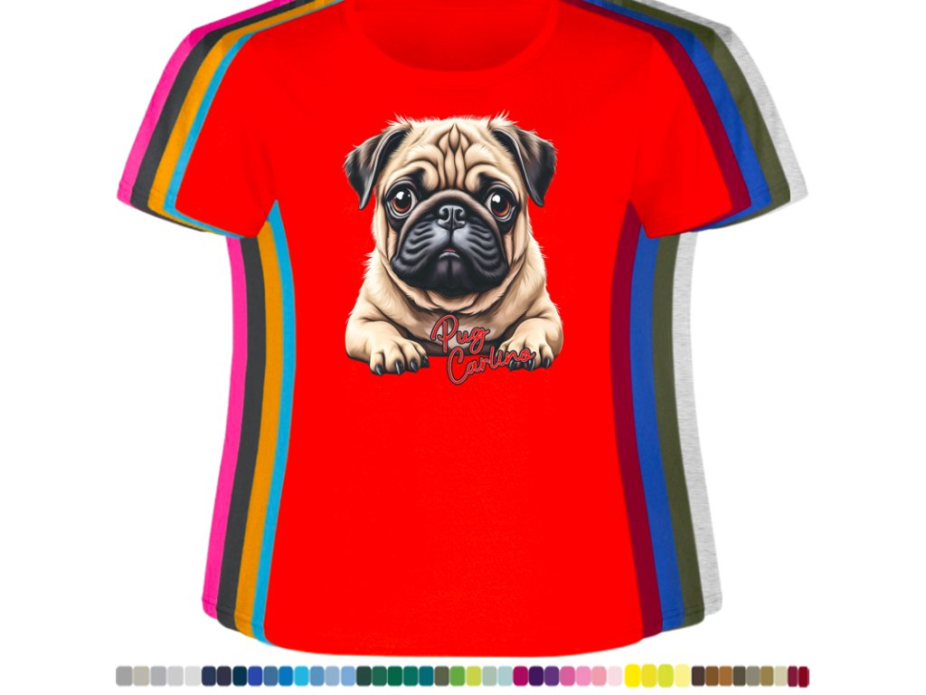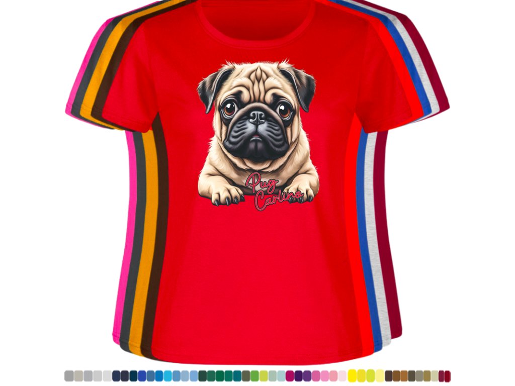 Dámské levné bavlněné tričko s digitálním potiskem Mops Carlino